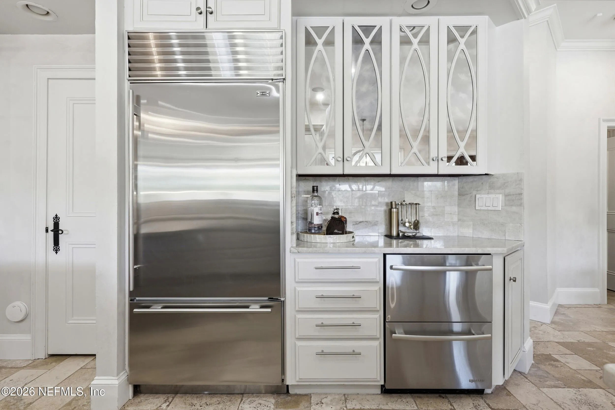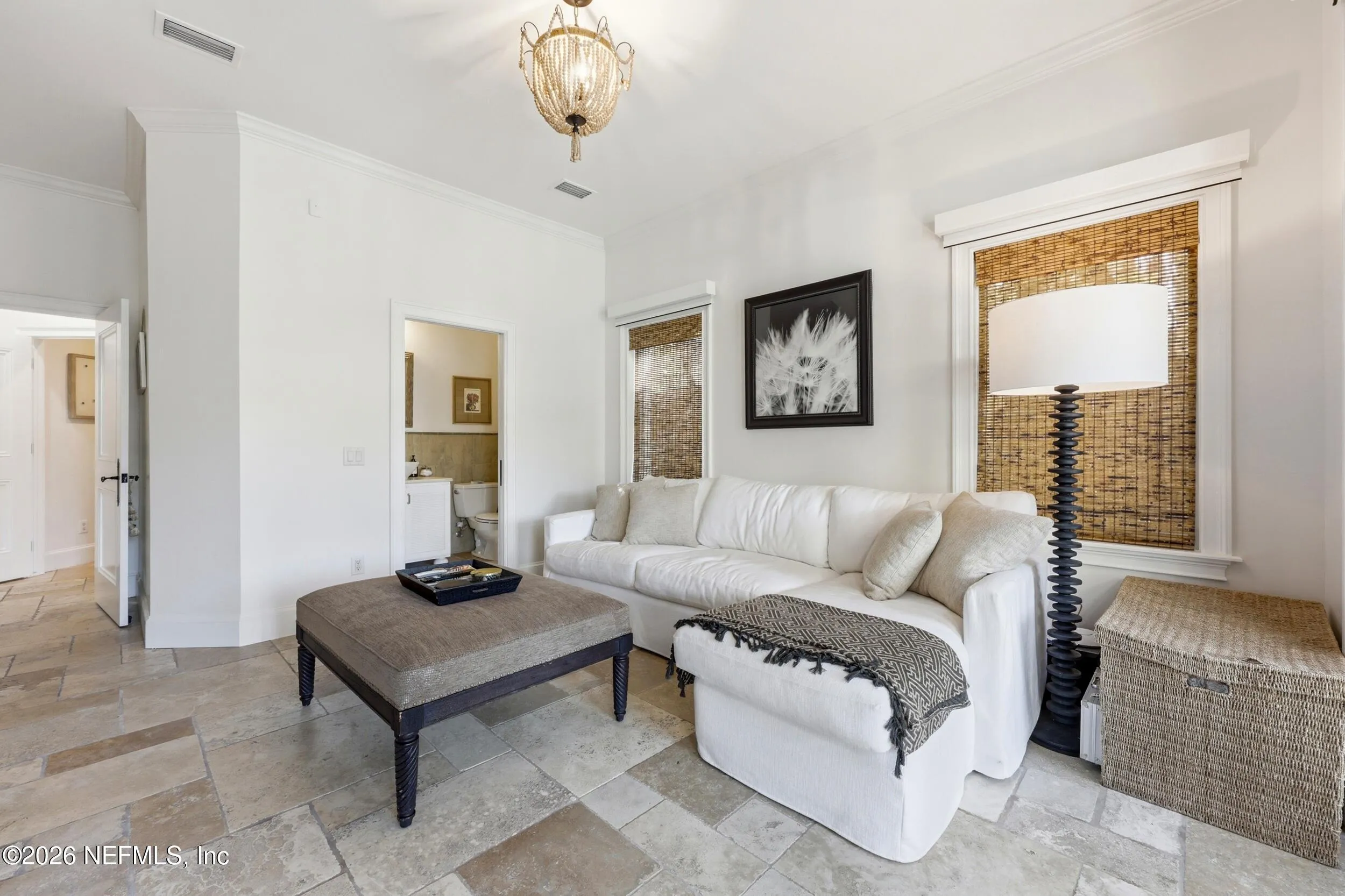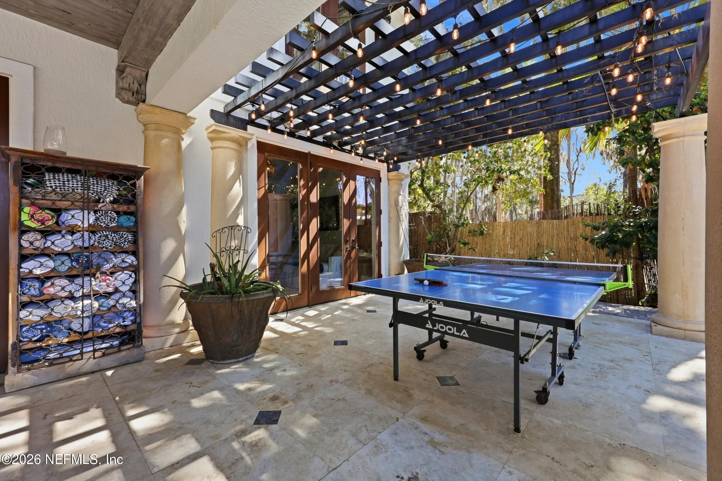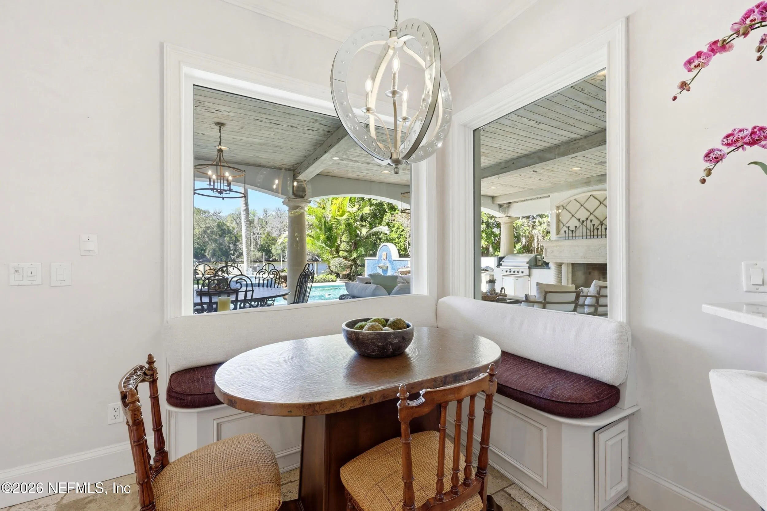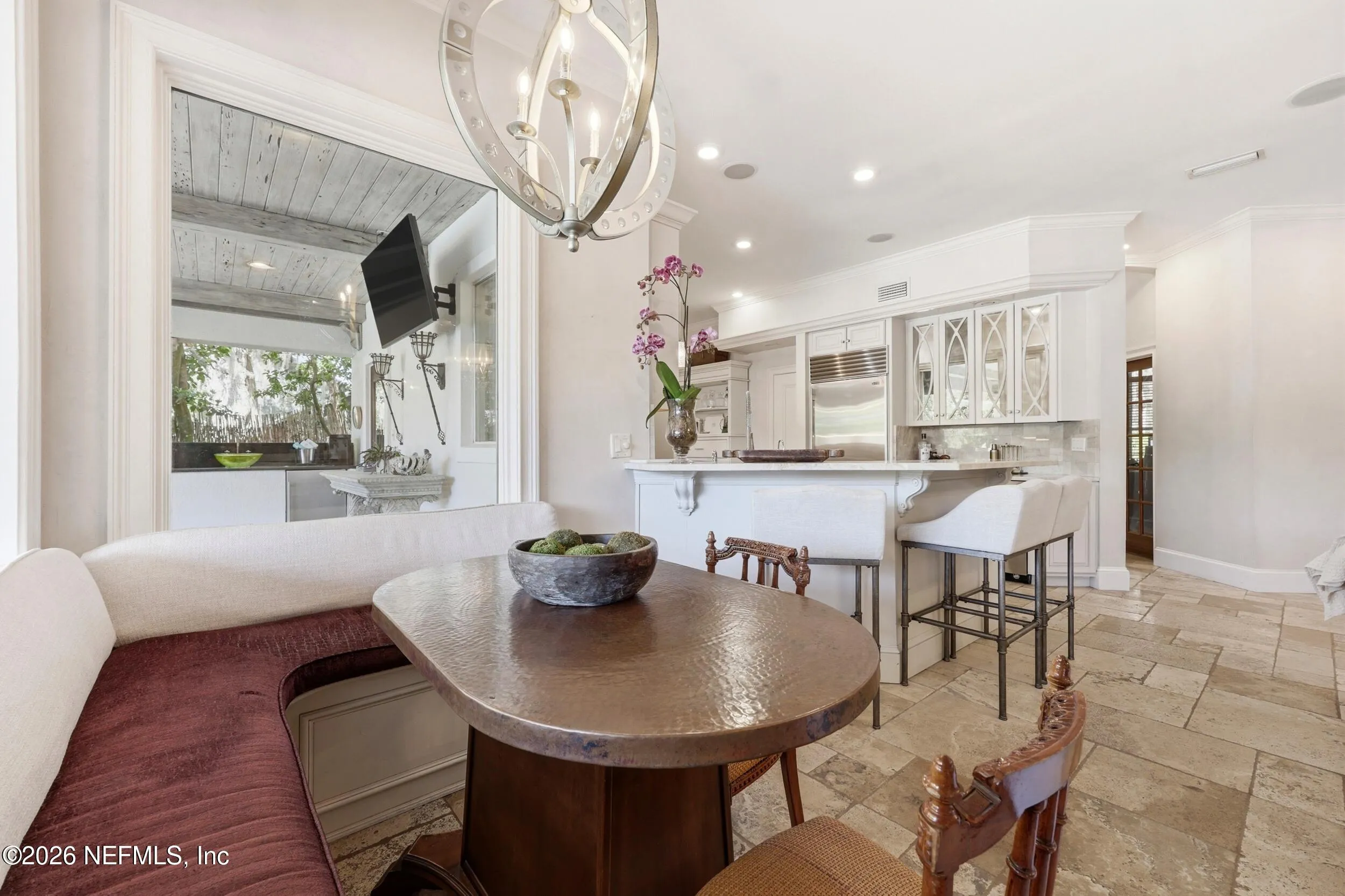 Welcome to your own private waterfront resort -- where the Intracoastal Waterway becomes your backyard and every day feels like a permanent vacation. This extraordinary five-bedroom, six-bathroom residence delivers resort-caliber living along the Intracoastal Waterway in one of Northeast Floridas most coveted coastal communities. Solid concrete construction on the first floor anchors this home with strength and permanence, delivering peace of mind alongside timeless elegance, with travertine and wood floors flowing throughout, while solid mahogany double front entry doors set a tone of elegance and grandeur from the very first step. The culinary kitchen is a chefs paradise, outfitted with a Viking gas range, SubZero refrigerator, Fischer Paykel dishwasher, Jenn Air refrigerator and freezer drawers, quartzite counters, and decorative cabinetry. A wine cellar flanked with imported brick from 17th century Polish church ruins stands ready for your finest vintages. The primary suite features a fireplace, custom walk-in closets, and a private balcony overlooking the waterway. Soak in the tub while savoring panoramic Intracoastal views through an expansive window -- because you deserve that kind of morning. Step outside to nearly a thousand square feet of covered lanai, a summer kitchen with fireplace and grill, and a massive swimming pool with hot tub. Extensive landscape lighting transforms evenings into something magical. For boating enthusiasts, this property is a dream -- situated equal distance between inlets at Mayport and St. Augustine. The private dock features three lifts accommodating vessels up to thirty-five feet, two jet skis, a 21 boat and a convenient wash station. A whole house generator and electric vehicle charger add modern functionality, while a long, gated driveway ensures privacy abounds. This is Northeast Florida waterfront living at its absolute finest.