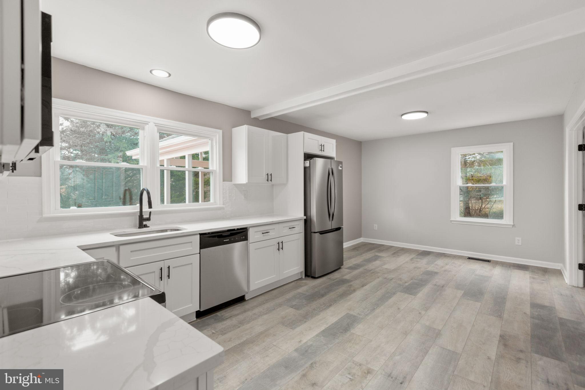 COMING SOON! Welcome to 6 Morningstar Ct. that does shine bright! This traditional center hall has been mindfully updated & DECADENT Master Bath 2020 (complete with Grohe fixtures); Hall Bath 2021; Kitchen 2019 and Roof 2020 (w/transferable leased solar). This center hall colonial is situated on a premium lot backing up to the woods and a very quiet street. Entering the foyer flanked by dining room on the left and living room to the right. The hall opens to the stunning kitchen featuring 42-inch bright, white cabinetry and blue, center island, stainless appliances (dishwasher 1 month old), pantry, custom backsplash, center island and eating area. The 20 ft x 20 ft trek deck through the sliding doors off the kitchen. Sundrenched family room with 4 windows, natural gas fireplace and ceiling fan. Access to 2-car garage off kitchen and bath off center hall. 2nd FLOOR LAUNDRY plus 4 bedrooms. Master suite with vaulted ceiling, massive walk in closet and stunning master bath with freestanding soaking tub, 4-inch tiled floor, comfort-height dual vanity, granite counters and oversized showers with seamless sliding door, lighting, rainfall showerhead plus ancillary showerheads on tiled wall. Lower-level walkout basement with finished den and natural gas fireplace plus home office. Natural Gas, Public Water and Sewer. Easy commute to Philadelphia, Cherry Hill, and Wilmington. Minutes from Gloucester Outlets.