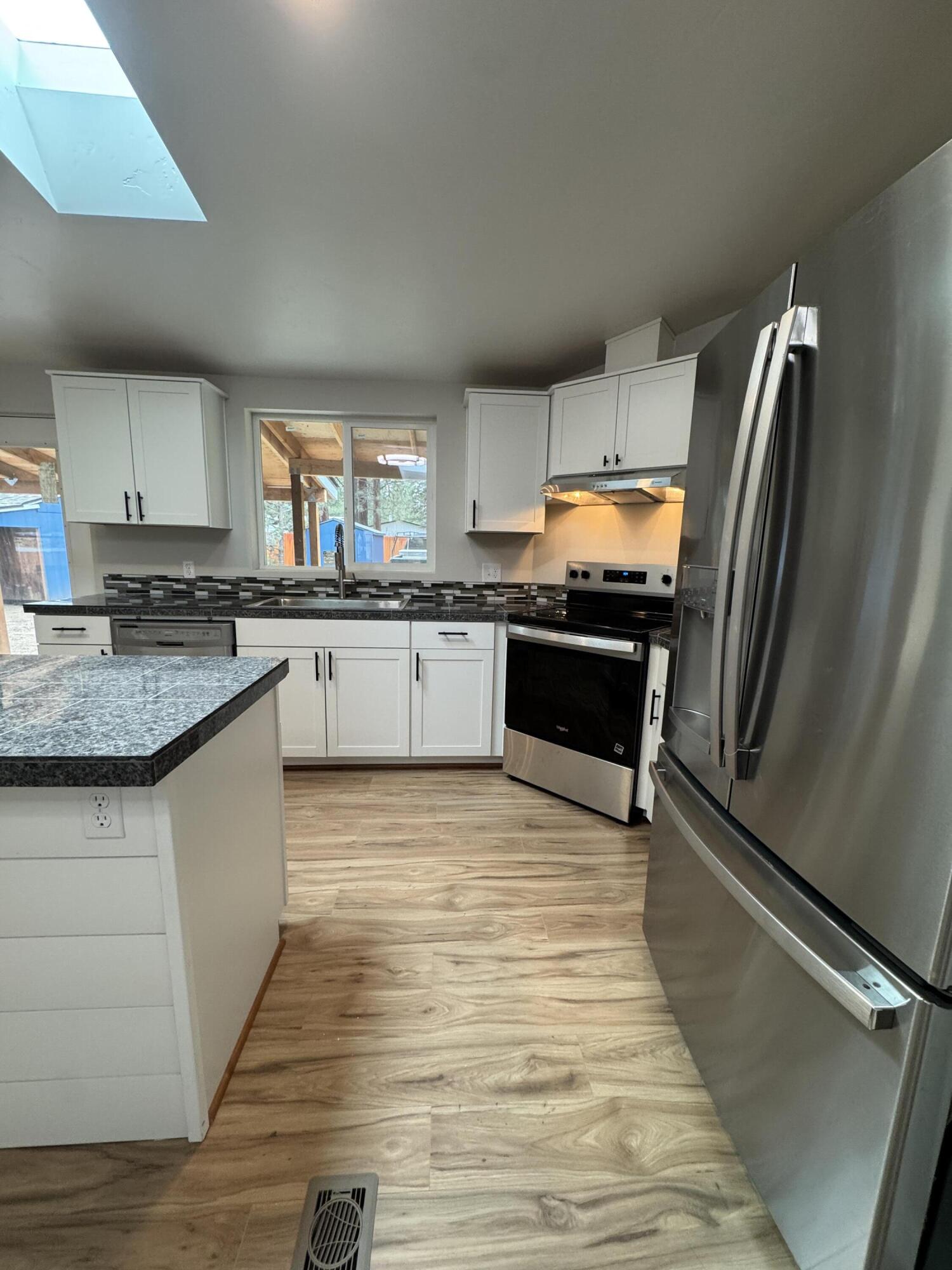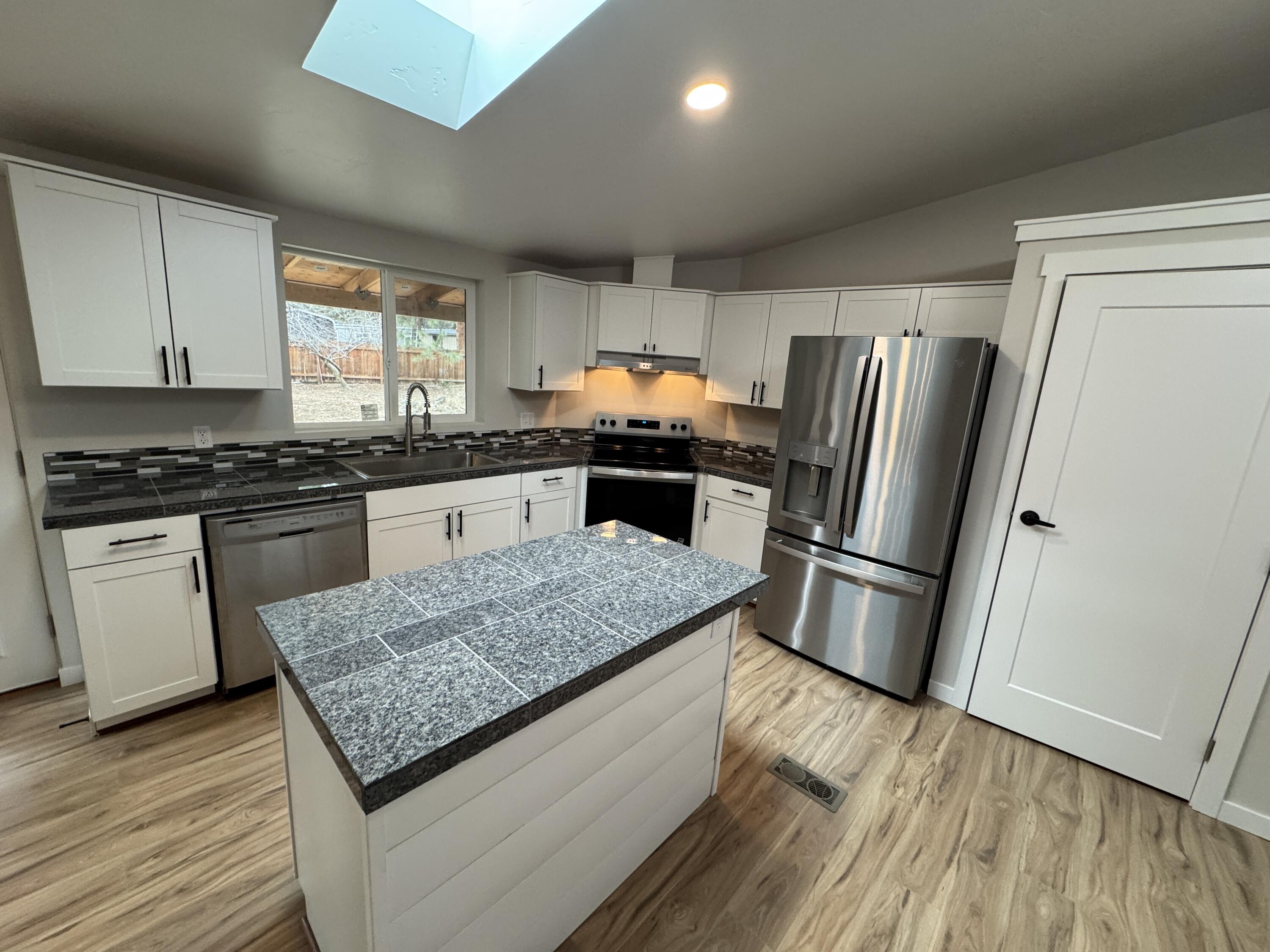 Beautifully remodeled Almost 1,800 sq ft home bursting with character and truly better than new! Set on a rare and highly desirable .46-acre lot with public utilities, this property is just down the street from the Old Mill District & Hayden Homes Amphitheater. The expansive lot offers ample gated and fenced space for toys, animals, or RV parking, plus plenty of room to add a garage, shop, ADU, or additional outbuildings. Inside, enjoy a bright, open vaulted floorplan with ideal separation between the primary suite and guest bedroom. Thoughtful upgrades throughout include a new roof, interior/exterior paint, windows, and skylights, custom cabinets and countertops, stunning tiled showers, carpet & luxury vinyl plank flooring, hand-textured drywall, updated lighting and plumbing fixtures, and new exterior fencing with gate. This move-in-ready home combines modern comfort, flexibility, and a great location — come take a look before it's gone!
