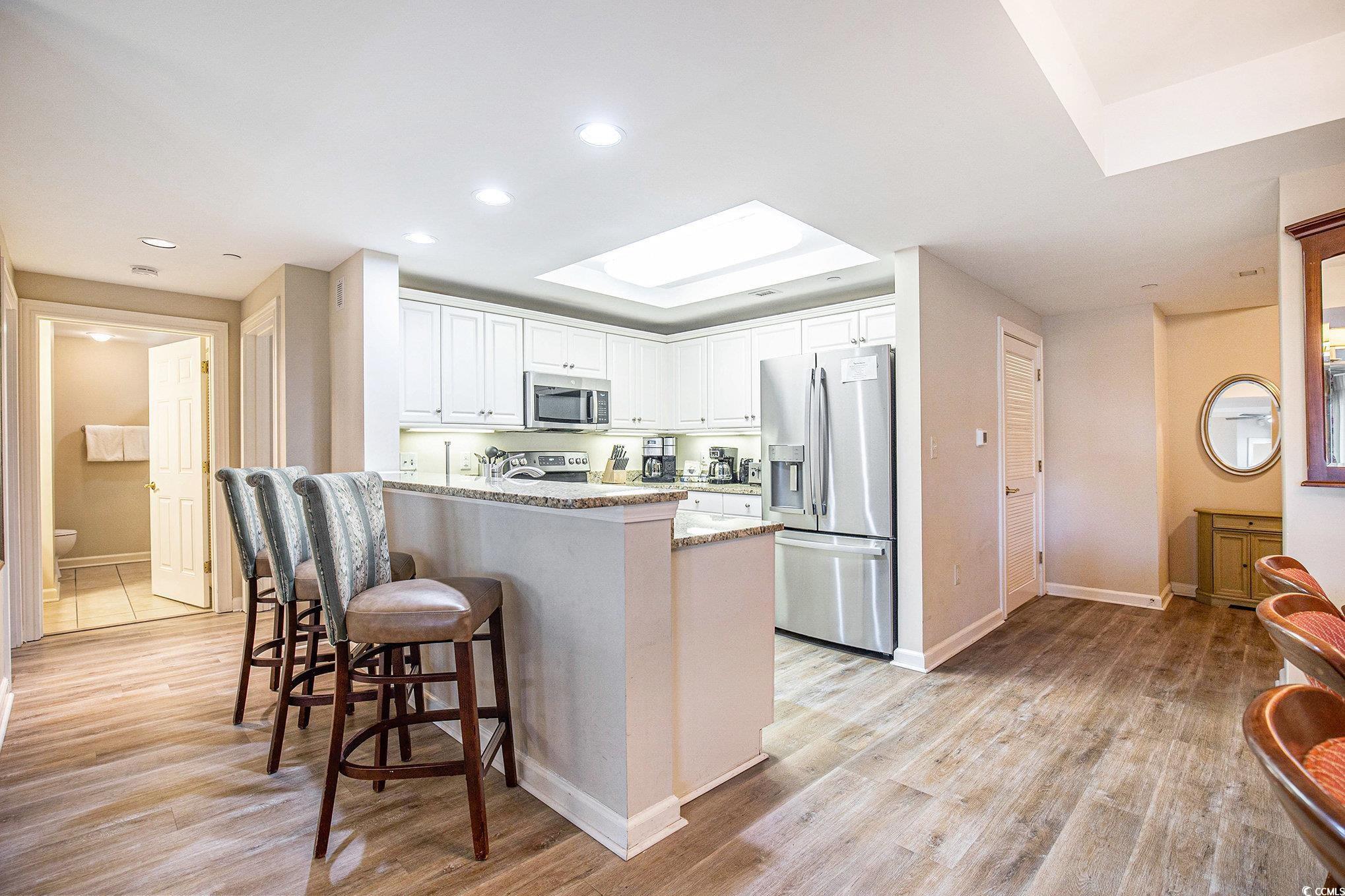 Beautiful 3-bedroom, 3-bath condo offering stunning Atlantic Ocean views. Features LVP flooring throughout, with tile in baths and laundry. The open living area and master bedroom both open to an expansive balcony filled with natural light. Master suite includes a tray ceiling, walk-in closet, and ensuite bath with jetted tub, shower, and double vanity. Spacious guest bedrooms each accommodate two queen beds, with two additional full baths--one with a shower, the other with a tub/shower combo. The kitchen boasts granite countertops, stainless steel appliances, and abundant storage. Laundry room includes full-size washer, dryer, and extra space. Perfect as a primary home, vacation retreat, or investment property. Royale Palms has wonderful amenities including an outdoor pool, tennis courts, the Veranda Bar, and The Royale Day Spa. And, of course, it's right on the beautiful Atlantic Ocean with 60 miles of white sandy beaches. Owners also have use of many of the amenities at the Hilton Hotel and the Embassy Suites. Royale Palms is located close to all of the shopping, dining, entertainment, golf and area attractions that the Grand Strand has to offer.