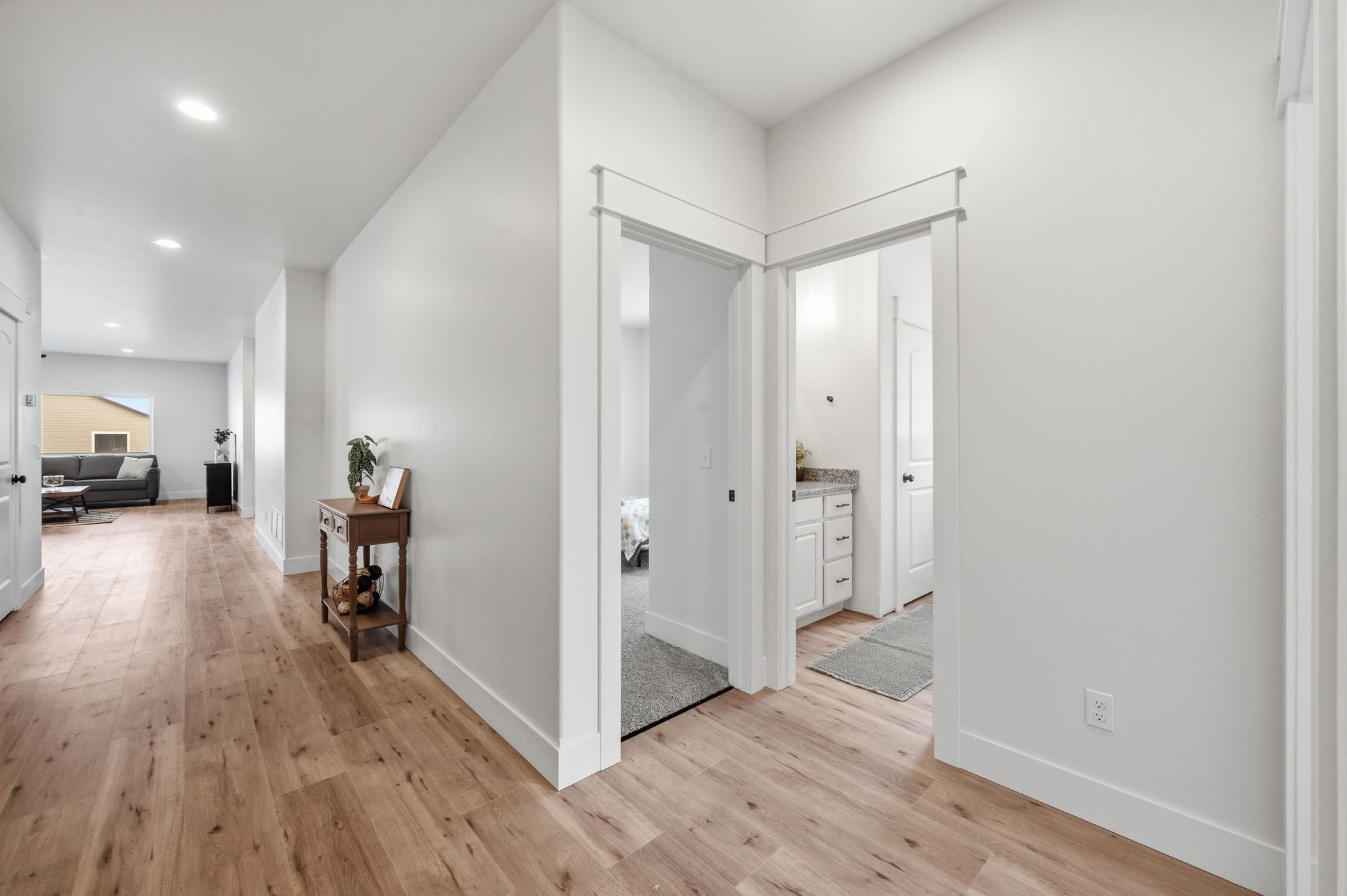 Built with intention and finished with style, this newly constructed home stands apart. With 3 generously sized bedrooms and 2 full bathrooms, the layout is both practical and inviting. Step inside to a wide, inviting entry hallway that sets the tone for the open and airy layout. The home showcases LVP flooring throughout all main walkways, providing both durability and elegance.