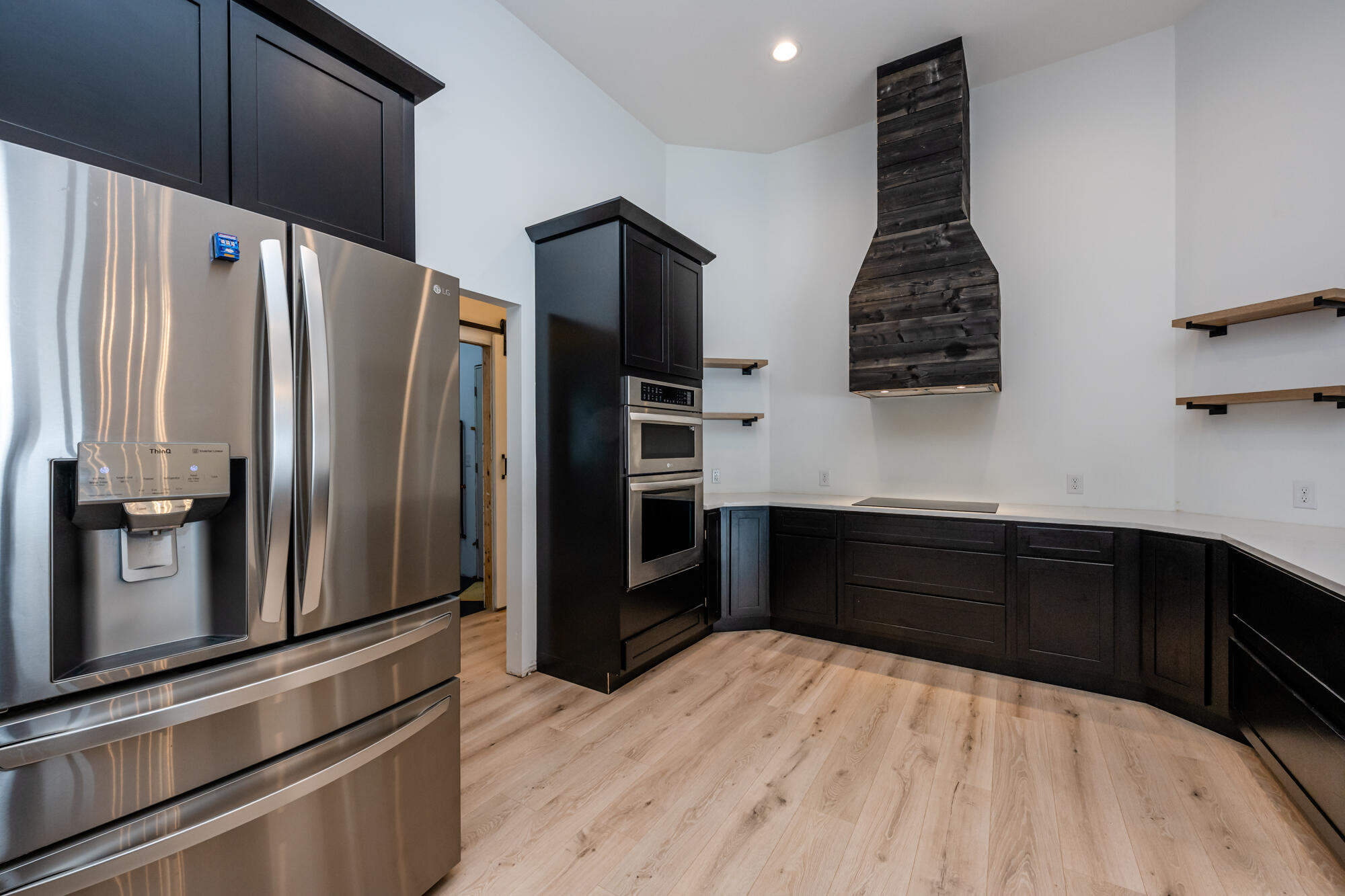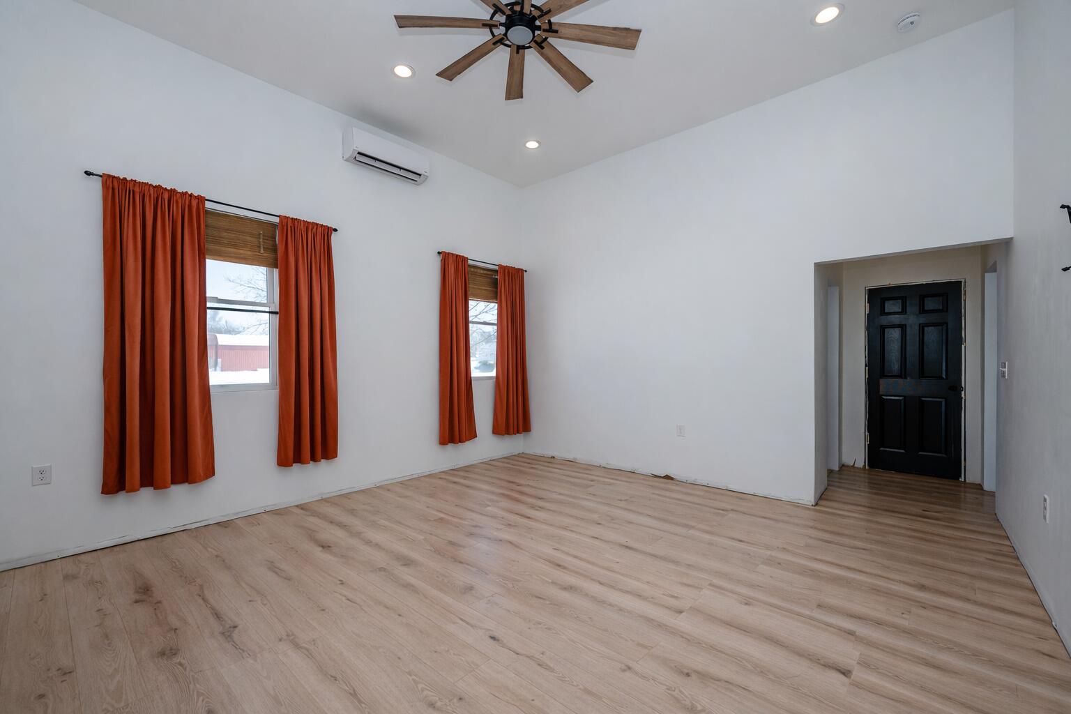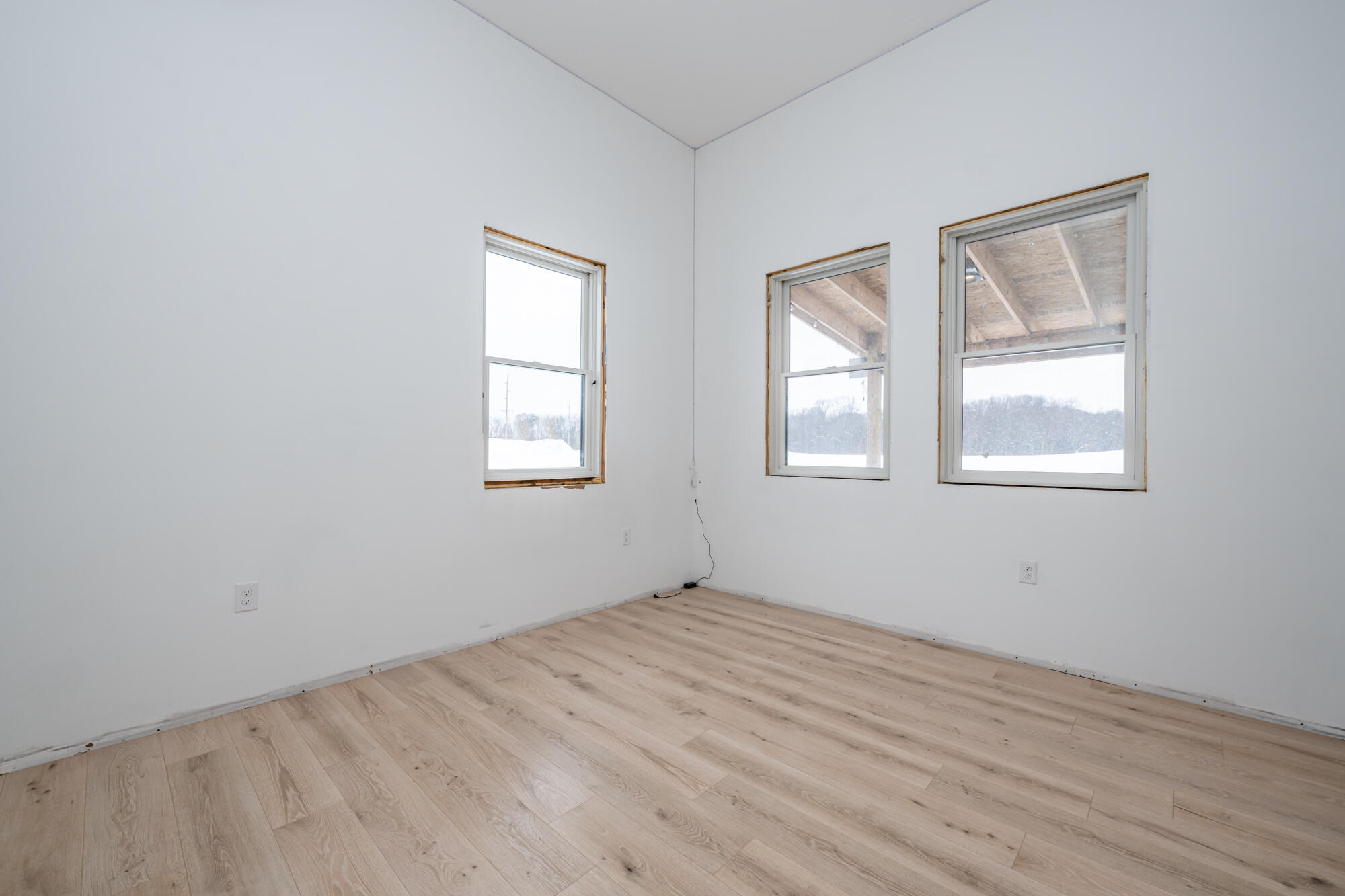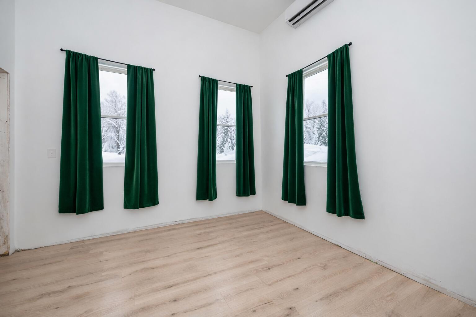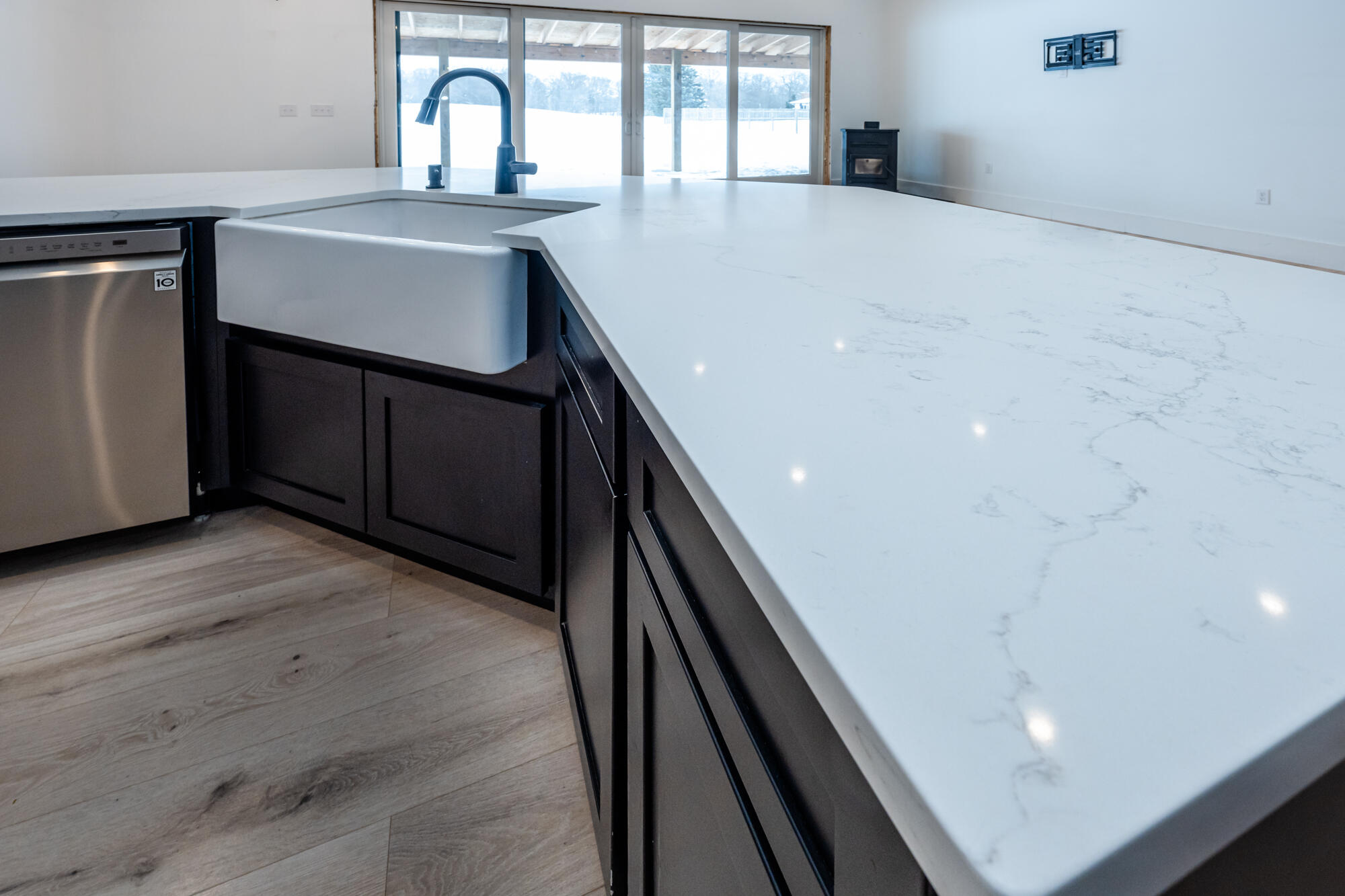 This stunning modern barndominium offers 2,400 square feet of true one-level living with 4 bedrooms, 2.5 bathrooms, and the kind of wide-open design that makes every space feel bigger, brighter, and better. From the moment you step into the huge walk-in foyer under a striking black chandelier, you'll notice all the natural light, you won't want to turn on any lights! With 12-foot vaulted ceilings, crisp white walls, and an 8-foot tall by 16-foot wide sliding door in the living room, the outdoors pours in and the whole home feels airy, calm, and effortlessly modern. The kitchen is the true heart of the home, oversized, open, and designed to gather in your loved ones. Outfitted with beautiful black cabinetry and sleek white quartz countertops, it flows seamlessly into the dining and living spaces for easy entertaining and everyday living. The primary suite feels like a private retreat. A massive bedroom leads into an ensuite bath, featuring an easily 2 person steam shower, separate soaking tub, dual sinks, private water closet, and a closet so large it's almost a room of its own. Step outside and it only gets better. Two huge covered porches invite you to slow down, sip coffee, host friends, or watch the sunset over your five rolling acres.And then there's the bonus most homes can't compete with...Designed with year-round comfort in mind, the home is equipped throughout with efficient mini-split systems, radiant in-floor heat infrastructure, and the inviting warmth of the pellet stove, offering multiple options for personalized climate control. Also-- a 43' x 34' detached workshop, ideal for hobbies, toys, projects, plus your very own dirt bike track right on the property. Modern. Bright. Open. Functional. Fun.