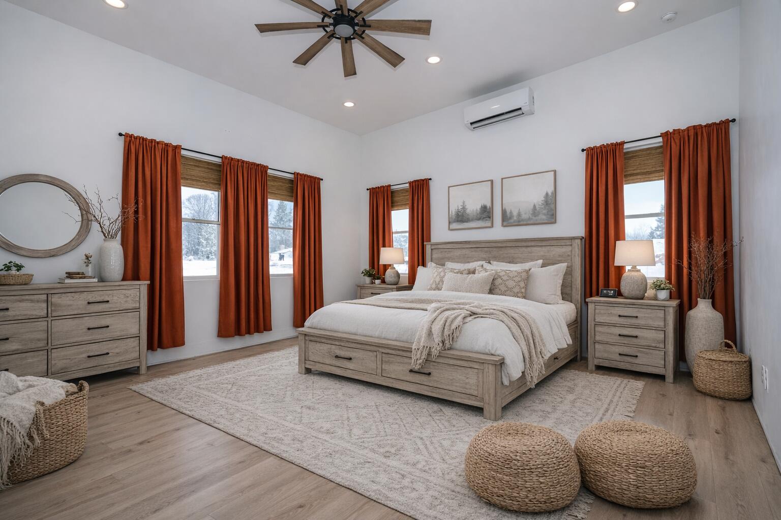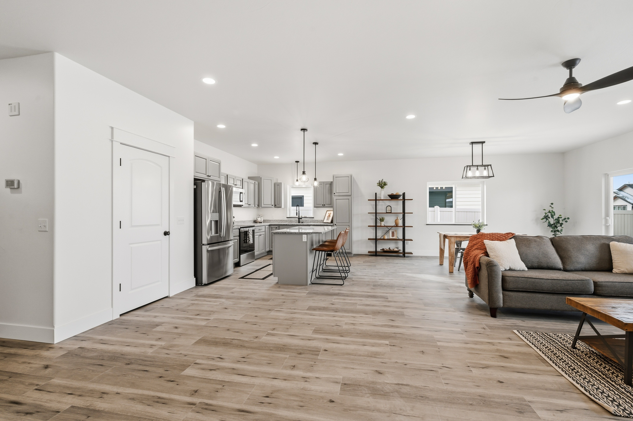This stunning modern barndominium offers 2,400 square feet of true one-level living with 4 bedrooms, 2.5 bathrooms, and the kind of wide-open design that makes every space feel bigger, brighter, and better.