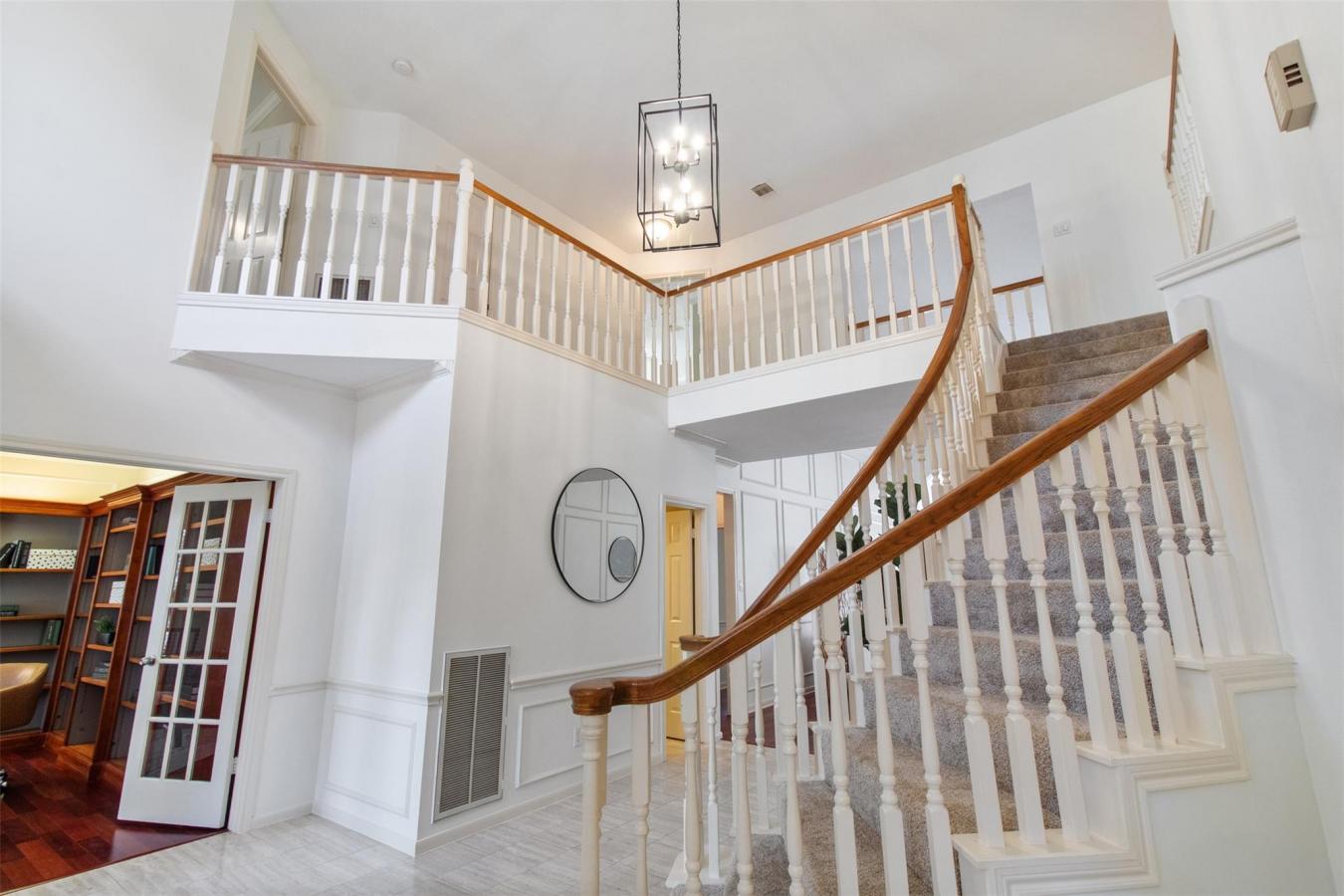 Welcome Home to Nottingham Country! Step into the inviting foyer with its beautiful double staircase that sets a warm tone for the home. Off the foyer, a spacious study or home office with a cozy gas-log fireplace is perfect for work or quiet time. The bright dining room, with floor-to-ceiling windows, opens to the chef's kitchen with island and sunny breakfast area.