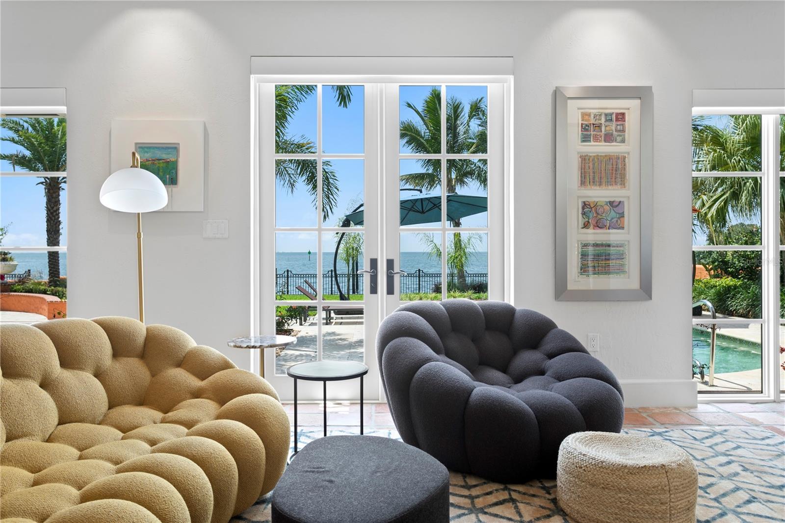 A statement of modern waterfront luxury, 24 Fiesta Way captivates with clean architecture, curated finishes, and 6,479 SF of refined living. Gated and private, this new residence rests on an 85â WF lot with beautifully designed landscaping and canal views. Interiors reveal custom veneered cabinetry, detailed ceiling carpentry, and expansive glass framing the courtyard.