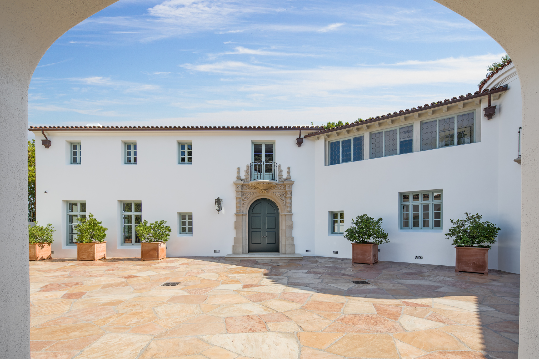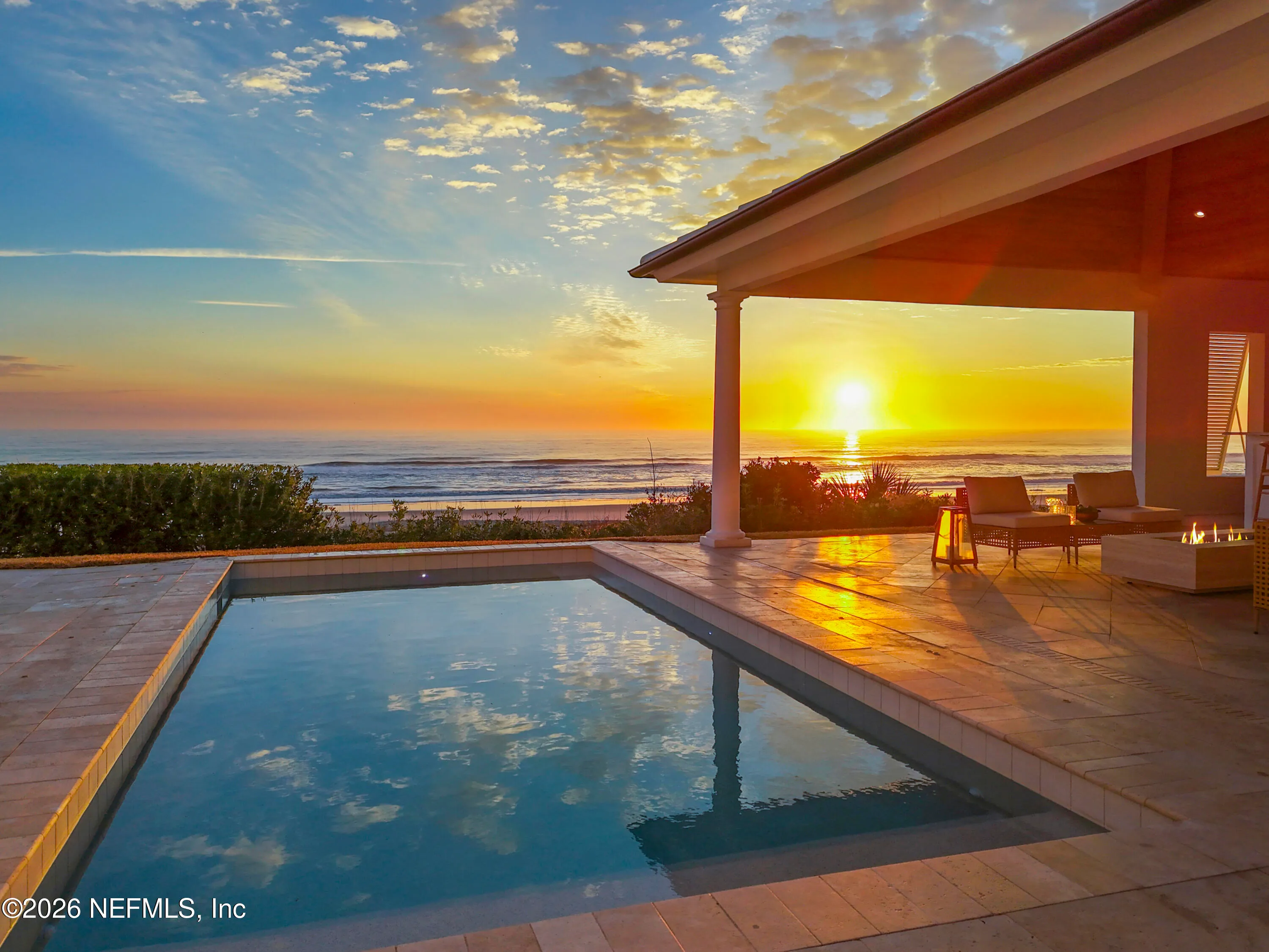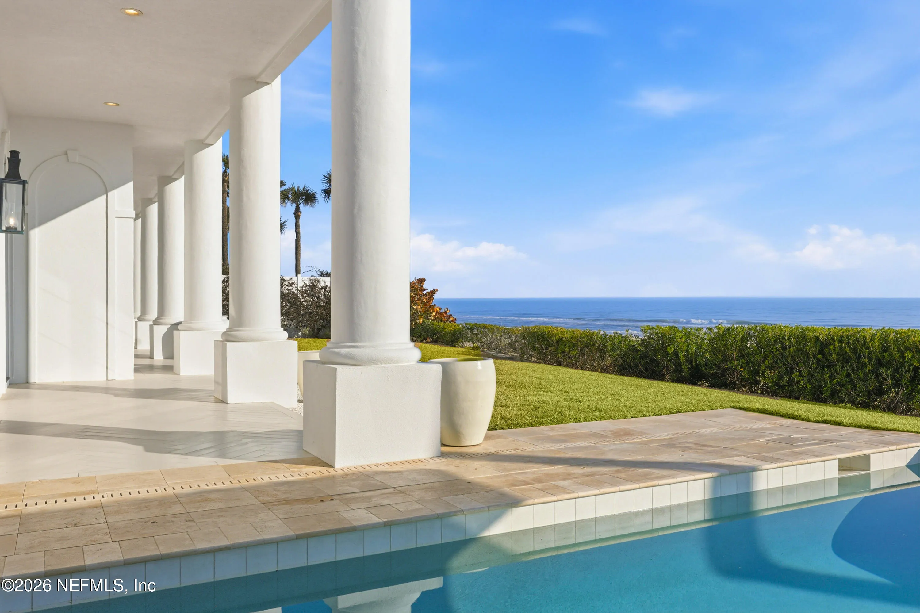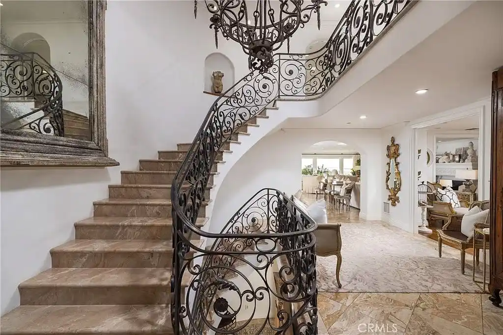 Nestled on a rare double lot along the coveted Gold Coast, this custom-built estate epitomizes sophisticated beach living. Spanning three stories, this exquisite Tuscany villa showcases grand architectural details and luxurious finishes throughout its impressive 8,646 square feet. Imported elements from France—including roof tiles, ornate iron entry gates, antique doors, and vintage bathroom vanities—add a unique charm, complemented by fresh paint throughout. Set on an expansive 11,760-square-foot lot, the home offers breathtaking, uninterrupted views of the beach. Inside, you’ll find six spacious bedrooms and eight-and-a-half bathrooms, along with a convenient elevator. The property boasts an 800-bottle refrigerated wine cellar, a dedicated office, and a gym complete with a full bathroom and steam shower—offering the potential for a seventh bedroom. The four-car garage is equipped with a 220-volt car charger for electric vehicles. The meticulously landscaped grounds feature a tranquil courtyard and a lush backyard adorned with a variety of dwarf fruit trees, including orange, lime, persimmon, berry, and papaya. The main level is designed for both entertaining and relaxation, highlighted by an ocean-view kitchen equipped with Dacor appliances, dual Sub-Zero refrigerators, marble countertops with copper sinks, and beautifully glazed cabinets. The main living and dining areas are bathed in natural light, thanks to the array of French doors that open to a spacious balcony offering stunning views of the ocean and picturesque sunsets over the sea and the inviting pool and spa—the property’s centerpiece. Downstairs, the entertainment options continue with a recreation room, an oversized wine cellar, a gym, and a fully equipped wet bar. The home is outfitted with a surround sound system, outdoor speakers for the backyard, an advanced alarm system with monitoring cameras, and a Homeworks lighting system. Experience a lifestyle of unparalleled luxury in this distinguished architectural gem on the Gold Coast, renowned for its private serenity, timeless charm, and sweeping ocean vistas that transform every sunset into a masterpiece.