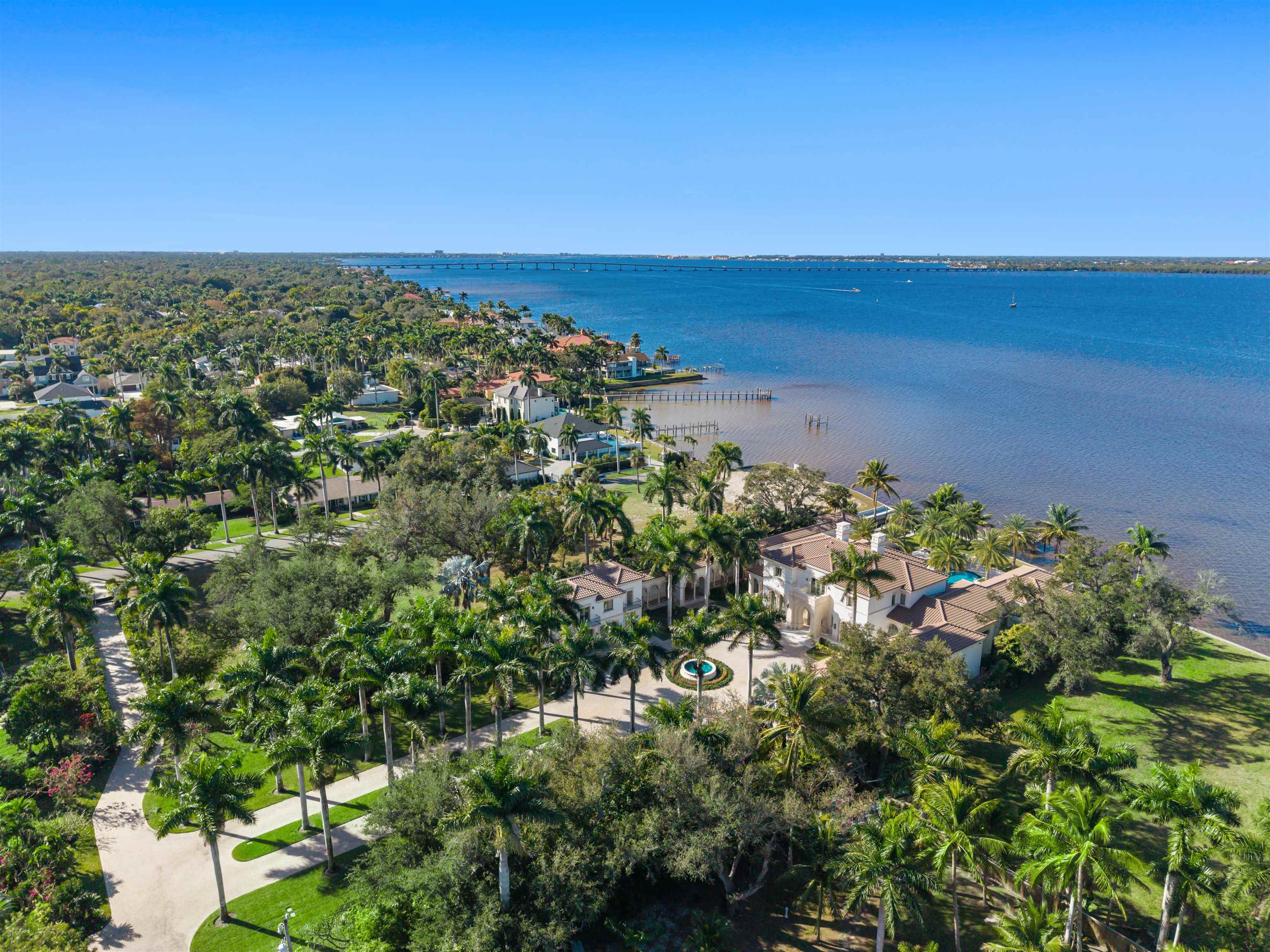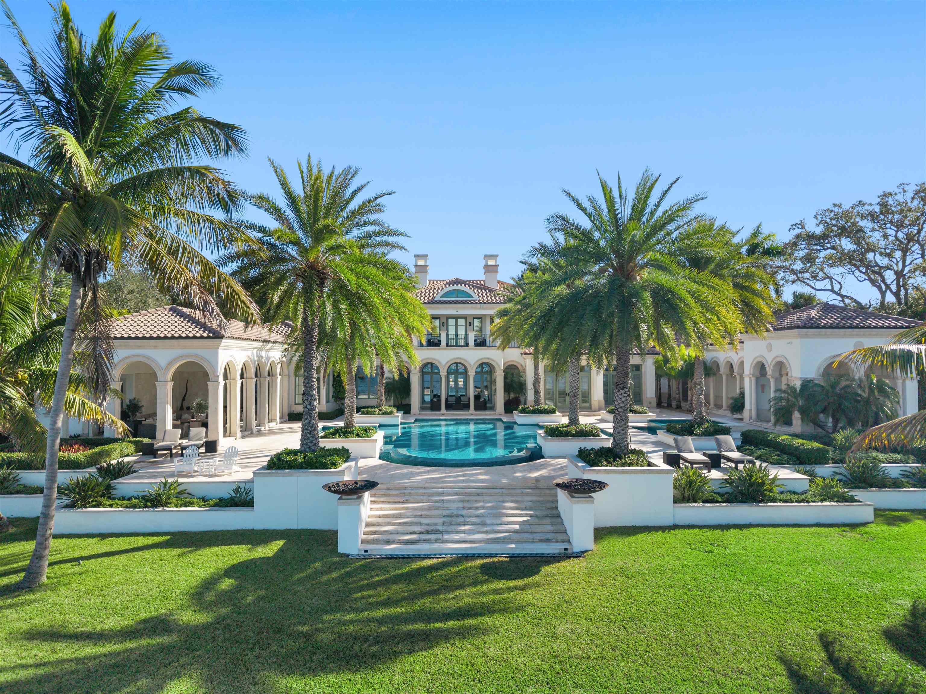 A true crown jewel of Southwest Florida, this Palladian-inspired waterfront estate stands in a class entirely its own. Offering a level of craftsmanship, scale, and resilience more often associated with Naples or Palm Beach, this is a generational type property, an estate that simply cannot be recreated at this value. It is a residence that quietly yet unmistakably signals arrival. Set behind private gates on more than two secluded acres in one of Fort Myers’ most prestigious waterfront settings, the impeccably furnished estate unfolds as a private world. Once on property, the surroundings fade away, replaced by a tranquil botanical sanctuary filled with rare and exotic plantings sourced from around the globe. The sense of privacy is complete, resort-level living, entirely your own. Spanning nearly 19,200 square feet of living space, the estate offers 153 feet of direct Gulf-access waterfront, two private docks, and a boat lift accommodating vessels up to 40 feet with a 30,000-pound lift (expandable). Designed with longevity and strength in mind, the elevated residence delivers exceptional peace of mind without sacrificing beauty or elegance. The principal residence features four luxurious bedroom suites, two private offices, a professional-grade fitness studio, and both indoor and outdoor theaters designed for refined entertaining. A 2,000-bottle wine cellar anchors the home for collectors, while the chef’s kitchen is a true statement, finished in African walnut with custom cabinetry, marble countertops, premium appliances, and elegant marble sliding panels that conceal functionality behind a seamless, gallery-like design. Outdoor living rivals the finest five-star resorts, centered around a breathtaking 75,000-gallon mosaic infinity-edge pool and dramatic 16-person spa. Expansive lounge areas, a fully equipped outdoor kitchen, automated screens, and hurricane shutters allow the home to live effortlessly year-round, all framed by serene water views and lush tropical gardens. A separate three-bedroom guest house is also available and offers privacy and comfort for guests or staff, while the expansive motor court and nine garage spaces, accented by solid granite driveways and refined Mexican shell stone, will impress the most discerning automotive enthusiasts. Built without compromise by Michelangelo Custom Homes and architecturally designed by Stofft Cooney of Naples, the timeless estate showcases Italian marble flooring, custom fixtures, and precision millwork throughout. Advanced systems include state-of-the-art audio, visual, and security technology; Japanese Tensui water filtration; dual-well, web-based irrigation; elevator access; a 1,000-gallon underground LPG tank; and an extraordinary 754-light LED system that transforms the property from day to night. This is not simply a luxury home, it is a private sanctuary, a legacy estate, and one of the most remarkable and enduring waterfront offerings ever presented in Lee County.
