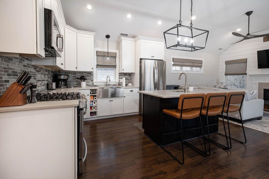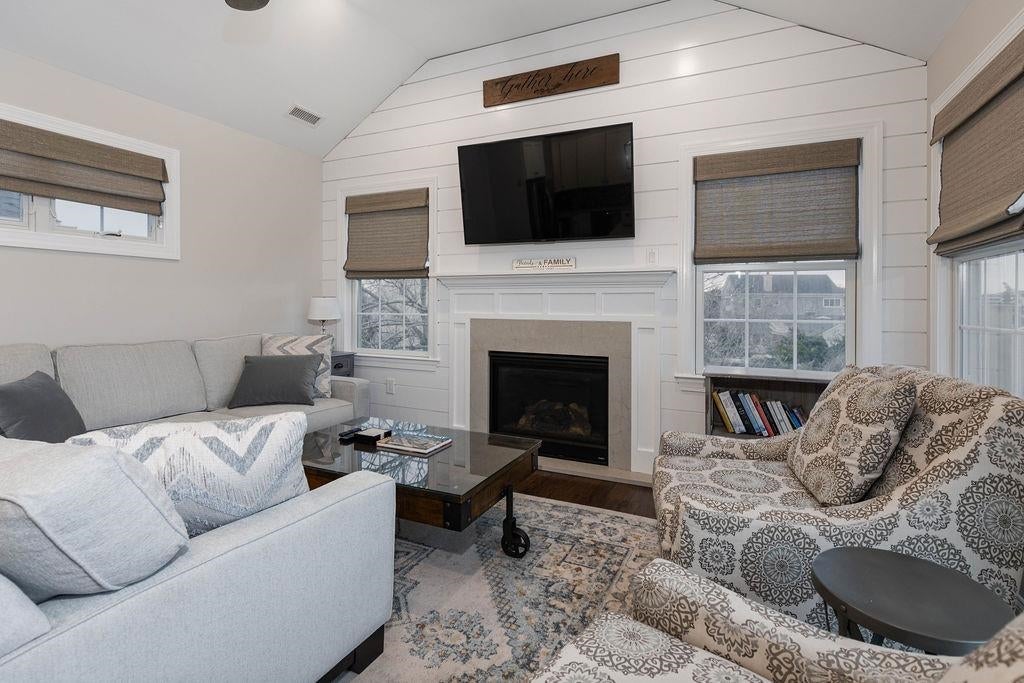Two blocks from the beach, this beautifully designed West Cape May home features a dramatic cathedral-ceiling great room, elevator to every level, screened porch, upper sun deck with retractable awning, and exceptional rental income potential. Built in 2018, this beautifully designed 5-bedroom, 3.5-bath upside-down style home with elevator serving every level, including the ground-floor, blends modern coastal design with exceptional comfort and strong rental performance. The top level showcases the homes impressive main living space with cathedral ceilings, a gas fireplace with shiplap accents, and a bright open-concept layout connecting the living room, dining area, chefs kitchen and one of the primary suites. The kitchen features a spacious center island, stainless appliances, beverage refrigerator, and ample workspace for entertaining. Outdoor living is just as inviting with two expansive decks, including a screened porch and an upper sun deck with retractable awning, perfect for relaxing after a day at the beach. With five generously sized bedrooms, including two primary suites, the layout provides flexible sleeping arrangements along with multiple living areas for added privacy and convenience. The ground level includes an oversized garage, additional storage, and elevator access to all floors. Additional highlights include hardwood flooring, multi-zone heating and air conditioning, outside shower, sprinkler system, and stone driveway. Located just two blocks from the beach and within easy walking distance of West Cape May favorites like Sapore, Grana byob, Viggianos, West End Garage, and Wilbraham Park, this property offers the rare combination of peaceful surroundings and immediate access to Cape Mays vibrant dining, festivals, Holiday Parade, and coastal lifestyle. The home has also proven itself as a high-performing vacation rental, generating over 120,000 in seasonal income in years past, making it an outstanding investment opportunity or luxury shore retreat.