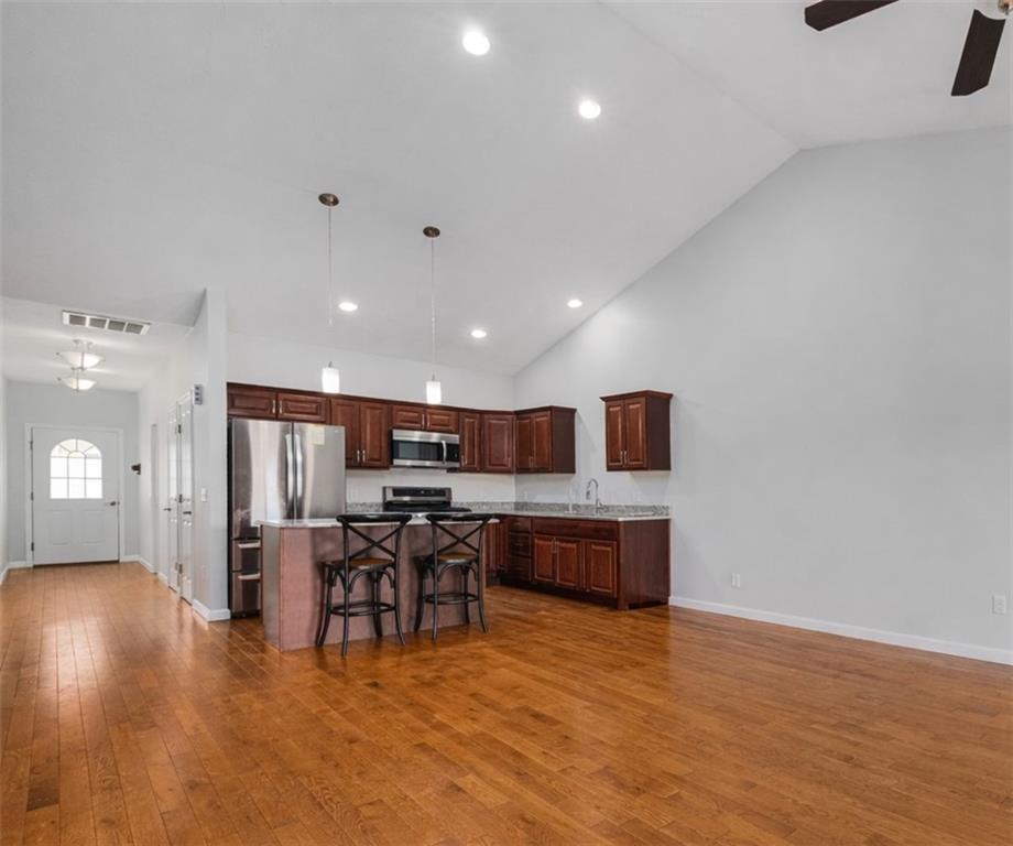 Welcome to this beautifully maintained condo located in a quiet, highly sought-after association. From the moment you arrive, you'll appreciate the charming curb appeal and inviting setting. Step inside to discover a thoughtfully designed layout with everything you need on the main level, including the primary bedroom, full bathrooms, laundry, and kitchen—perfect for easy, single-level living. The open-concept kitchen is equipped with granite countertops and stainless steel appliances, seamlessly flowing into a spacious living area featuring cathedral ceilings, a gas-fired fireplace, and an abundance of natural light. Step out onto your private deck—an ideal space to relax, enjoy your morning coffee, or entertain guests. The finished lower level offers additional versatile living space, complete with a walk-out sliding door to the back of the unit, providing even more room to unwind or host. Combining comfort, style, and convenience, this home offers the perfect blend of low-maintenance living and modern appeal.