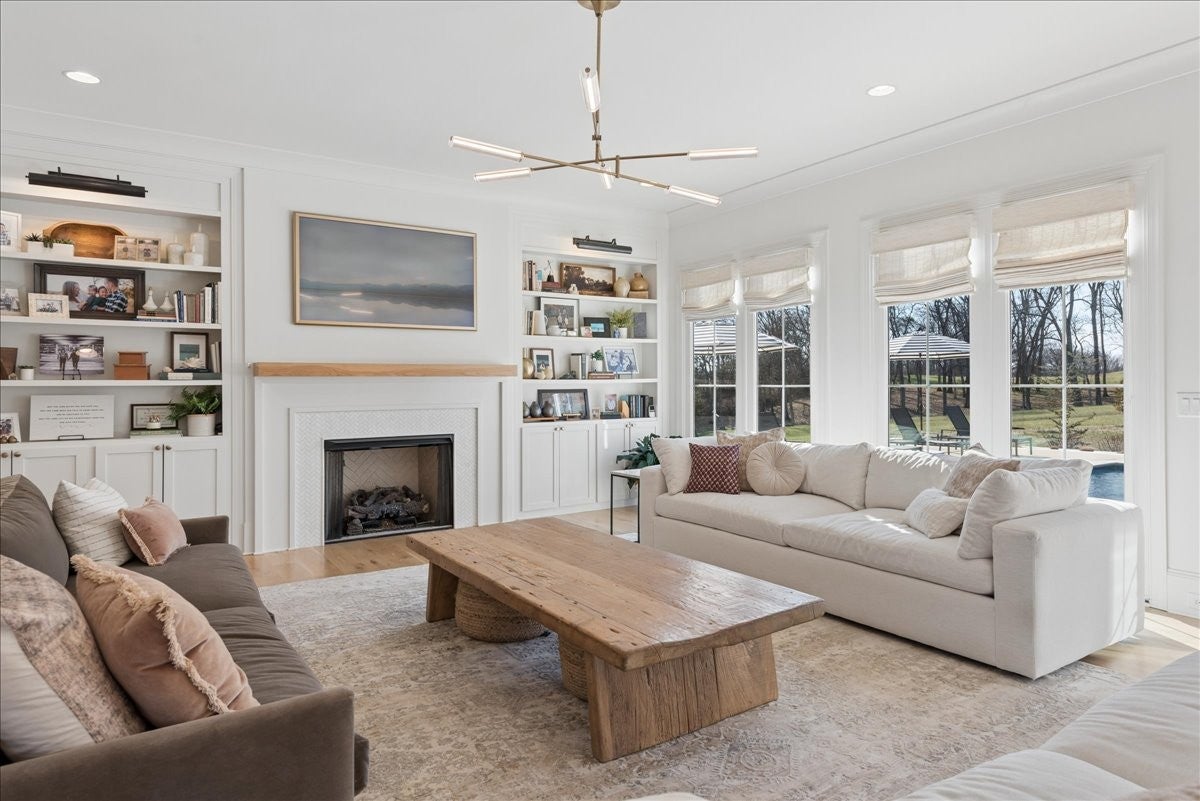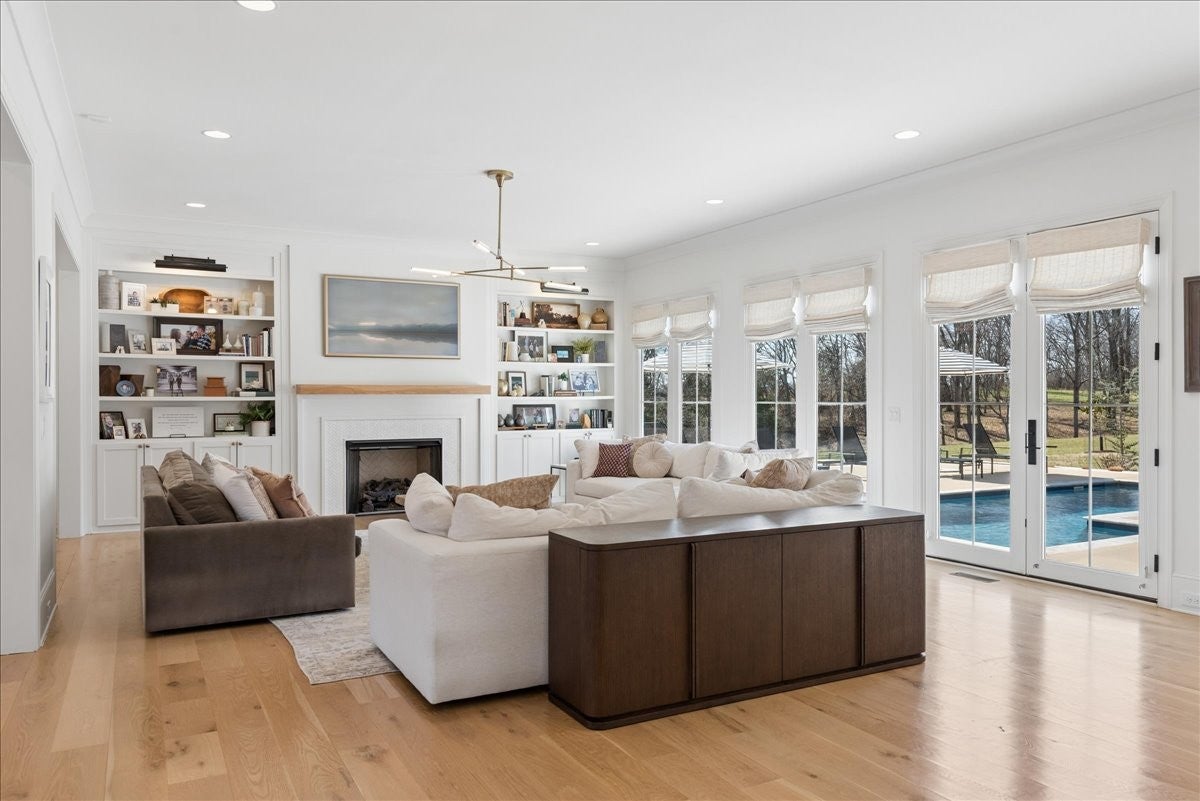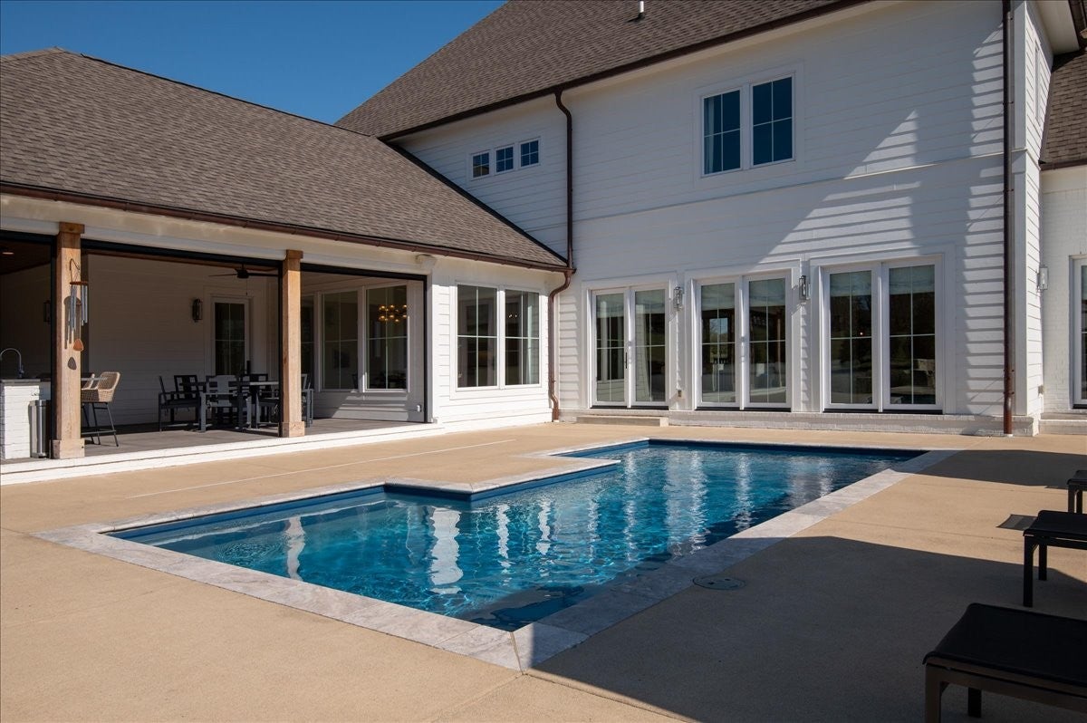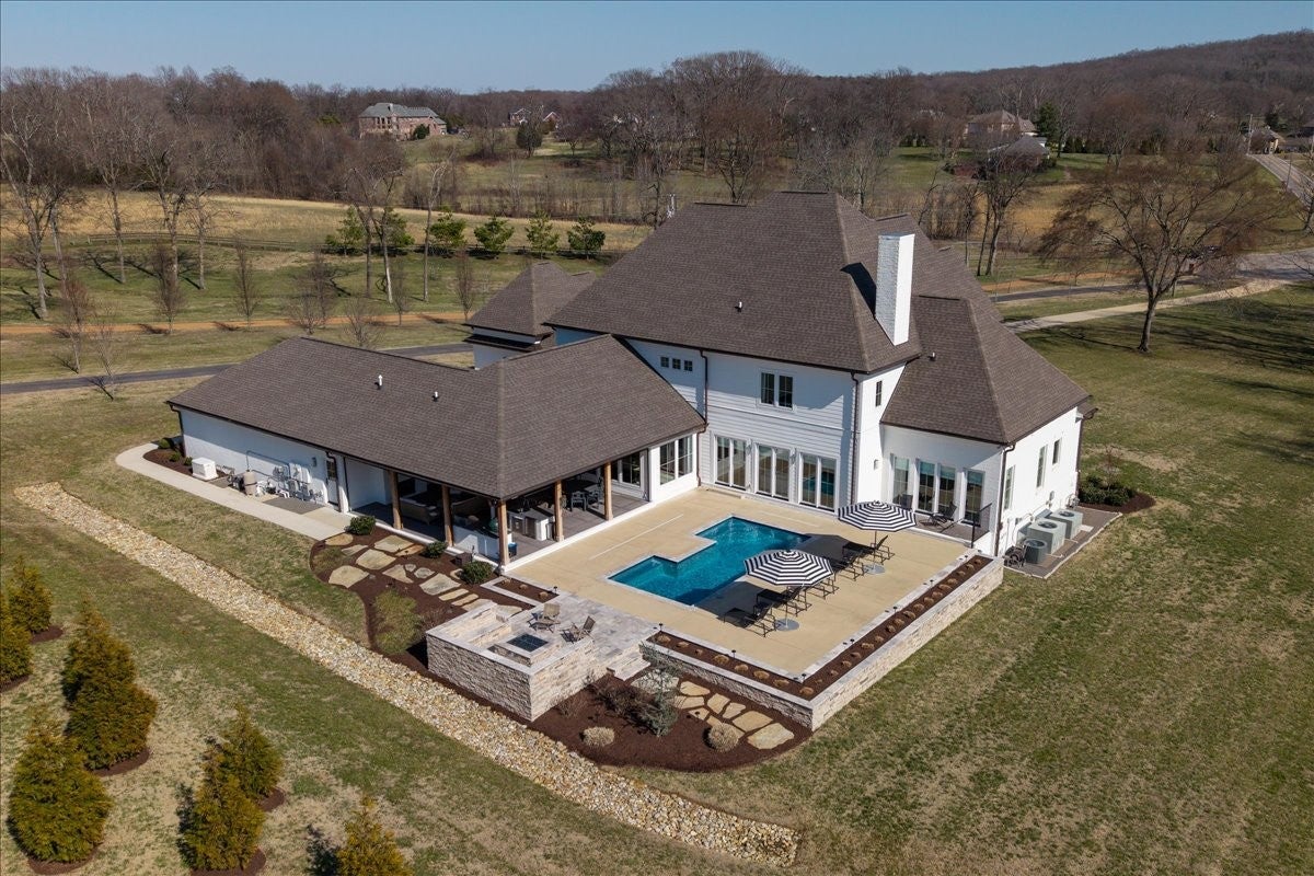 Stunning custom-built home offering exceptional craftsmanship, designer finishes, and resort-style outdoor living. Thoughtfully designed w/expansive spaces throughout, the main level features a grand living room with custom built-in cabinetry and seamless flow into the chefs kitchen, complete with premium Thermador appliances, an oversized island, and a generous walk-in pantry outfitted with beverage drawers, a second dishwasher, and a second garbage disposer. The spacious primary suite is a true retreat, showcasing a spa-inspired bath with steam shower, custom cabinetry, and built-in closet shelving. The main floor also includes a private office, formal dining room, breakfast nook, mud room with built-ins, laundry room with dog wash station, and a convenient pool-access bath. Upstairs, youll find three oversized bedrooms, a study, and an impressive bonus room with custom built-ins. In total, the home offers four bedrooms, multiple flex spaces, four full baths, and three half baths. Outdoor living is unmatched, featuring a professionally maintained fiberglass pool with a new heater, a fully equipped outdoor kitchen with Perlick ice maker, refrigerator, Big Green Egg, and Coyote gas grill, plus motorized screens and shades for year-round enjoyment. Firepit, landscape lighting, and mature trees provide a private backyard retreat. Additional highlights include a whole-home generator, tankless water heater, copper gutters, three Trane HVAC units with Ecobee smart thermostats, Control4 home automation system controlling lighting, sound, and video, built-in speakers throughout, exterior security cameras & driveway alarm, custom window treatments, and an oversized garage with Gladiator wall panel storage system. This extraordinary property perfectly blends luxury, technology, and comfort for both everyday living and exceptional entertaining. Truly, this home is unlike any other, with custom touches and attention to detail that make it absolutely exceptional.