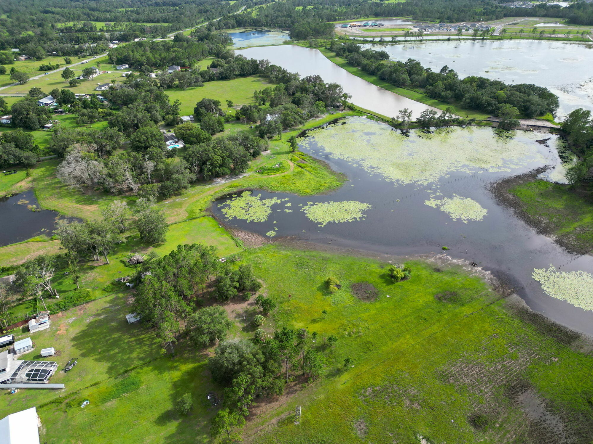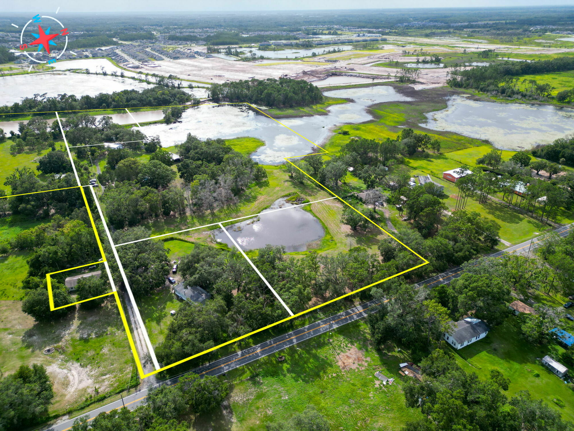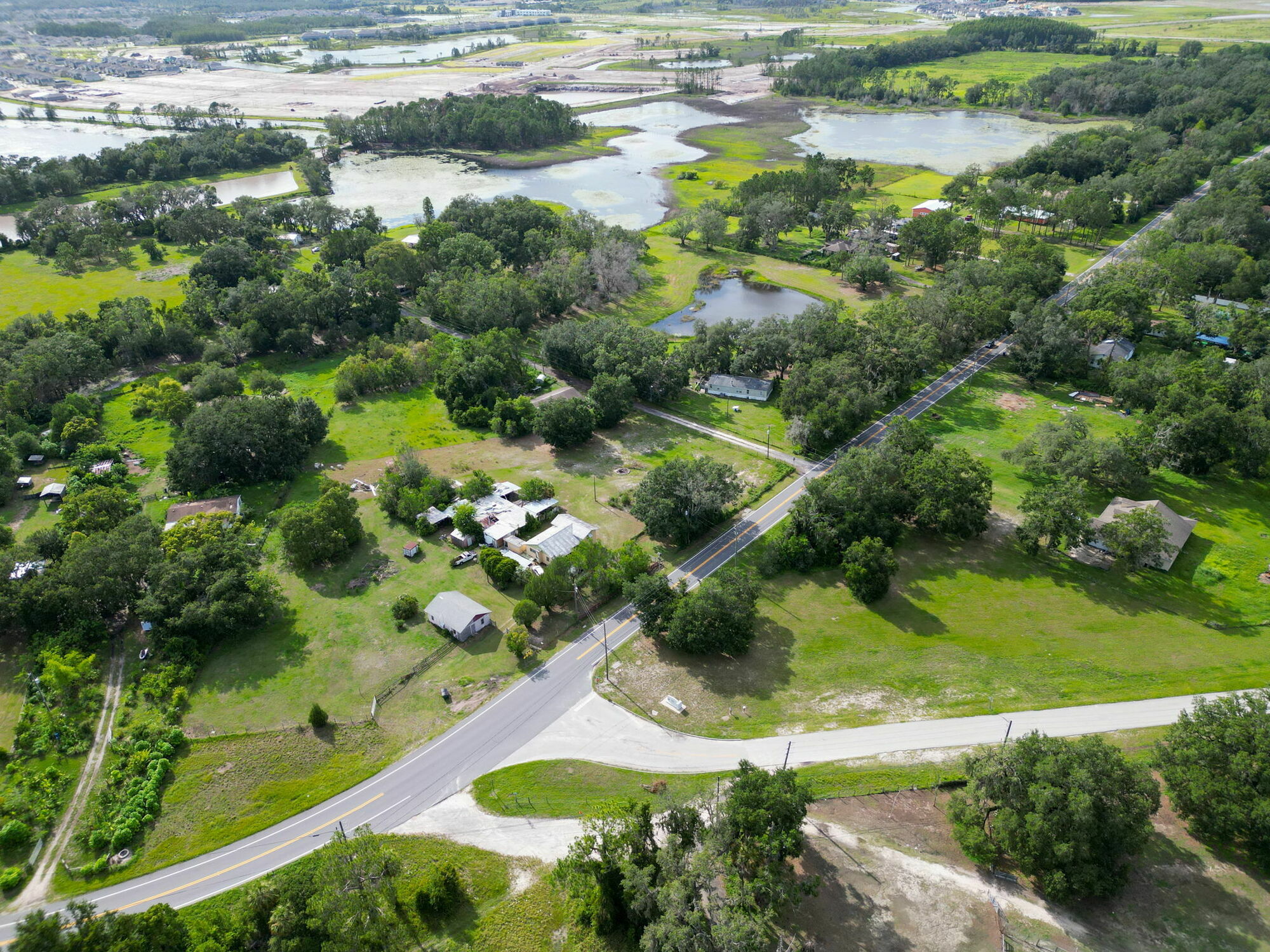 25 Acre Multi-Parcel Investment Opportunity – 5 Residences Development Land in Growing Land O’ Lakes, Florida. A truly rare opportunity to acquire 25 acres of versatile land in Pasco County, comprised of 7 unique parcels, including 5 income-producing residences, a vacant lot with a pond, and a dedicated access road.