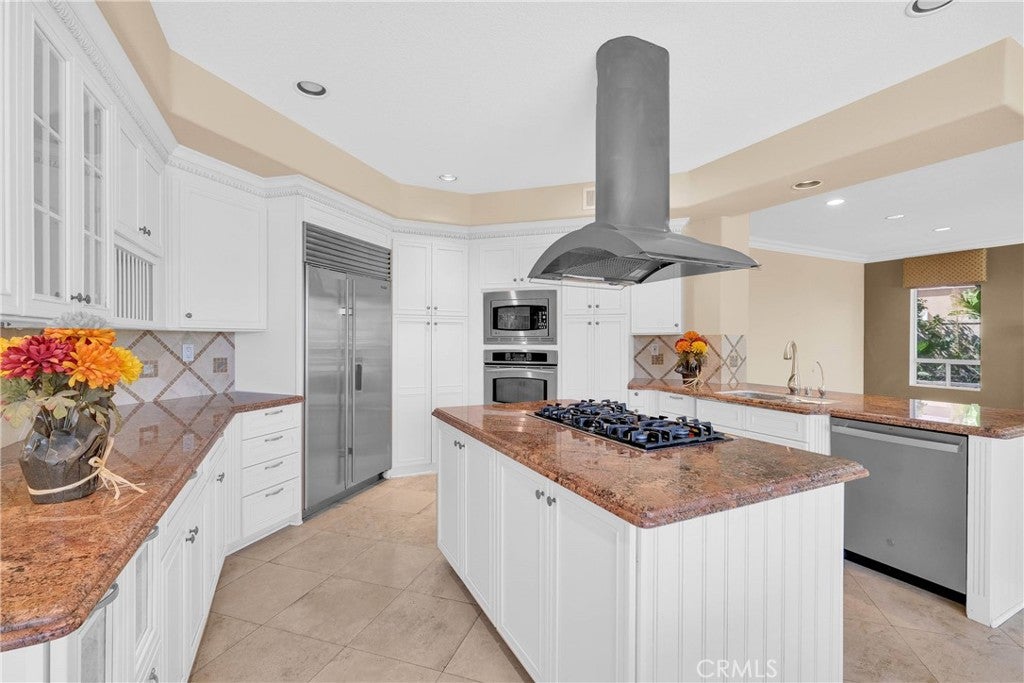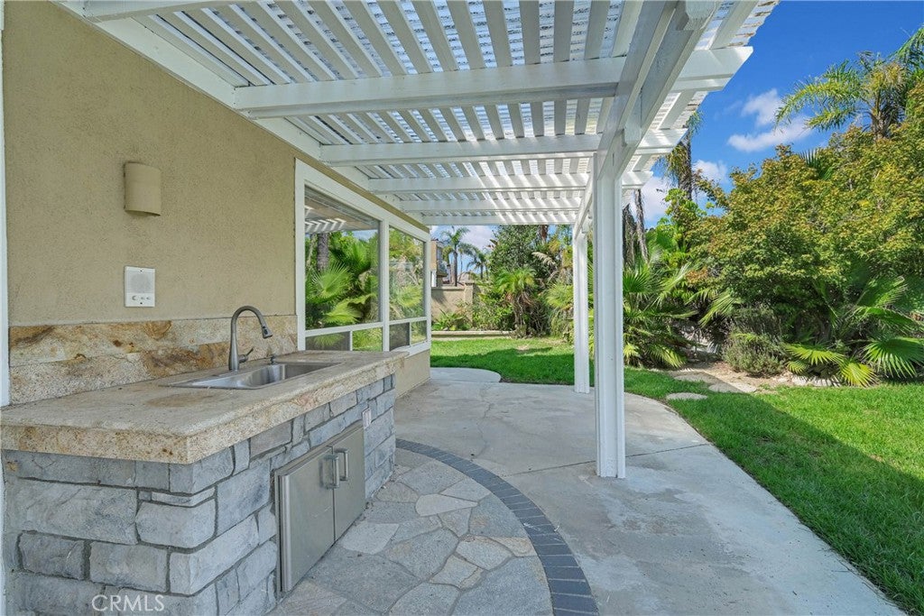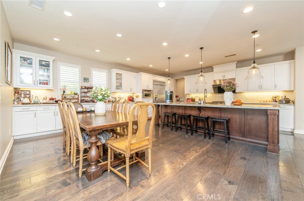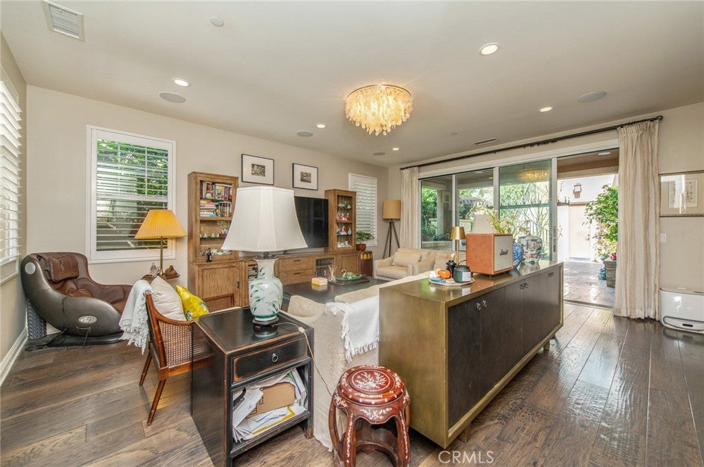 Welcome to modern luxury and versatile living in Tustin Legacys highly sought-after Greenwood Community. This expansive residence captivates with a sun-drenched open floor plan designed for daily living and entertaining. The heart of the home is a true chefs kitchen, appointed with professional stainless steel appliances, rich espresso cabinetry, and exquisite Bianca Romano granite countertops with a custom backsplash. Seamlessly flowing from the great room, spectacular panoramic doors open to a covered outdoor living space, blurring the lines between indoors and out to create the ultimate Southern California retreat.Step outside to a private, well-maintained backyard oasis designed for entertaining. This beautiful, low-maintenance courtyard features elegant stone tile hardscaping and is equipped for cookouts with a built-in barbecue island, stacked-stone detailing, and a custom wood pergola. Accentuated by fruit trees and tasteful landscaping, this serene space offers a sophisticated aesthetic without extensive upkeep.A highly desirable feature of this property is the flexible guest suite layout, including its own living area, kitchenette, private bedroom, and bathroom. This makes the home perfect for multi-generational living or accommodating guests with ease and privacy. Upstairs, the lavish primary suite serves as a tranquil sanctuary, boasting a spa-inspired en-suite bath with Crema Perla honed counters, elegant framed mirrors, and an oversized walk-in closet. An expansive bonus room, pre-wired with a home theater package, offers an incredible space for movie nights, while gorgeous wood flooring and custom recessed lighting elevate the aesthetic throughout the home.Beyond the impeccable interior, enjoy exclusive access to the communitys resort-style amenities. The private club features a sparkling pool and spa, an interactive water play area, fire pits, lush parks, sports courts, and a gorgeous clubhouse with a catering kitchen. Situated moments from top-tier schools like Legacy Magnet Academy and the premier dining, shopping, and entertainment at The District, this residence delivers an extraordinary lifestyle.