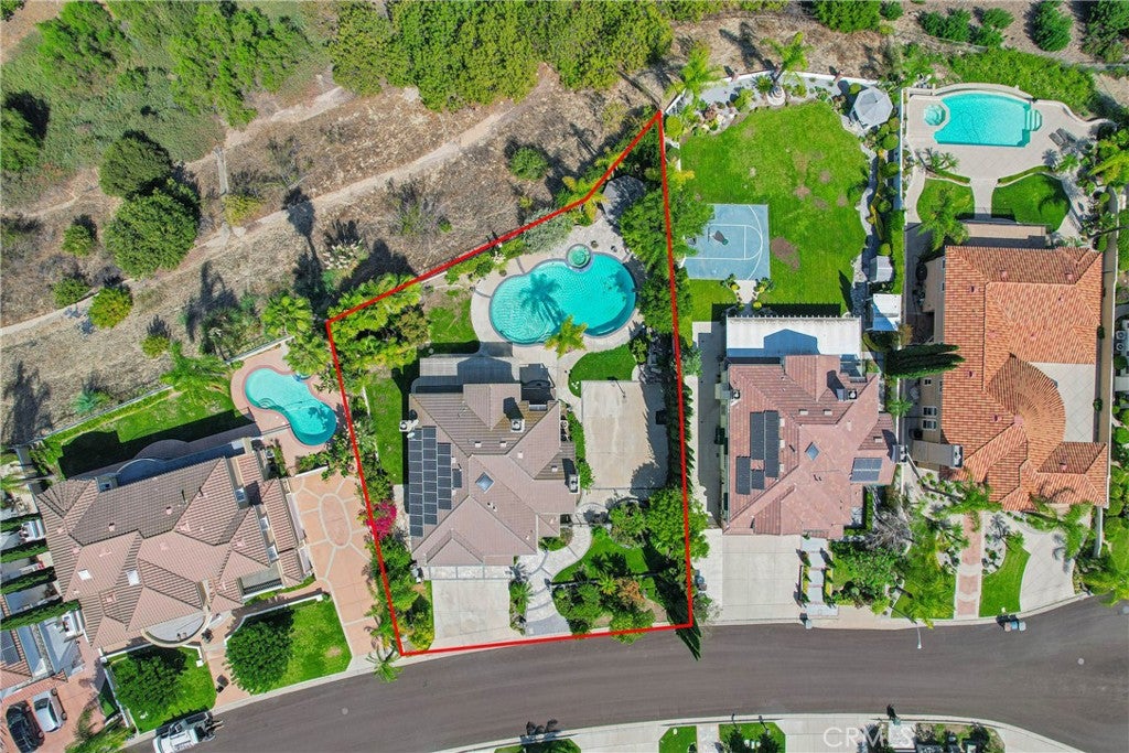 Discover your dream home in this stunning 5-bedroom, 4.5-bath residence boasting and approx. 3,665 sq.ft. of luxurious living space on an expansive 27,000 sq.ft. lot. This is an elegant south-facing home in the prestigious Belgate Estates of Walnut. Step inside to find a formal living room with soaring cathedral ceilings and a separate dining room, perfect for entertaining. The chefs kitchen features upgraded granite countertops and stainless steel appliances, seamlessly opening to a cozy family room complete with a warm fireplace. The main floor includes a convenient en-suite bedroom with its own bathroom, along with a stylish half bath for guests. Upstairs, the expansive master suite offers a private retreat with its own romantic fireplace and a terrace where you can unwind and enjoy picturesque views.The beautifully landscaped backyard is perfect for entertaining with a private pool, patios, and breathtaking hillside and city light views. Additional highlights include 26 pieces paid-off solar panels, providing both energy efficiency and cost savings. With a 3-car garage and basketball court. Located in the award-winning Walnut School District, this home is just minutes from Mount Sac College, walking trails, parks, schools, and shopping. A rare opportunity to own a dream estate in one of Walnuts most desirable neighborhoods and enjoy a lifestyle of comfort and convenience!