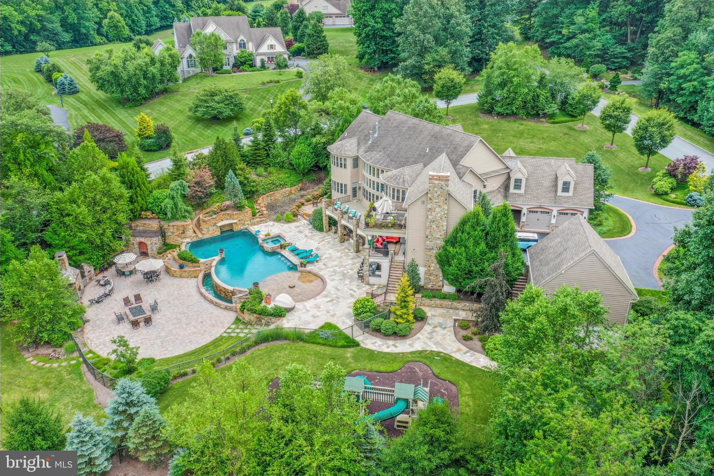 Welcome to 32 Stonehill, where unparalleled luxury meets serene living in this magnificent 8-bedroom, 8-bathroom (6 full, 2 half) single-family residence in the rolling hills of Cumru Township. Built in 2015 by Elite Home Builders, this transitional architectural masterpiece spans an impressive 8,854 total square feet (6,165 finished above grade, 2,689 finished below grade) and sits majestically on a private 3.03-acre lot, featuring mature landscaping and a resort quality outdoor living space all directly across from the renowned LedgeRock Golf Club. Step inside and be captivated by the grand scale and refined details. The home boasts six fireplaces, offering warmth and ambiance throughout and the luxury chefs eat-in kitchen is a culinary dream, featuring a commercial-grade stainless steel six-burner stove, double ovens, a huge island perfect for entertaining, a walk-in pantry, and a built-in dining nook. This expansive residence offers multiple living and entertaining spaces across three levels, each with covered porches and balconies. The main level also includes a formal dining room, a spacious living room with a vaulted ceiling and balcony access, a den & separate office and a family room with coffered ceiling and charming built-ins and a wet bar. The main floor also houses a spacious guest bedroom with full en-suite bathroom that could function as a primary bedroom. The upper level is home to the luxurious primary suite, a private oasis with an attached bathroom, jetted tub, walk-in shower, gas fireplace, built-ins, and balcony access and a spacious walk-in closet. Four additional generously sized bedrooms, each with attached bathrooms (totaling 6 bedrooms with en-suite baths), and an upper-level laundry room which can also be accessed from the primary closet completes this floor. The finished walk-out lower level is an entertainers delight, featuring a game room with a fireplace, 2 additional bedrooms with an attached bathroom, a movie theater, stunning wine cellar, full bar, and a pool mudroom with additional bathroom. This level offers endless possibilities for recreation, a home gym, or an in-law suite and also houses a 2nd laundry for convenience. Step outside and truly experience resort-style living. The property boasts a private, fenced and heated in-ground gunite Infinity Edge Pool with an integrated hot tub, slide, grotto, sun deck, fire bowls, and swim-up bar. The massive flagstone patios feature a large fire table, a wood-burning fireplace, and a pizza oven. A full outdoor kitchen offers top-of-the-line appliances, including a gas grill and warming drawer. The expansive offering includes 2 lots totaling 3.03-acres and provides a scenic vista with tranquil views of trees and woods, offering privacy and a connection to nature. There is also potential to build a 2nd home on the additional lot if you have a multi-generational need for a 2nd residence next door.Additional premium features include geothermal heating and cooling for energy efficiency, a full home water filtration system with reverse osmosis, 400amp electric service, two tankless water heaters, and a 200 amp backup generator. Full smart home automation controls media, sound, lighting, and climate. For security and peace of mind, the home is equipped with a 24-hour security system and exterior cameras. Parking is also abundant with a 5-car garage (attached and detached options), a circular driveway, and ample open parking spaces. Located in the desirable Governor Mifflin School District, this property offers easy access to local amenities and attractions. Mohnton is a charming community close to various outdoor recreation areas like Nolde Forest Environmental Education Center, Blue Marsh Lake, and numerous golf courses. Enjoy proximity to cultural attractions in Berks County including the Santander Arena and GoggleWorks Center for the Arts. Dont miss the opportunity to own this exceptional estate. Be sure to explore the i-GUIDE 3D tour!