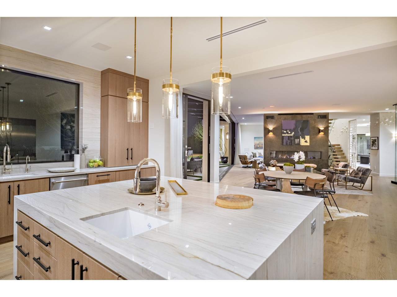 Premier Paradise Valley living with breathtaking Camelback Mountain views. This exceptional Forte Homes residence is ideally positioned in one of PVs most desirable locations and offers a rare blend of modern architecture, resort-style outdoor living, and elevated luxury finishes throughout. The main residence spans 6,509 sq ft and is complemented by a 575 sq ft detached guest house, creating a total of 6 bedrooms and 6.5 bathrooms. Designed with a desirable split floor plan, the home features an expansive great room with soaring ceilings and dramatic wood beam details in both the living and dining areas. Walls of glass seamlessly connect indoor and outdoor living spaces, perfect for entertaining. The chefs kitchen is equipped with Sub-Zero and Wolf appliances and opens to the great room, while additional interior highlights include a private office, a formal dining room with a stunning climate-controlled wine room, and a versatile flex room with an indoor/outdoor bar. High-end wall coverings throughout, along with Rocky Mountain Hardware, Visual Comfort lighting, Control4 smart-home automation, Taj Mahal quartz throughout, and luxury engineered hardware at every turn. The resort-style backyard is a true showpiece, framed by rows of gorgeous, mature palm trees and designed for both relaxation and recreation. Outdoor amenities include a large heated pool and spa with water features, multiple covered patios, fire features, lush landscaping, and a full-size pickleball court, creating a private oasis ideal for year-round enjoyment. The detached guest house offers full living accommodations, including a living area, kitchen, and bathroom-perfect for guests, extended family, or a private retreat. Additional features include a gated driveway, four-car garage with 12 ceilings, premier neighborhood setting, and close proximity to top-rated schools. A rare opportunity to own a refined, move-in-ready luxury estate in the heart of Paradise Valley.
