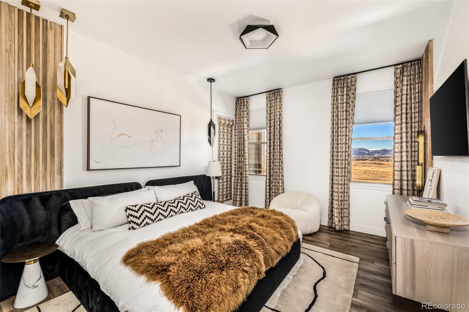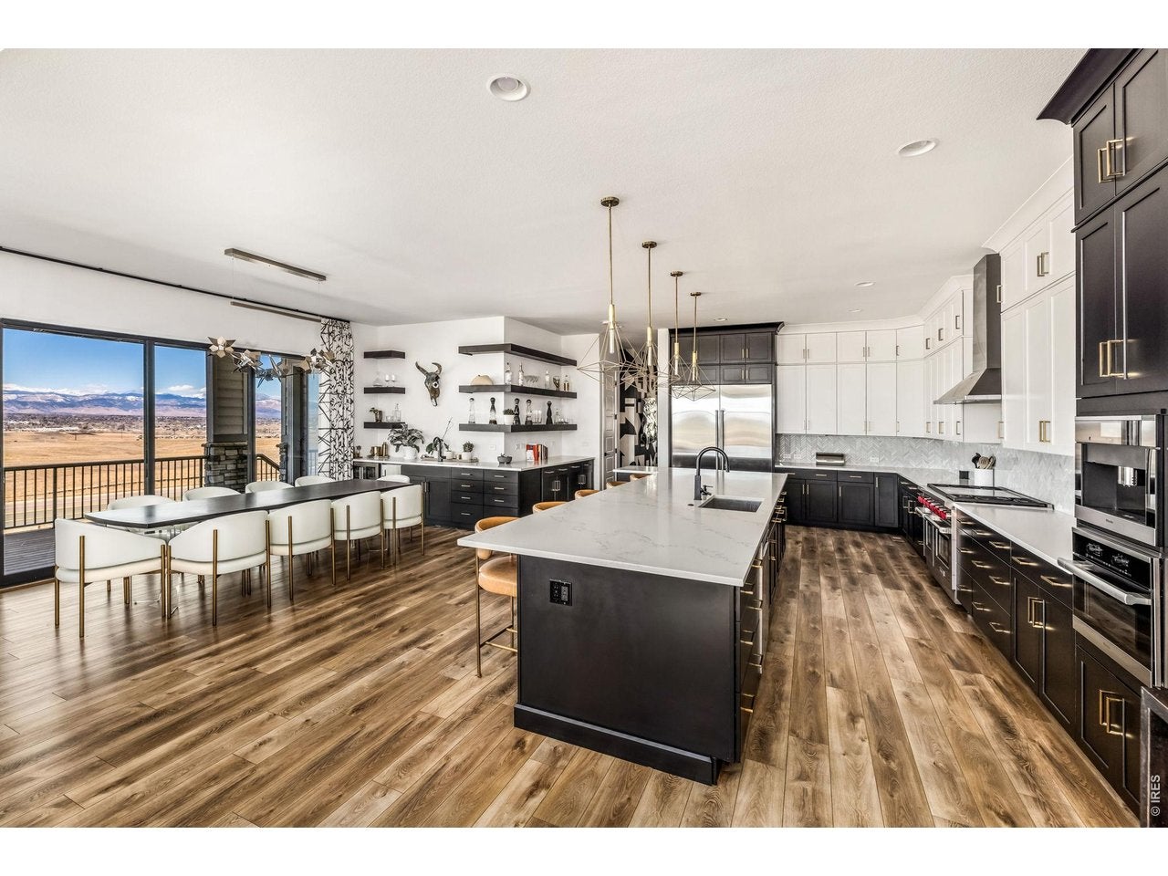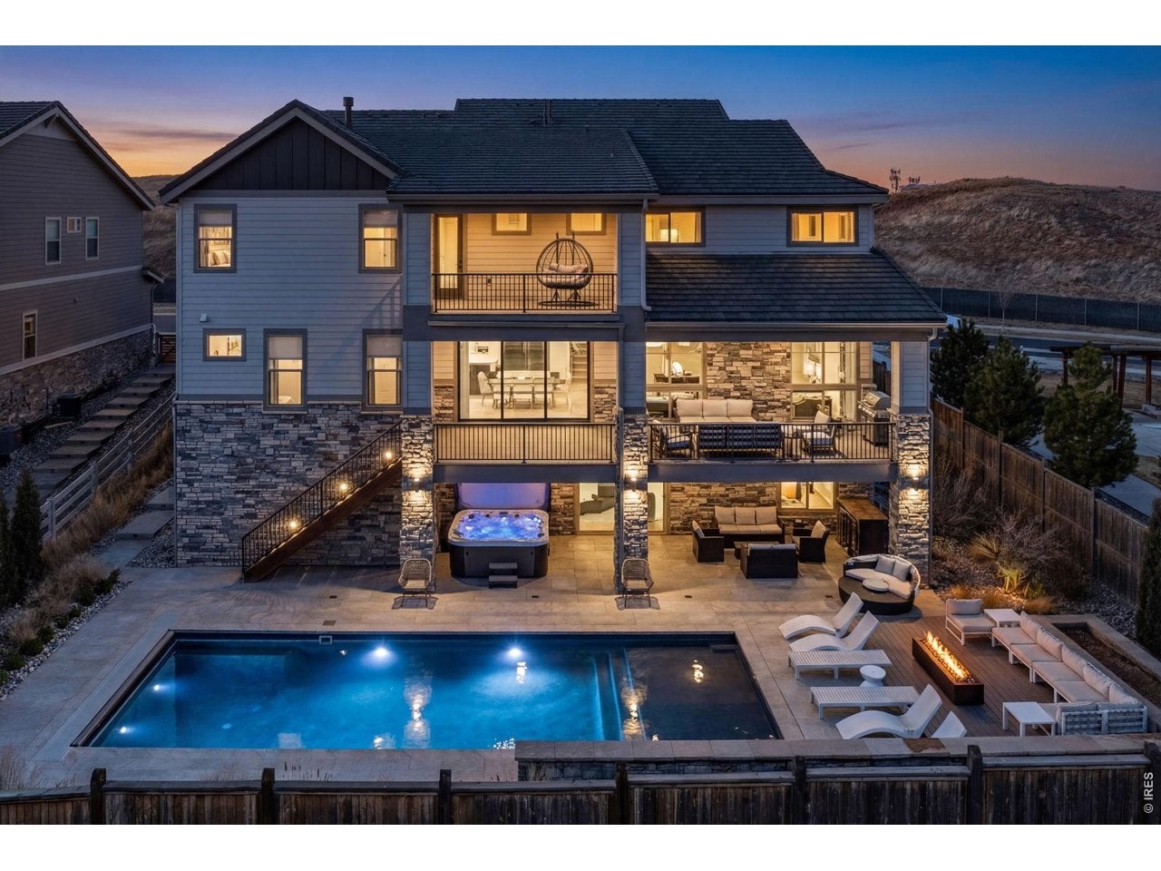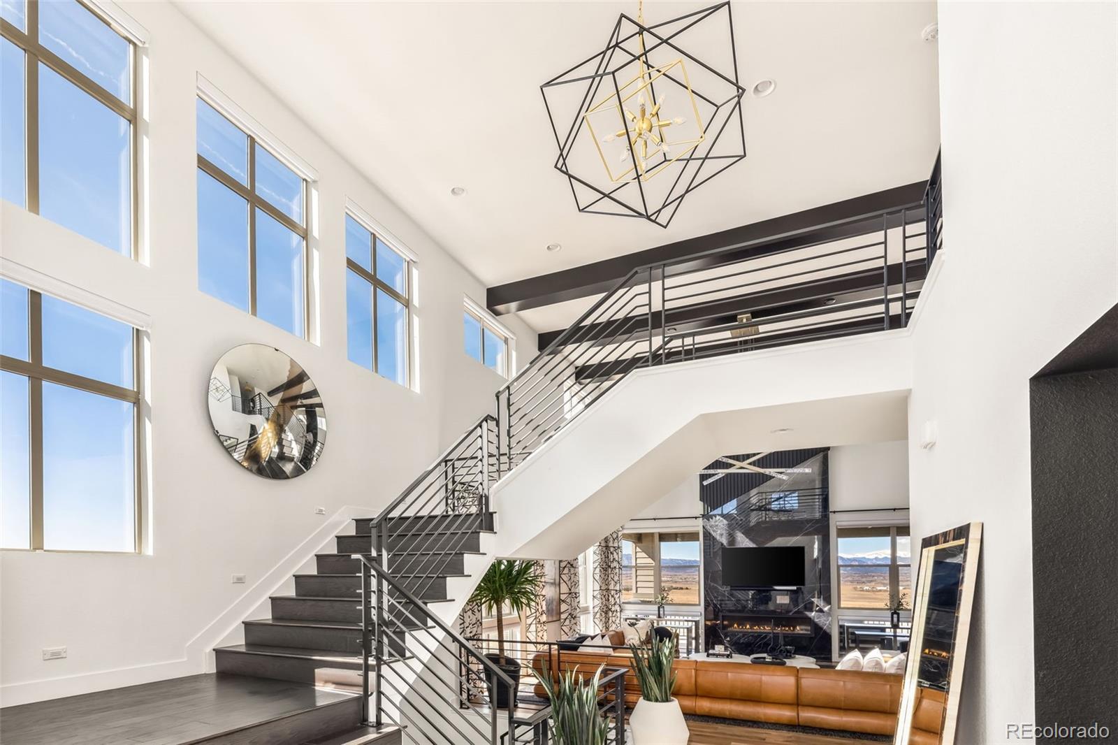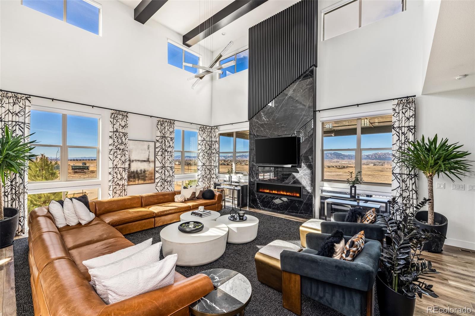 Welcome to 15325 King Ct, an exceptional luxury residence in the highly sought-after Anthem community, offering 7 bedrooms, 7 bathrooms, & a 3-car garage with breathtaking Front Range mountain views & a premier lot siding to a park. Designed for both elegance & innovation, the home features whole-home Cat6 wiring, surround sound, remote blinds, & a tankless water heater. The dramatic great room showcases soaring ceilings & a Cosmo gas fireplace wrapped in black marble, framed by expansive windows capturing Colorado views. The chefs kitchen is equally impressive with a Wolf gas range, Miele built-in coffee system, Miele microwave, walk-in pantry, quartz countertops, marble backsplash, & oversized contrasting island. A sophisticated wet bar with beverage fridge, sink, & custom floating shelves makes entertaining effortless. A private glass-enclosed office features soundproofing & an imported moss wall, creating a striking workspace. The main-floor mother-in-law suite offers a wood slab accent wall, built-in dresser, private 3/4 bath, & direct deck access with mountain views. The mudroom includes built-ins, designer wallpaper, custom Roman shades, & walk-in closet. Upstairs, the primary retreat features tray ceiling, custom wallpaper, Cosmo fireplace, private covered deck with mountain views, & spa-inspired 5-piece bath with chandelier-lit water closet, wet room with freestanding tub & oversized shower, & walk-in closet. 3 additional bedrooms each include private ensuite baths, plus upstairs laundry. The finished basement provides a bedroom, gym, & flex space with wet bar with wine/beverage fridge, sink, & dishwasher, with walk-out backyard access. Outside, enjoy resort-style living with heated saltwater pool, custom gas firepit, natural gas line, & multiple outdoor spaces overlooking the mountains. A rare opportunity to own a fully integrated luxury home in Anthem combining design, technology, & Colorado views.