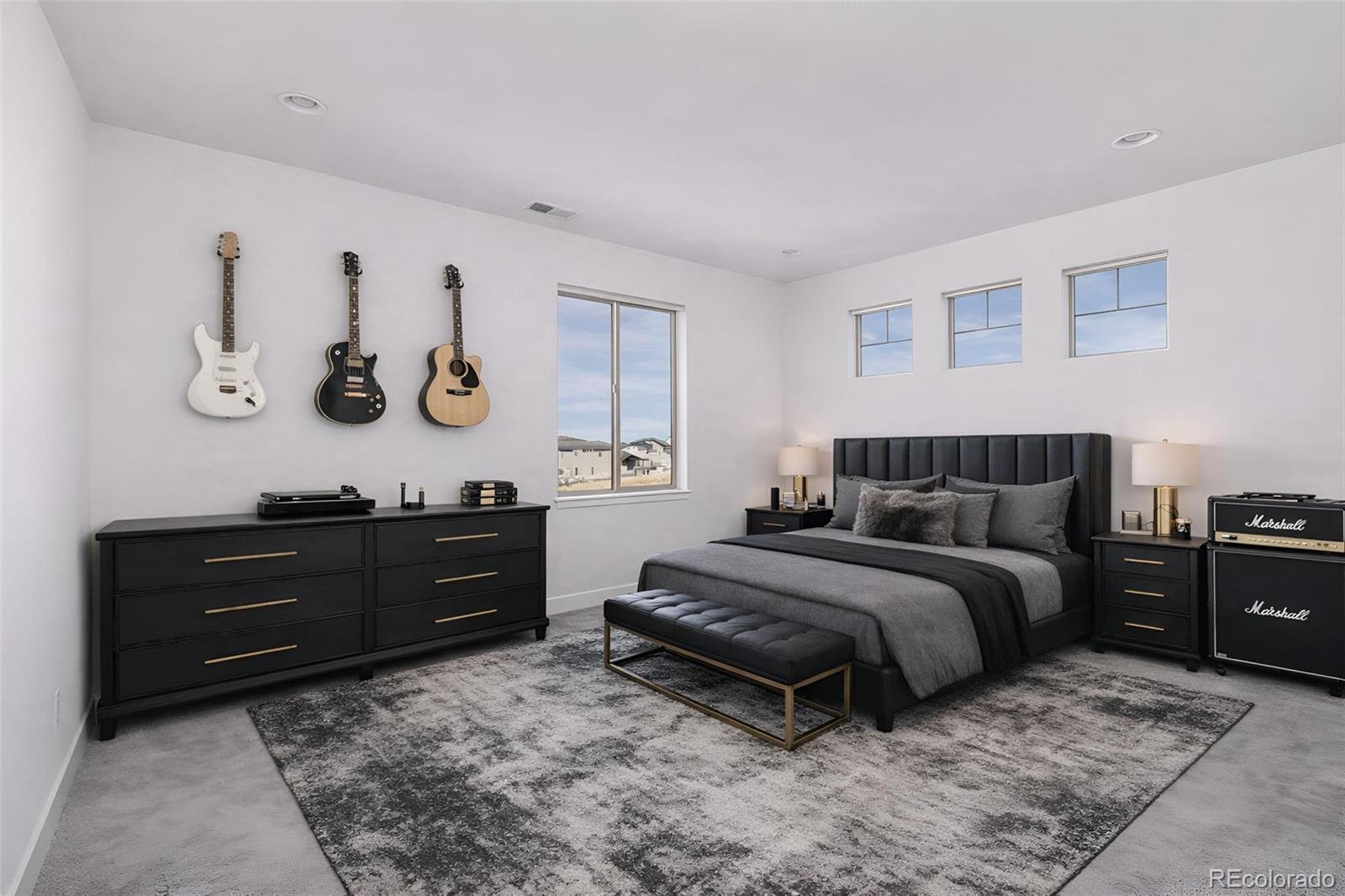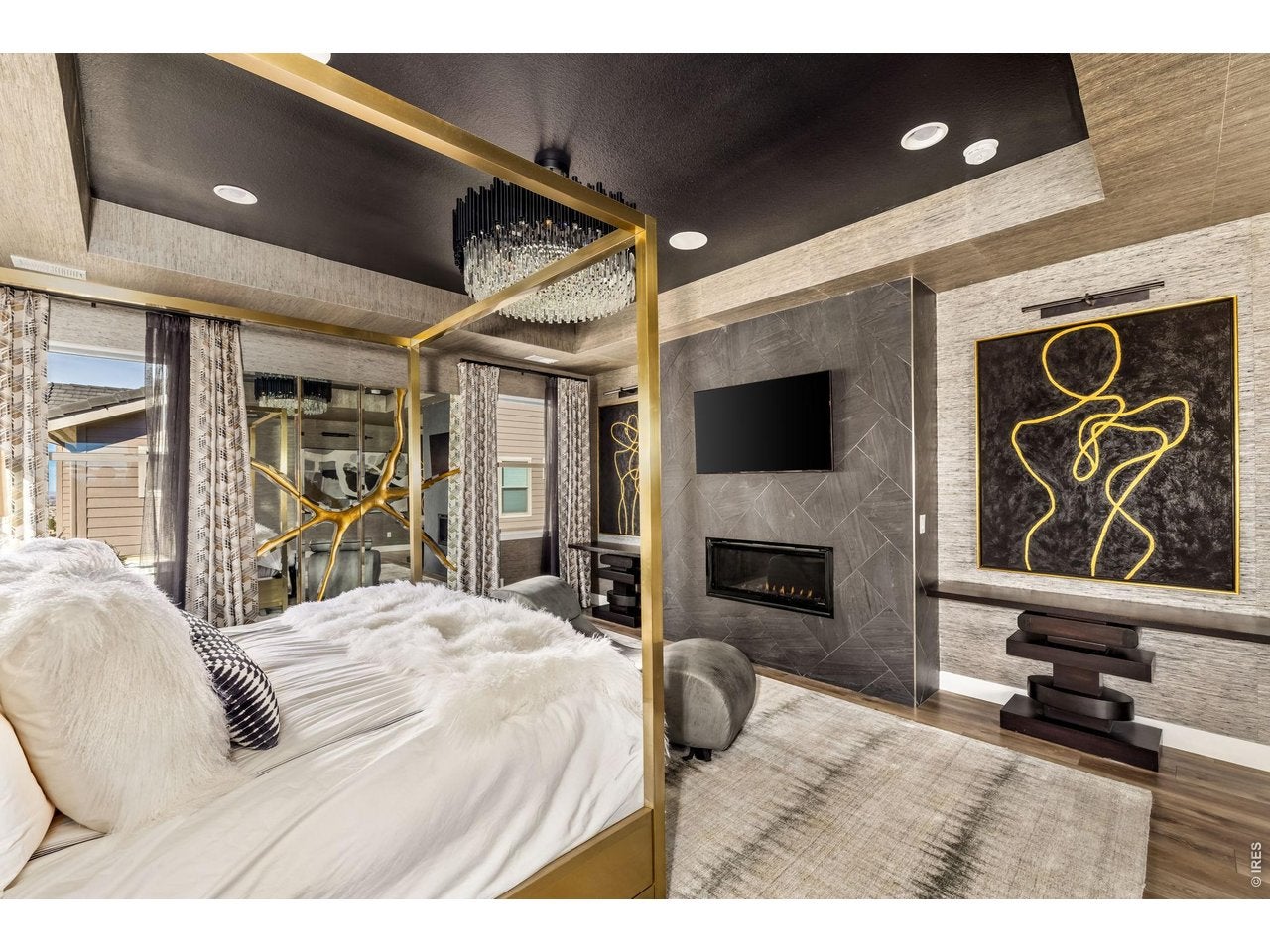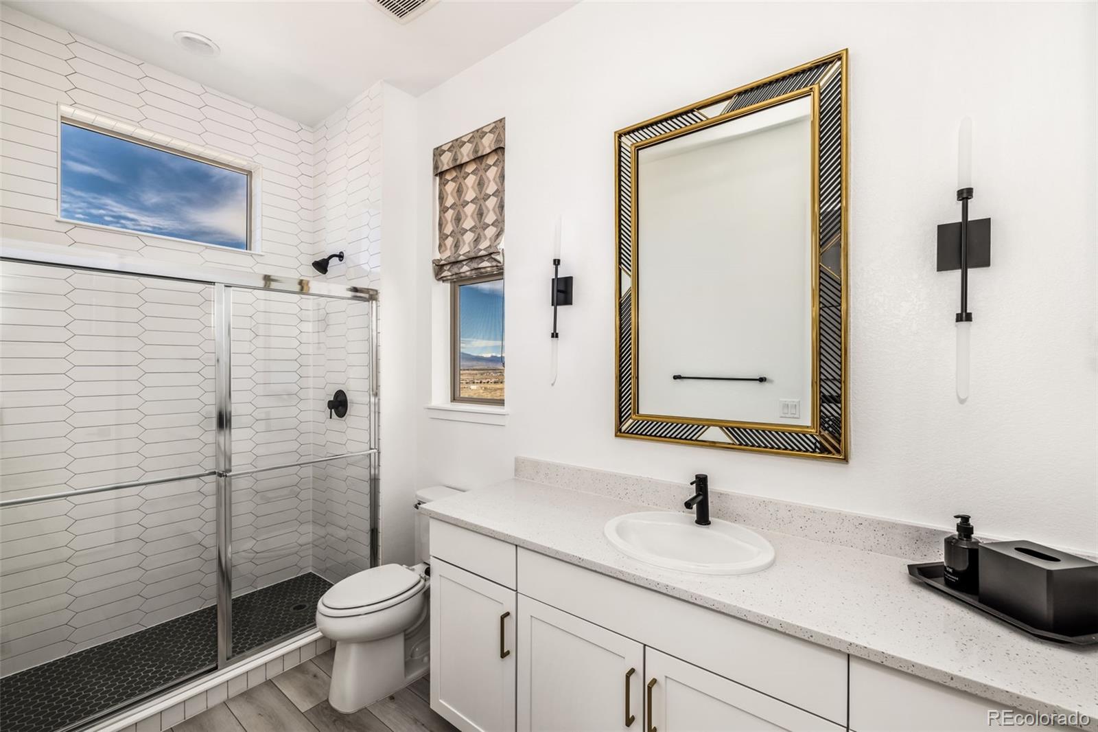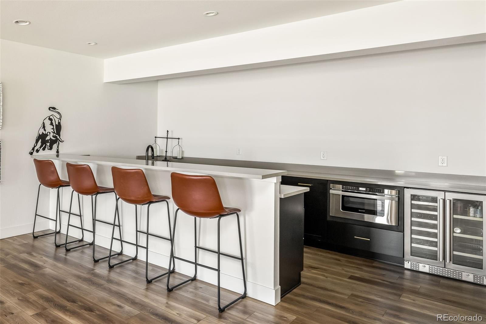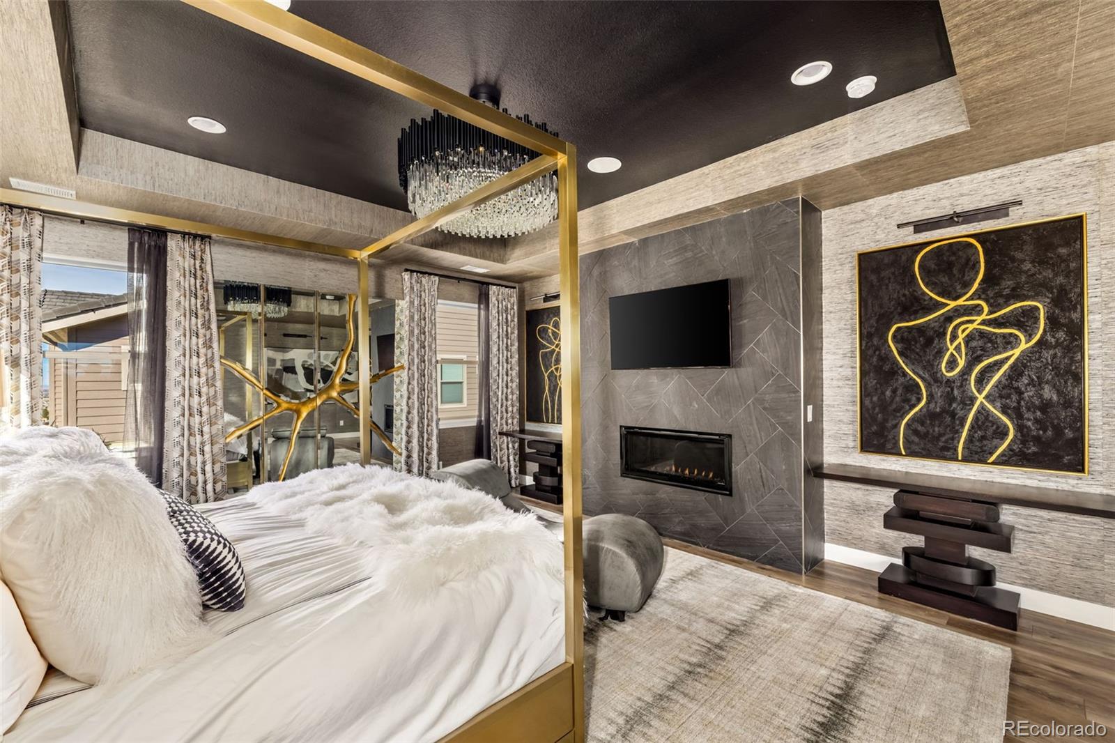 Welcome to 15325 King Ct, an exceptional luxury residence in the highly sought-after Anthem community, offering 7 bedrooms, 7 bathrooms, & a 3-car garage with breathtaking Front Range mountain views & a premier lot siding to a park. Designed for both elegance & innovation, the home features whole-home Cat6 wiring, surround sound, remote blinds, & a tankless water heater. The dramatic great room showcases soaring ceilings & a Cosmo gas fireplace wrapped in black marble, framed by expansive windows capturing Colorado views. The chefs kitchen is equally impressive with a Wolf gas range, Miele built-in coffee system, Miele microwave, walk-in pantry, quartz countertops, marble backsplash, & oversized contrasting island. A sophisticated wet bar with beverage fridge, sink, & custom floating shelves makes entertaining effortless. A private glass-enclosed office features soundproofing & an imported moss wall, creating a striking workspace. The main-floor mother-in-law suite offers a wood slab accent wall, built-in dresser, private 3/4 bath, & direct deck access with mountain views. The mudroom includes built-ins, designer wallpaper, custom Roman shades, & walk-in closet. Upstairs, the primary retreat features tray ceiling, custom wallpaper, Cosmo fireplace, private covered deck with mountain views, & spa-inspired 5-piece bath with chandelier-lit water closet, wet room with freestanding tub & oversized shower, & walk-in closet. 3 additional bedrooms each include private ensuite baths, plus upstairs laundry. The finished basement provides a bedroom, gym, & flex space with wet bar with wine/beverage fridge, sink, & dishwasher, with walk-out backyard access. Outside, enjoy resort-style living with heated saltwater pool, custom gas firepit, natural gas line, & multiple outdoor spaces overlooking the mountains. A rare opportunity to own a fully integrated luxury home in Anthem combining design, technology, & Colorado views.
