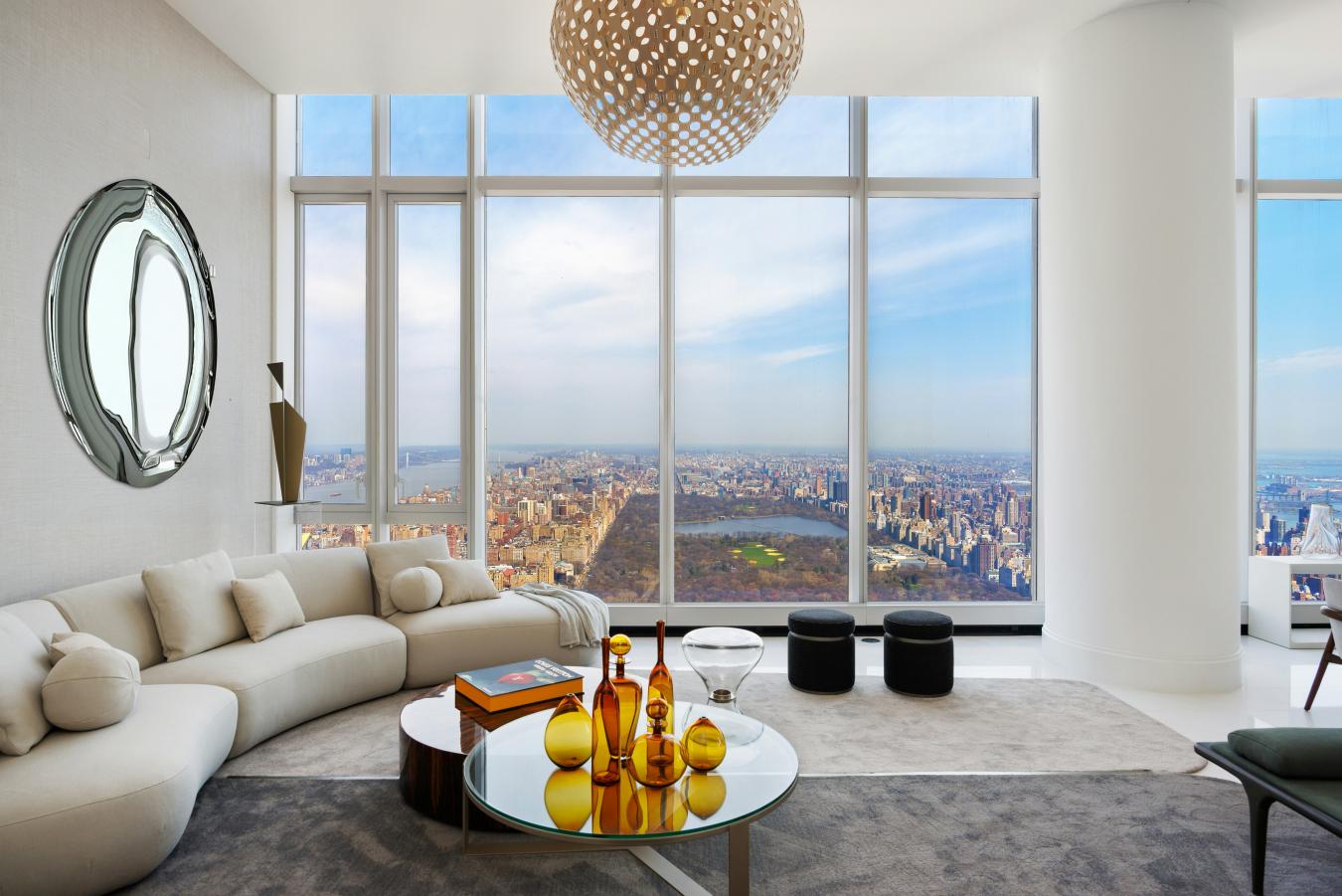 UNOBSTRUCTED views and EXTRA high ceilings. This jaw- dropping half-floor residence floats directly over Central Park, soaring 1,000 feet above New York City with Park views, unobstructed by any buildings. Welcome to Apartment 97E at Central Park Tower, a truly exquisite 4-bedroom, 4.