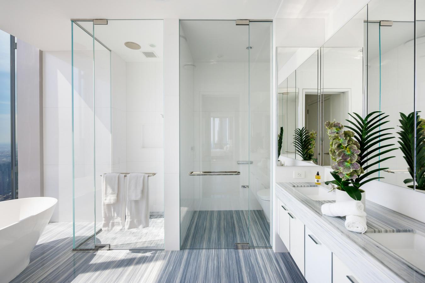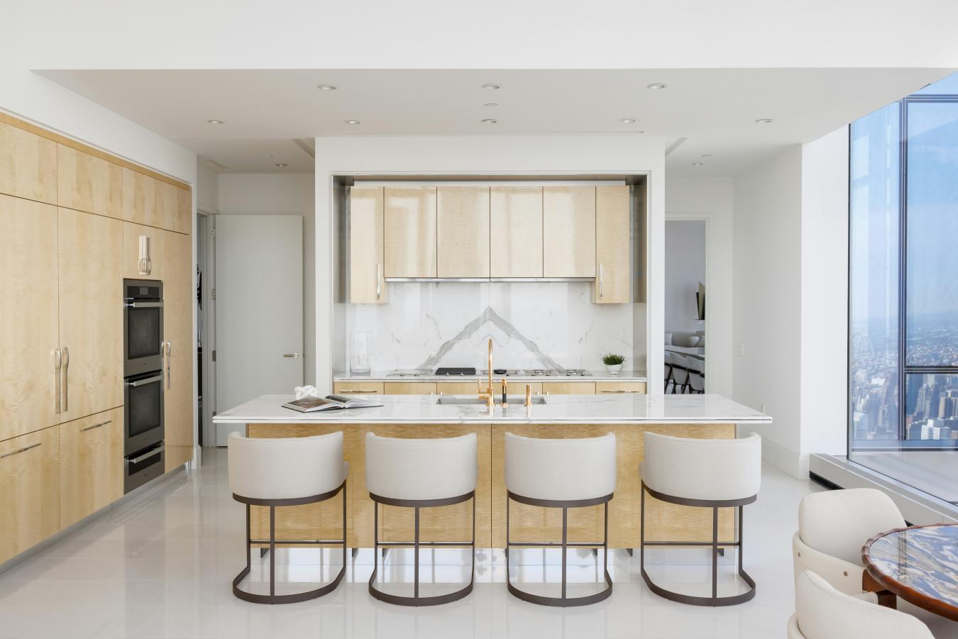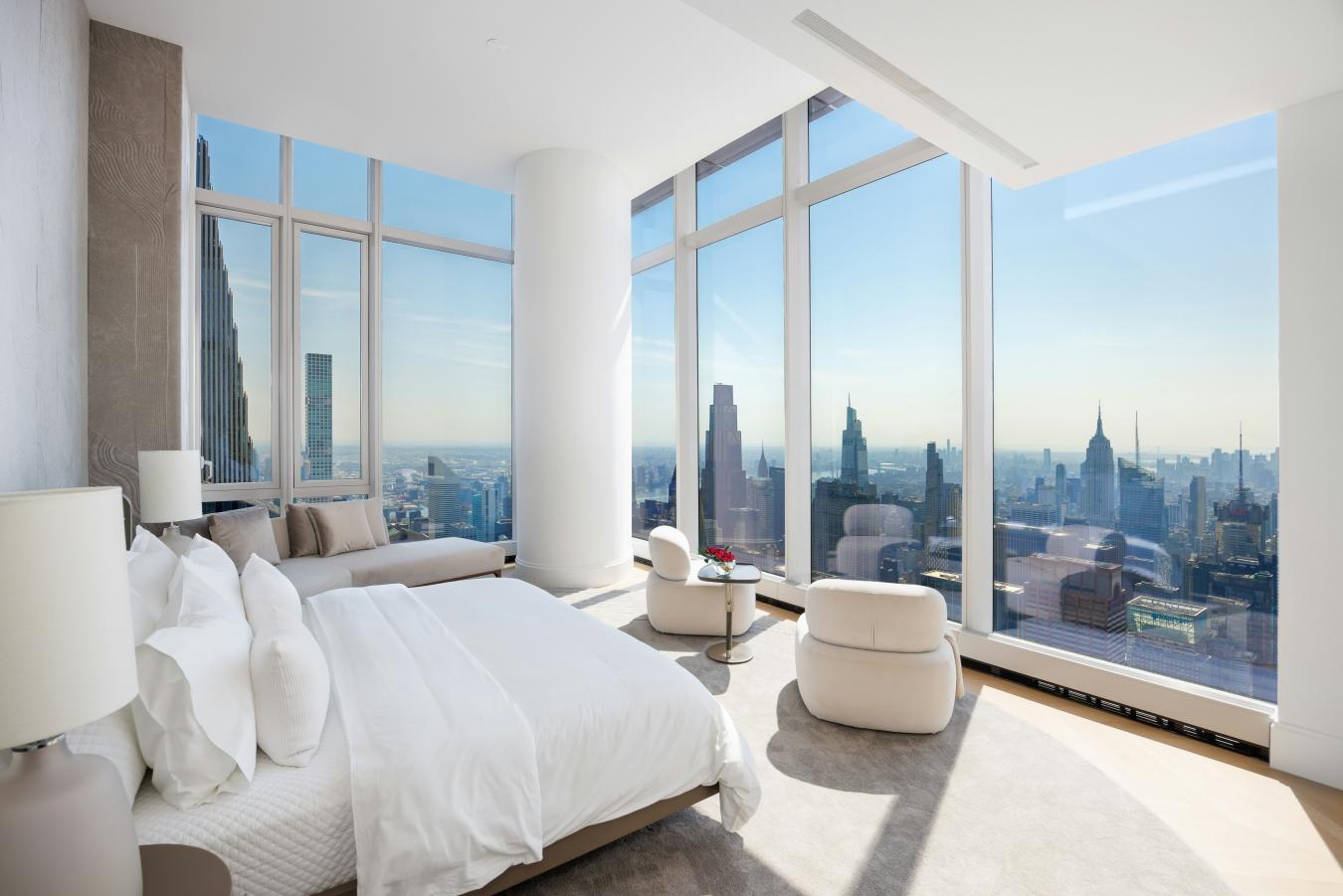 UNOBSTRUCTED views and EXTRA high ceilings. This jaw- dropping half-floor residence floats directly over Central Park, soaring 1,000 feet above New York City with Park views, unobstructed by any buildings. Welcome to Apartment 97E at Central Park Tower, a truly exquisite 4-bedroom, 4.5 bathroom, over 4250 square foot home, with 3 corner views and magnificent 136 ceiling heights, the highest in the building. This gorgeous residence is the epitome of ultra luxury, featuring floor-to-ceiling, sound-insulated glass walls that fill each space with natural light while showcasing expansive views in every direction. Enter via a formal entry foyer, where you are immediately captivated by the sweeping vistas overlooking Central Park and expanding to both the Hudson and East Rivers. The expansive 376" X 25" corner living and dining room is grand and gracious, leaving enough room for three separate living spaces and a large formal dining table. There is also a jewel box powder room off the foyer, and a walk-in coat closet. Conveniently adjacent to the living/dining room is the North and East corner, open chefs kitchen/great room, thoughtfully designed for both form and function. The kitchen features stunning custom cabinetry by Smallbone of Devizes, elegant stone slab counters, fully integrated Miele appliances, and an under-mount sink. The bedroom wing is appropriately separate, with 4 large bedrooms. Privately tucked away on the South East corner of the home is the primary bedroom suite, truly a tranquil retreat. Imagine waking up every morning to open East views and iconic South views of the Empire State Building, all the way to the Statue of Liberty! The primary suite also features a luxurious five-fixture bathroom and 2 extremely generous walk-in closets. There are 3 additional well-proportioned bedrooms, each with an en-suite bathroom and equally impressive views, a side by side full sized washer/dryer, and a state of the art HVAC system. Staging with custom made furniture by Artefacto and wallpaper by Wall Boutique/ Élitis. Rising along Manhattans prestigious Billionaires Row, Central Park Tower holds the distinction of being the tallest residential building in the world. Residents enjoy white-glove service, including 24-hour doormen and concierge service, as well as access to the exclusive Central Park Club-a 50,000-square-foot private amenity collection spanning three levels. Highlights include a grand ballroom, restaurant, lounge, wine cellar, and cigar room on the 100th floor; a 63-foot indoor saltwater pool, fitness center, spa, squash court, and half basketball court on the 16th floor; and a landscaped terrace on the 14th floor featuring a second 60-foot outdoor pool, sun deck, and private cabanas. A 40 square foot storage bin transfers with this apartment. Please note that there is a working capital contribution equal to 2 months of common charges paid by the purchaser. Please call for a private appointment.