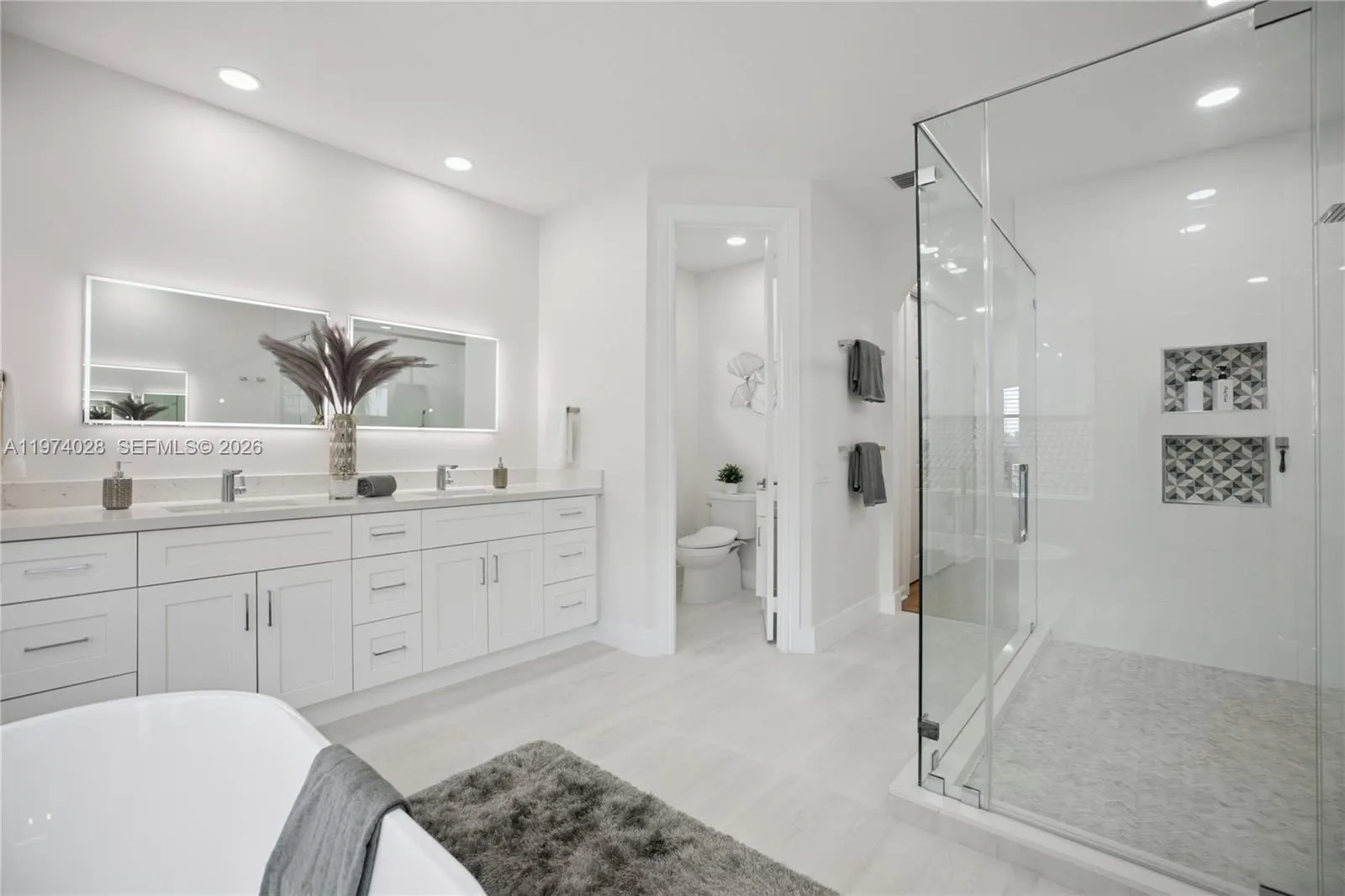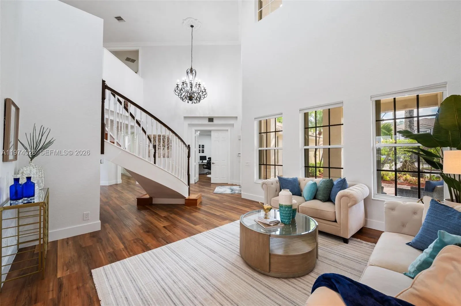 A Weston Hills Country Club Masterpiece in Victoria Isle. As you enter this home through Double French Doors, you will be welcomed into Refined and Sophisticated Living. These Expansive living spaces (over 5,300 sq ft under air) are both Luxurious for Entertaining & Comfortable for Everyday Living. A Grand, Floating Staircase greets you at the Foyer, which leads to the Private Master Retreat. The Childrens Wing features its own Staircase. Natural Light and Fine Finishes fill Every Room. The Distinct Architectural Design easily functions as a Multi-Generational Home or a Large Family Home. ADDITIONAL ROOMS include A Designated Den, A 20x14 Game/Play/Media Room, a 19x13 Additional Room/Library/Office w/ Built-Ins that stay, and Guest Quarters with a 14x12 Bedroom (currently used as a gym), an en suite Bath, its own entrance to the Exterior Circular Drive, a separate 1-car garage with a private entrance from the Guest Quarters. When you awake in your Master Retreat, enjoy your Morning Coffee from your Covered Balcony (26x12 ft). Start your day overlooking your Serene, Sweeping Lake Views & your Resort-Style Pool, Spa & Waterfall. Magnificent Sunsets will captivate you at the end of your day. Ambiance abounds! Renovated in 2023 in Todays Impressive Contemporary Style, with Fine Finishes and thoughtful attention to detail. A Feature Sheet is attached. Weston Hills Country Club is a Desirable, Upscale Community within Weston known for its excellent security and A-rated schools.