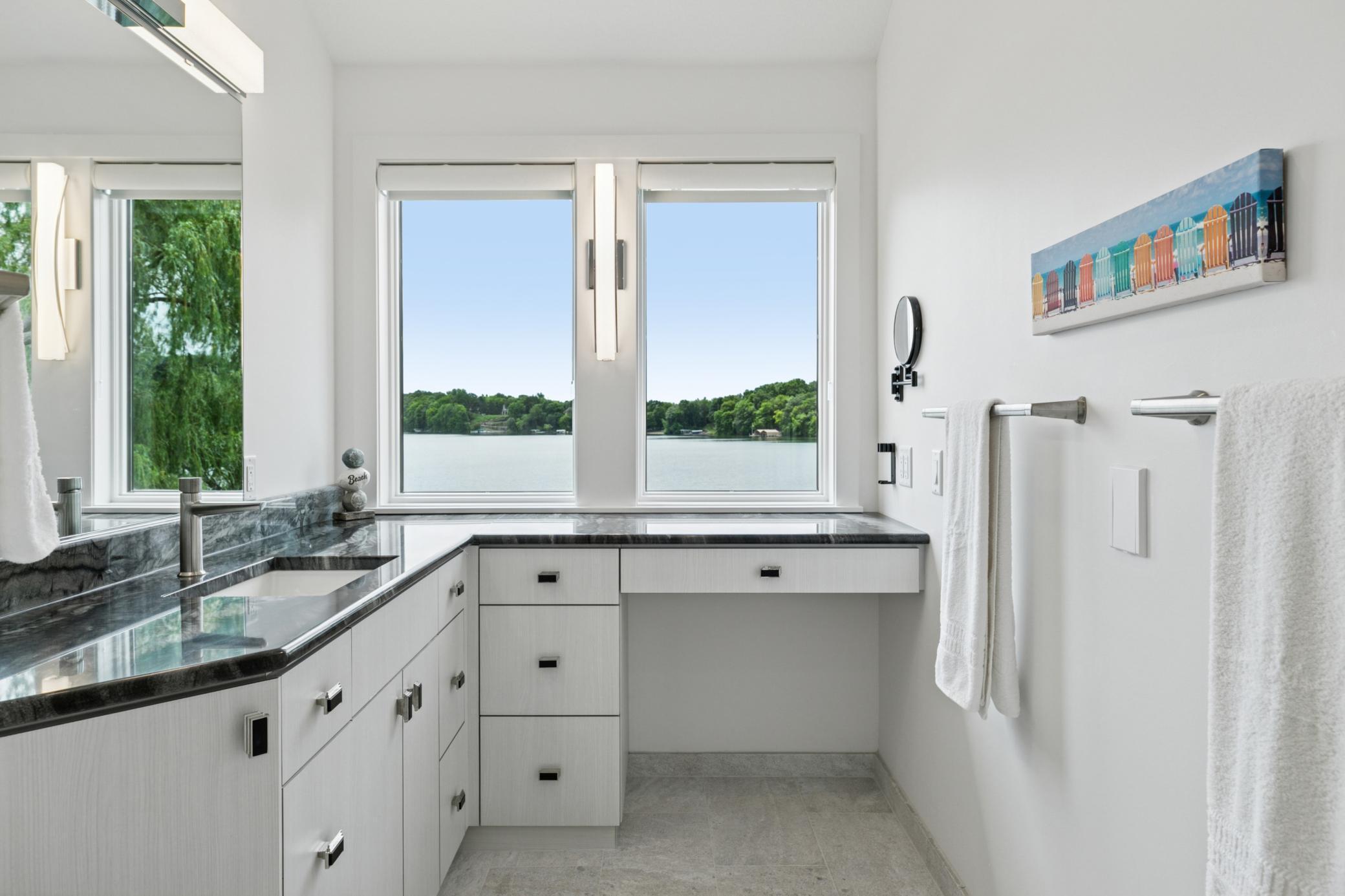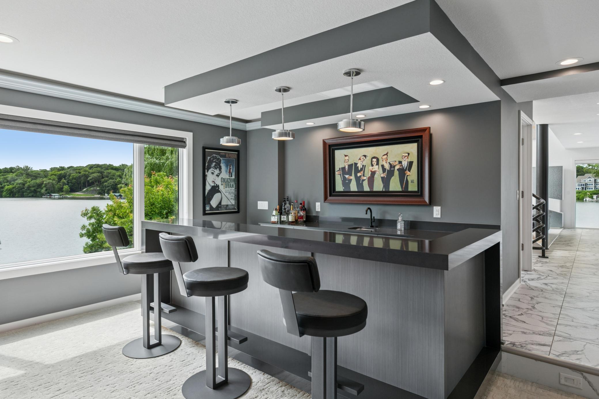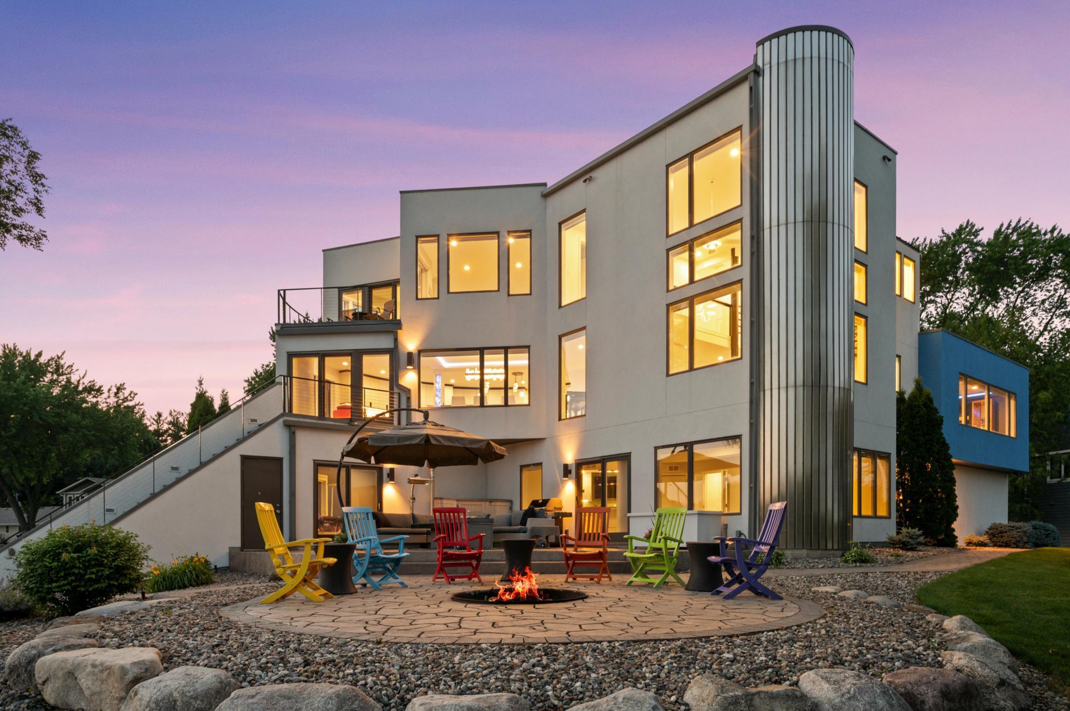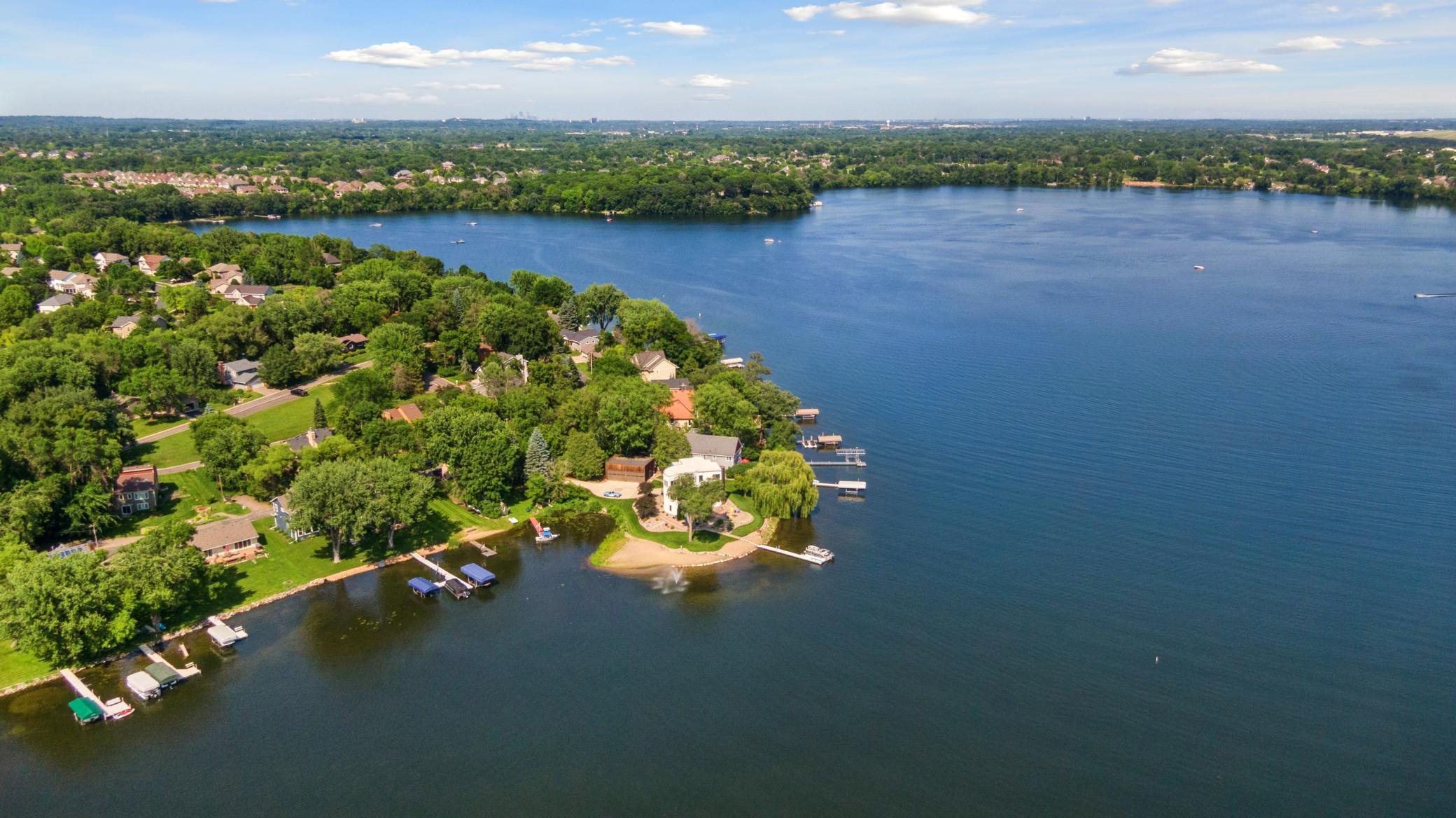 Come discover an exceptional lakeshore lifestyle on the coveted waters of Lake Riley. This is a rare opportunity to own a modern, turn-key ready, 2 story home that was thoughtfully rebuilt, renovated and expanded in 2024 by Boyer Building Corp., creating a stunning blend of contemporary design, natural light, and year-round livability. Set on a rare peninsula-style setting with approximately 300 feet of flat shoreline and a private sandy beach, the property offers panoramic views from virtually every room. This may be the best lakeshore on Lake Riley!The home features over 4,200 finished square feet with 4 bedrooms and 4 bathrooms, all situated on a beautifully landscaped .78-acre lot. The redesigned kitchen serves as the central gathering space, offering generous prep areas, high-end finishes, and seamless flow to lakeside living and entertaining spaces. Expansive windows, clean architectural lines, and multiple outdoor decks create a strong indoor-outdoor connection. Youll love all the upgraded extras like heated countertops and floors, ample lighting built into the counters and other areas of the home!Enjoy quiet mornings on the water, afternoons spent boating, swimming, or paddling, and evenings around lakeside fires. Relax while you sit on the newly landscaped (2025) sandy shoreline. With its privacy, modern amenities, and unbeatable setting just minutes away from the freeway, this is a rare opportunity to own a truly special Lake Riley retreat.