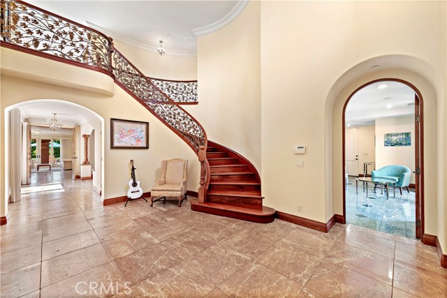 4060 Calle Isabella is a timeless Spanish Revival estate blending classic architecture with refined coastal living located behind the prestigious Cotton Point Estates gates. The exclusive double-gated enclave of Cotton Point at the southernmost tip of San Clemente is home to the historic Casa Pacifica. Residents enjoy a private beach trail with sweeping ocean vistas over world-renowned surf breaks and exclusive beach access through neighboring Cypress Shores. The quiet cul de sac street is home to only 16 estates to ensure peace and privacy. Step inside to admire hand-hewn beams, custom wrought iron, arched doorways, and artisan finishes create warmth and character throughout. Stucco walls, soft Mediterranean tones, and a red clay tile roof frame charming courtyards, a tranquil fountain, covered loggia, and lush landscaped grounds. The flexible multi-generational floor plan offers formal living and dining rooms with fireplace, two main-level bedrooms with two full baths, powder room, casual living space, and an expansive kitchen designed for gathering and entertaining. Upstairs features a bonus room, private office, laundry, two secondary bedrooms connected by a Hollywood bath, and a serene primary suite with ocean-facing deck capturing sea breezes and peek ocean views overlooking the impressive 18' x 45' pool and yard.Notable upgrades include mahogany pillars, radiant floor heating, Dutch doors, a dumbwaiter, fire suppression system, Loewen windows, Baldwin hardware, Blue Bahia and Blue Macaubas quartzite, Rosa del Monte marble, Honduran mahogany flooring, and Spanish Roja Alicante tumbled marble. A three-car garage and deep driveway provide ample parking. Just a few minute walk or bike ride to world class surfing at Trestles beach and easy access to Southbound and Northbound on ramps. Don't miss this rare opportunity to experience one of Southern California's most prestigious coastal communities.