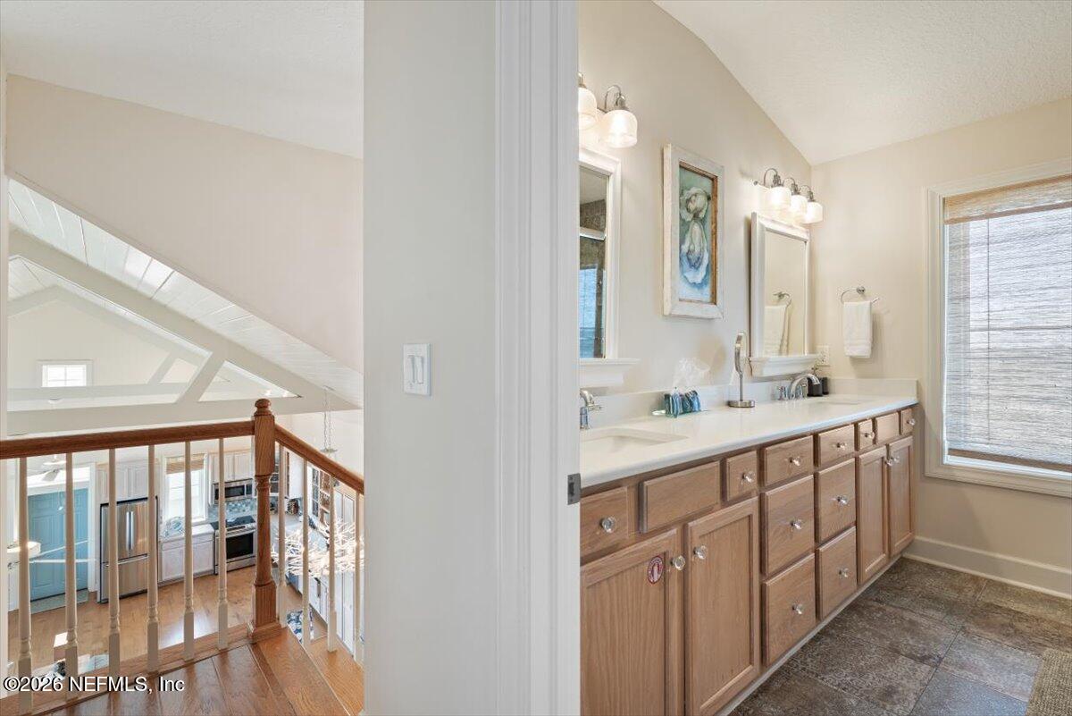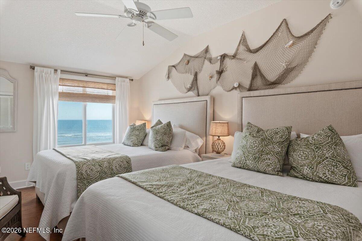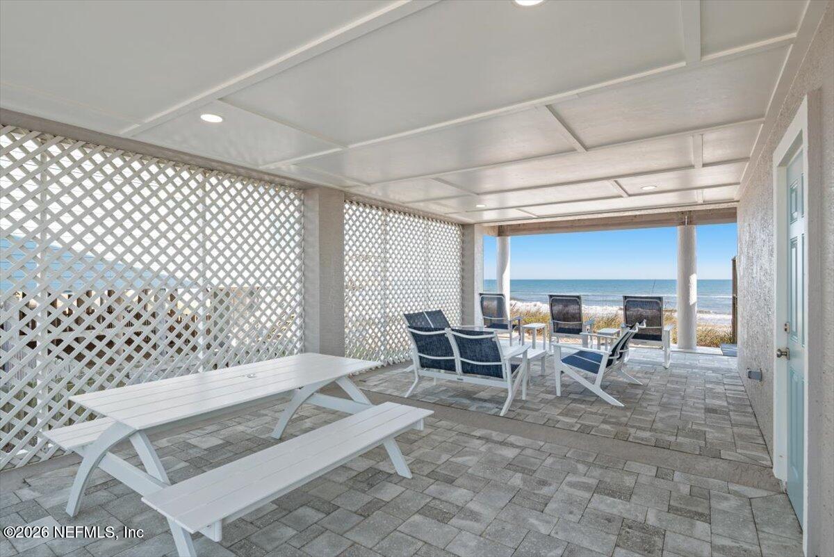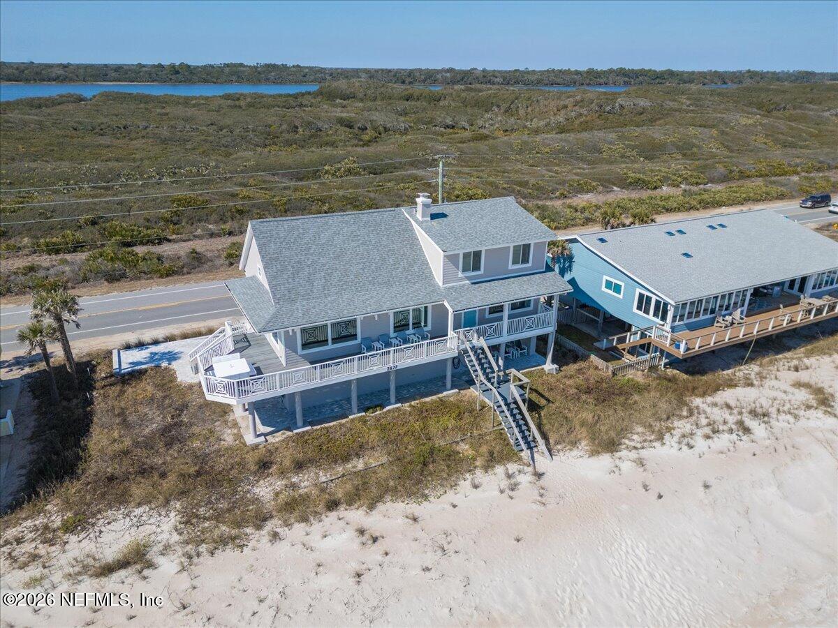 Wake up to breathtaking sunrises and the soothing sound of the Atlantic in this beautifully curated oceanfront retreat. Oceanfront elegance meets exceptional construction at 2677 S Ponte Vedra Blvd. Built by Gary McCumber and meticulously upgraded, the home has first 2 levels of concrete construction and is supported by 30 auger-cast pilings w/ continuous grade beams for superior strength. Offering 2,253 SF, the residence was fully remodeled in 2020 with additional 2024 enhancements including all hurricane-impact Anderson windows, updated Hardie siding, new exterior doors, marine-grade lighting, fresh interior/exterior paint, and upgraded outdoor staircase. Additional improvements include new garage doors, oversized water softener, 2022 water heater, LED lighting, Lutron dimmers, and designer window coverings. Can be sold fully furnished and equipped, this smart-enabled coastal retreat is truly turnkey. Excellent vacation rental history with all 5-star reviews