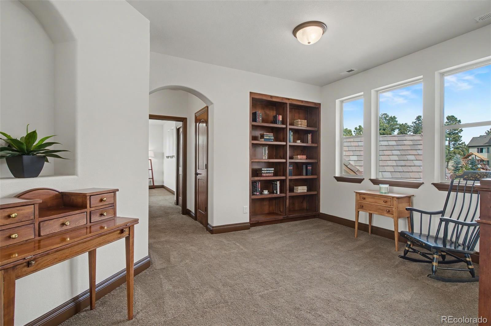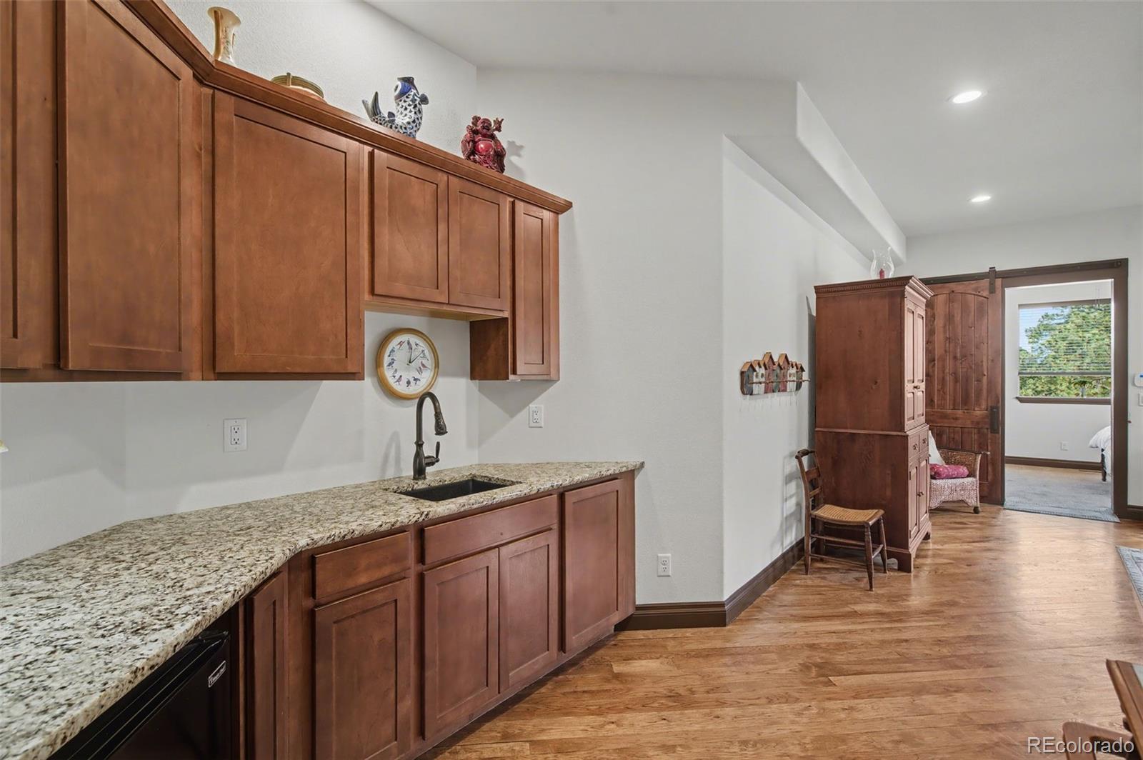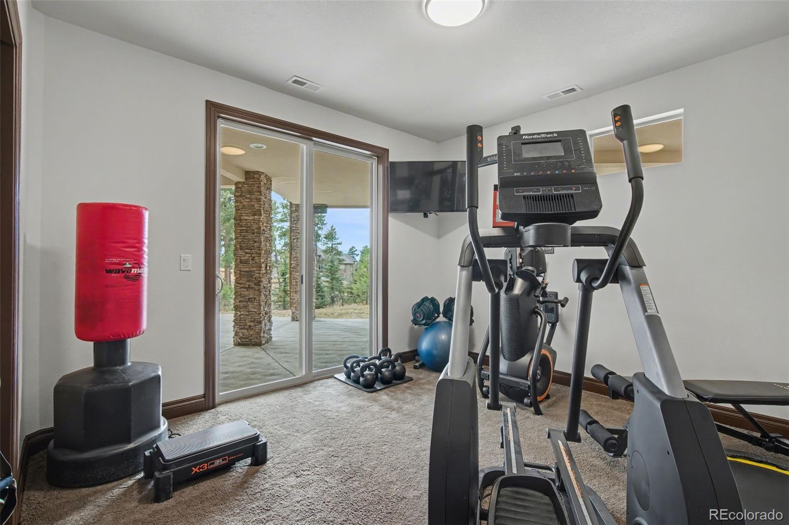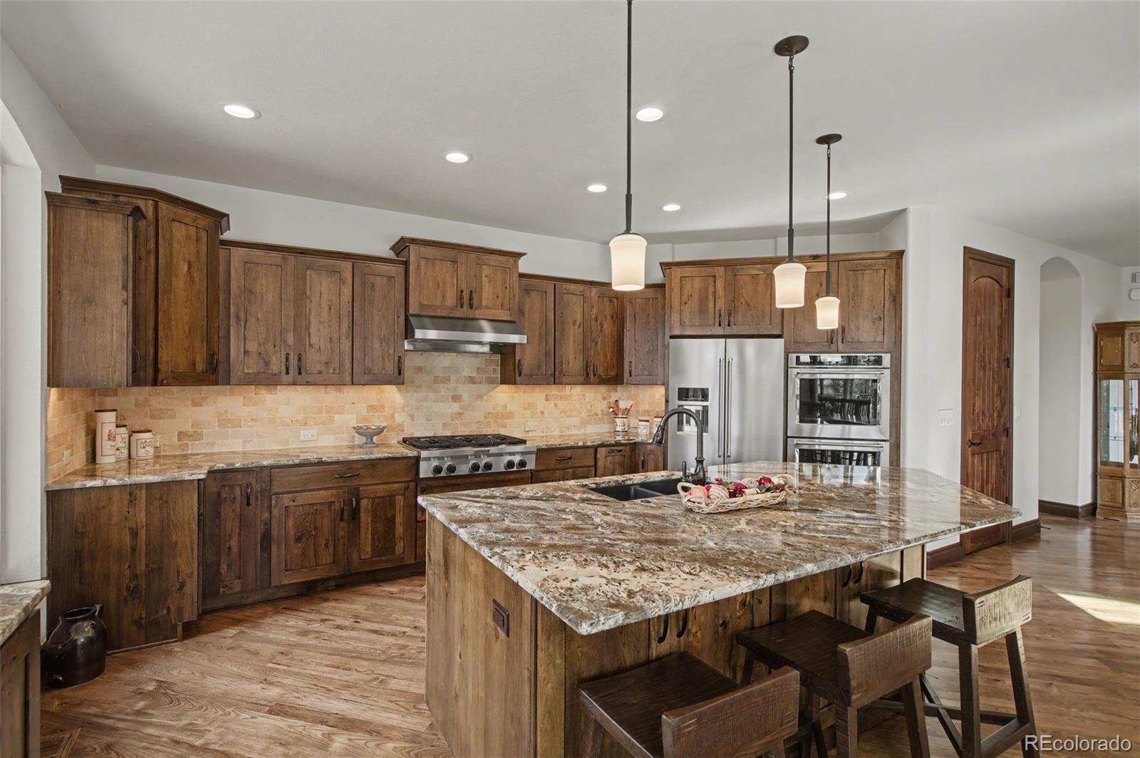 Welcome to this stunning Cathedral Pines home, an exemplary custom residence featuring a 5-car garage that artfully combines luxury, craftsmanship, and a quintessential Colorado flair. As you enter, you are greeted by breathtaking framed views of Pikes Peak, complemented by a vaulted great room that showcases a stacked stone fireplace. The beautiful shiplap detailing and hickory floors establish an atmosphere of refined quality throughout. The gourmet kitchen features a substantial island adorned with a single slab of granite that boasts seamless veining. Equipped with double ovens and a 6-burner gas range, designed for functionality and style. Expansive 8-foot sliding doors illuminate the dining area and lead to an outdoor kitchen on a covered deck, complete with a fireplaceperfect for enjoying dining and observing sunsets around the firepit. On the main level, the primary suite serves as a private retreat, including a fireplace and a spa-style bath with a steam shower, soaking tub, and heated floors, along with a spacious walk-in closet. Additionally, this level includes a dedicated study and a large guest suite offering not only a bedroom, but a living room, wet bar, bathroom with heated floors, and a private deck. The walkout basement is tailored for entertaining, showcasing a family room and rec room that share a dual-sided fireplace. An inviting game area, a generous wet bar complete w/ a full-sized refrigerator and dishwasher, a theater area, and a temp-controlled wine cellar elevates this space. Also includes a bedroom and full bath. Venture upstairs to discover more of the stunning views from the loft and two bedrooms, & full bath. Addl highlights of this home are 3 furnaces, central air, a humidifier, a whole-house water filtration system, built-in speakers, Control 4, and dedicated storage. The neighborhood has a trail system ideal for hiking and biking, adjacent to Black Forest Regional Park. This residence is the very best of Colorado living!