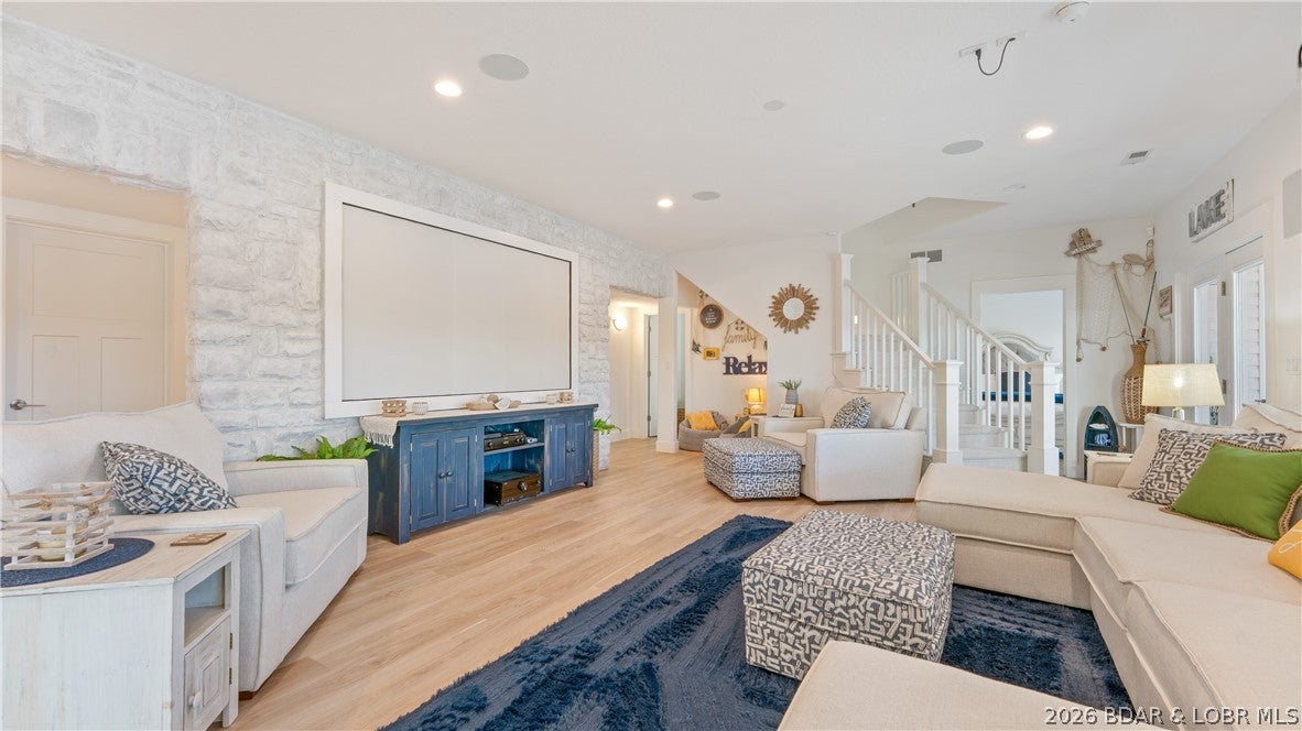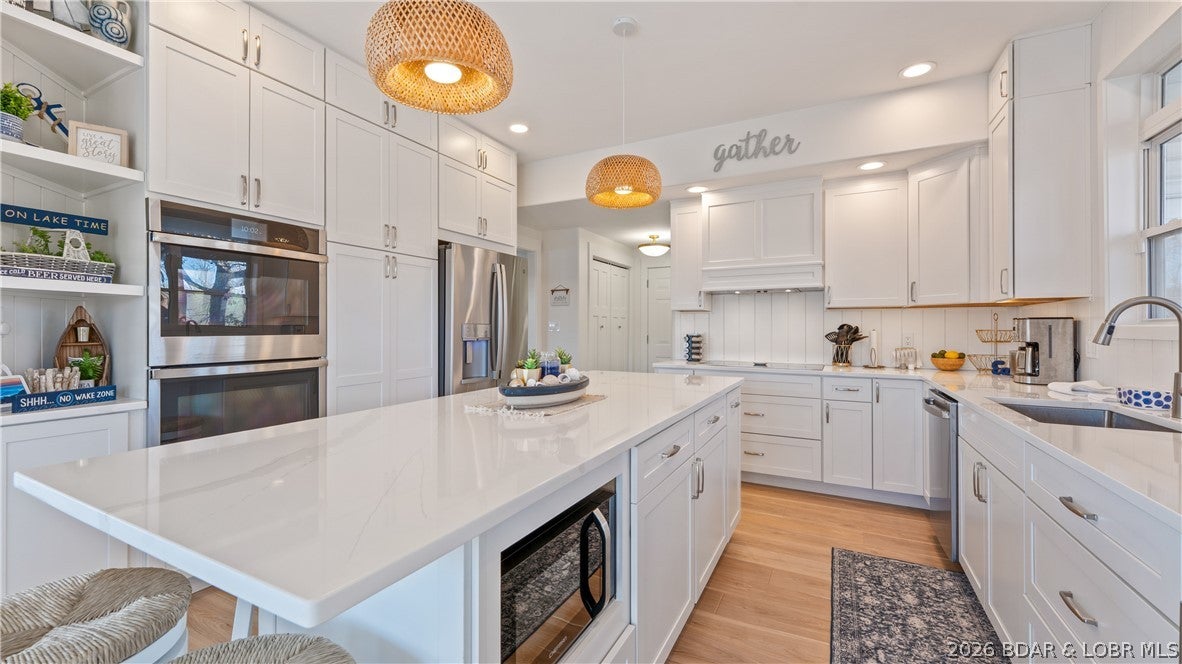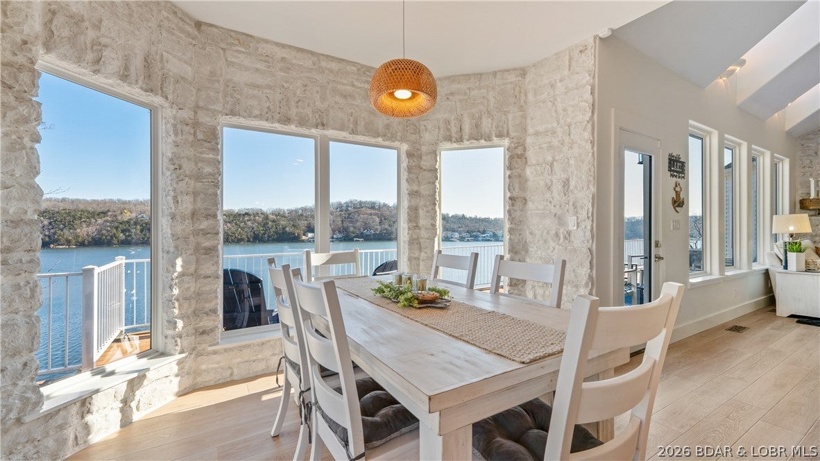 Stunning lakefront retreat on Big Island at Lake of the Ozarks! This fully renovated showstopper sits on approx. 2 acres with 204 ft of shoreline, has a detached 4-car garage, and a private 2 well dock with 3 PWC spaces and swim platform. Offering 5,114 sq ft, 8 bedrooms, and 4.5 baths, the home features main level living, vaulted ceilings, and expansive lakeside windows that fill the space with natural light. The main level master bedroom has its own private en-suite with walk-in in closet. The gorgeous kitchen stands out with stainless-steel appliances, double oven, quartz countertops, new cabinetry, and striking stone accents. Every detail has been updatedflooring, trim, doors, lighting, fixtures, and more. The lower level screened in patio is perfect for those summer afternoons. Outside, enjoy a beautifully transformed landscape complete with a waterfall made of natural rock, firepit, and golf cart path leading to your dock. Brand new roofs have been installed on the home, garage, and dock as well as new siding on the front of the home and the entire detached garage. Breathtaking main-channel views complete this extraordinary lakefront package.