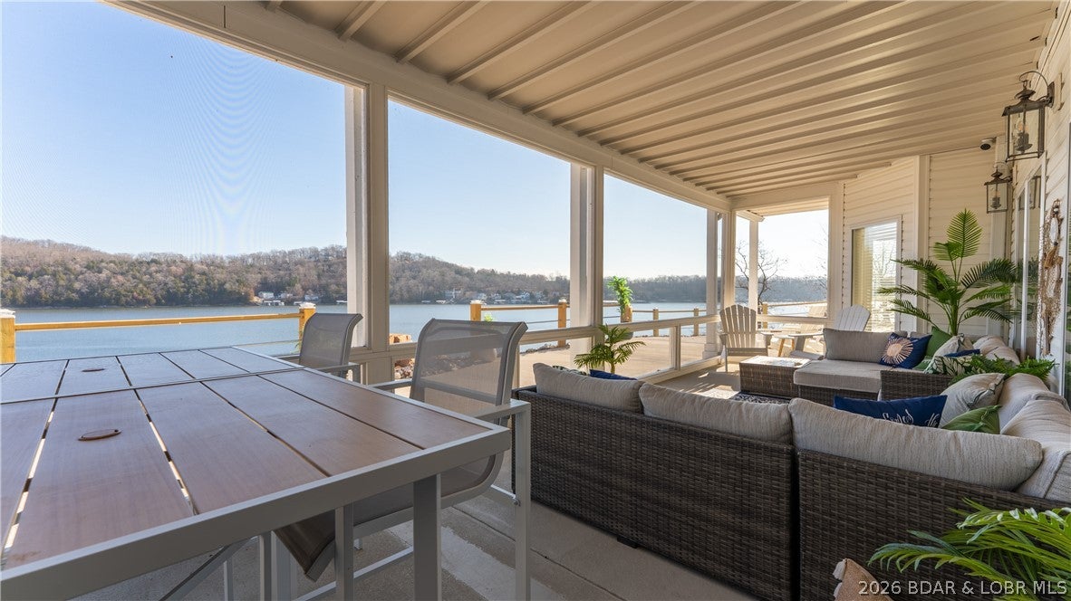 Stunning lakefront retreat on Big Island at Lake of the Ozarks! This fully renovated showstopper sits on approx. 2 acres with 204 ft of shoreline, has a detached 4-car garage, and a private 2 well dock with 3 PWC spaces and swim platform. Offering 5,114 sq ft, 8 bedrooms, and 4.