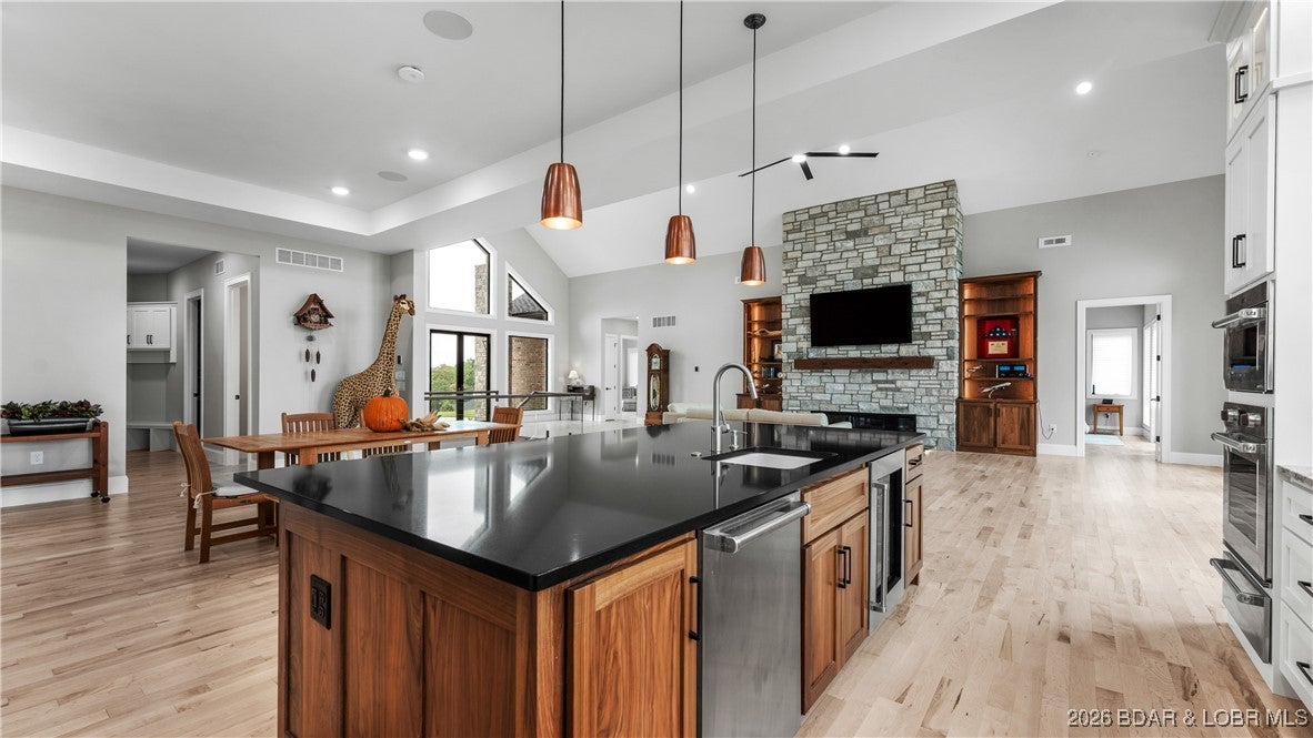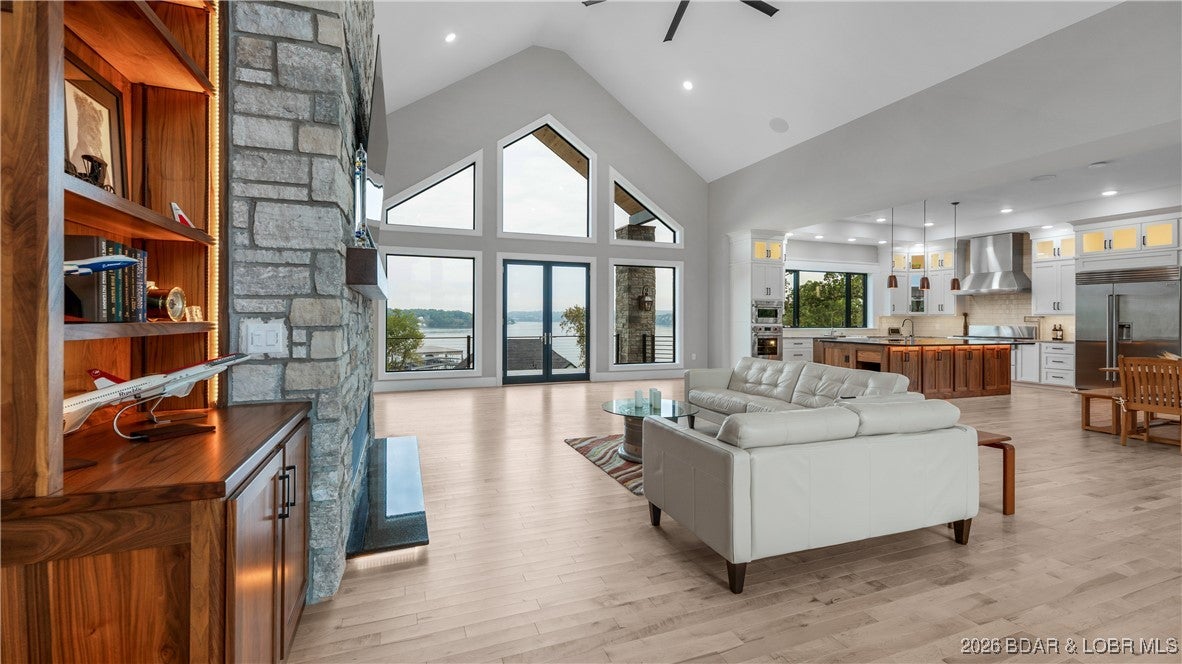 Has your search for a new construction, low maintenance home at The Lake of the Ozarks left you in a quality deficient conundrum? This Boutique masterpiece resets the bar with high end appliances & premium fit & finish. The finest components, materials, & craftsmanship were used. At entry level, there are 3300SqFt of living/entertaining/dining space without encountering stairs. A level spacious driveway with ample parking, & 4BR/4.5BA are offered. There is a definitiveness in the way this home flows, everything by design, & precise execution. See the 7 page features list. Situated in Osage Beach, overlooking the 19 mile marker, there is a 4 plus mile panoramic view of the lake! Proximity to Hospital, & all major OSB amenities are standard features, including city water, sewer, & natural gas. Two marinas are within walking distance(Kellys Port & Surdyke). The home includes a 1 year Boat Dock Lease(18X52). While near water, there are no expenses from Dock/Seawall maintenance, no flood insurance requirement. No managing of unpleasant lake wildlife, pests, or threat of rough water damage. The description will temp you, the home will convince you. Please tour this elegant offering.