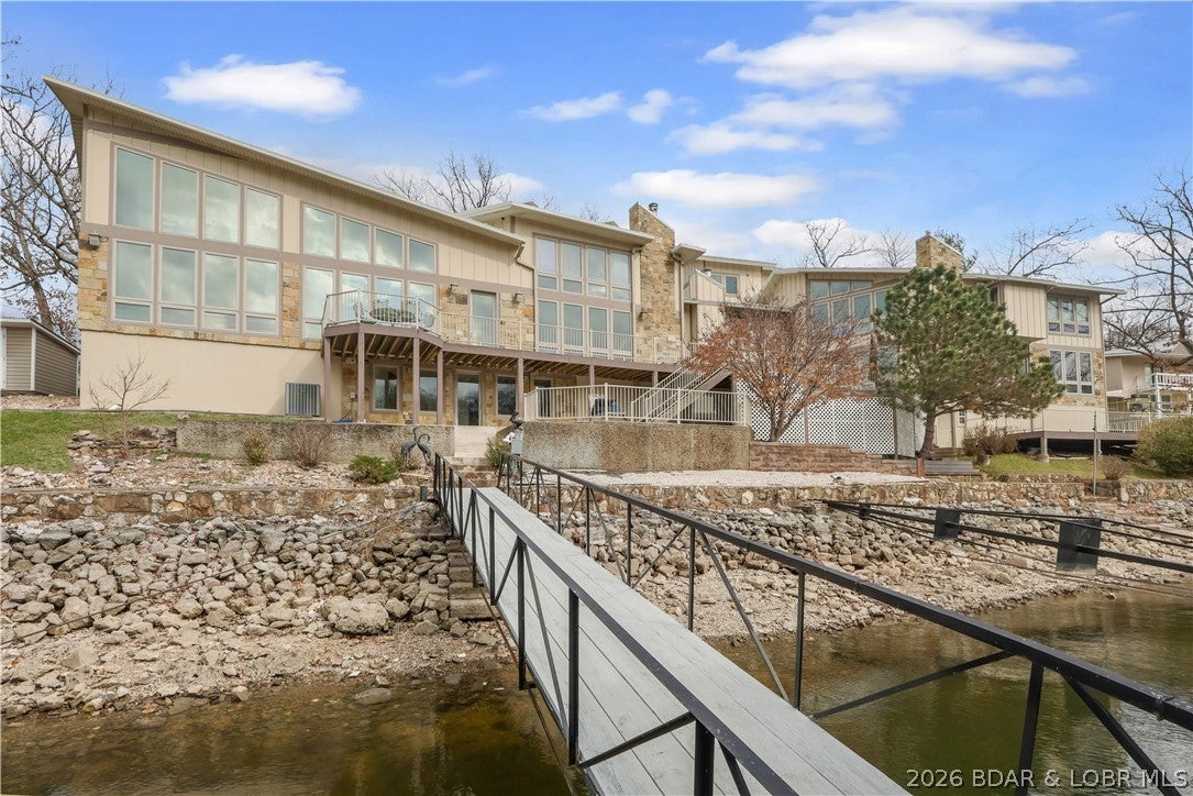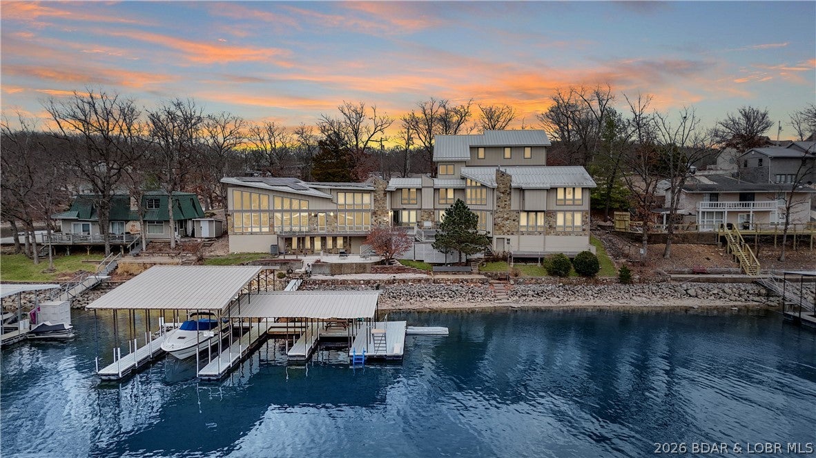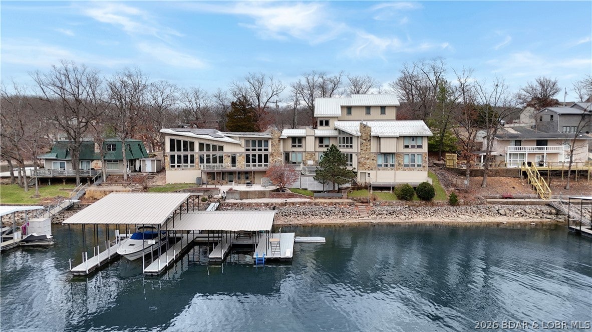 Welcome to this incredible one of a kind lakefront estate. This estate has 200 ft of pristine shoreline, deep water in a protected cove located on the 18 Mile Marker here at Lake of the Ozarks. With breathtaking main channel views from almost every room this home is sure to impress. Stepping inside youll find soaring ceilings, Australian Cypress hardwood floors, multiple fireplaces and Mahogany leaded glass doors. Designed for entertaining this home features 7 bedrooms, including a private master suite and several private guest wings. A chefs kitchen outfitted with brand new smart appliances flowing into the dining & living room area. Soak in the heated swim spa or gather around the outdoor fireplace and be sure to catch the Sunsets. The home is located in the heart of Osage Beach by land or water & the location doesnt get any better than this. Also included is a three well cruiser dock (resurfaced in 2023) with a 10,000 lb boat lift & dual PWC lifts. Enjoy peace of mind of a 20 KW solar array, lifetime metal roof & smart home integration from lighting to climate. With incredible investment income potential or an estate fit to host all guests, call to schedule your tour today.