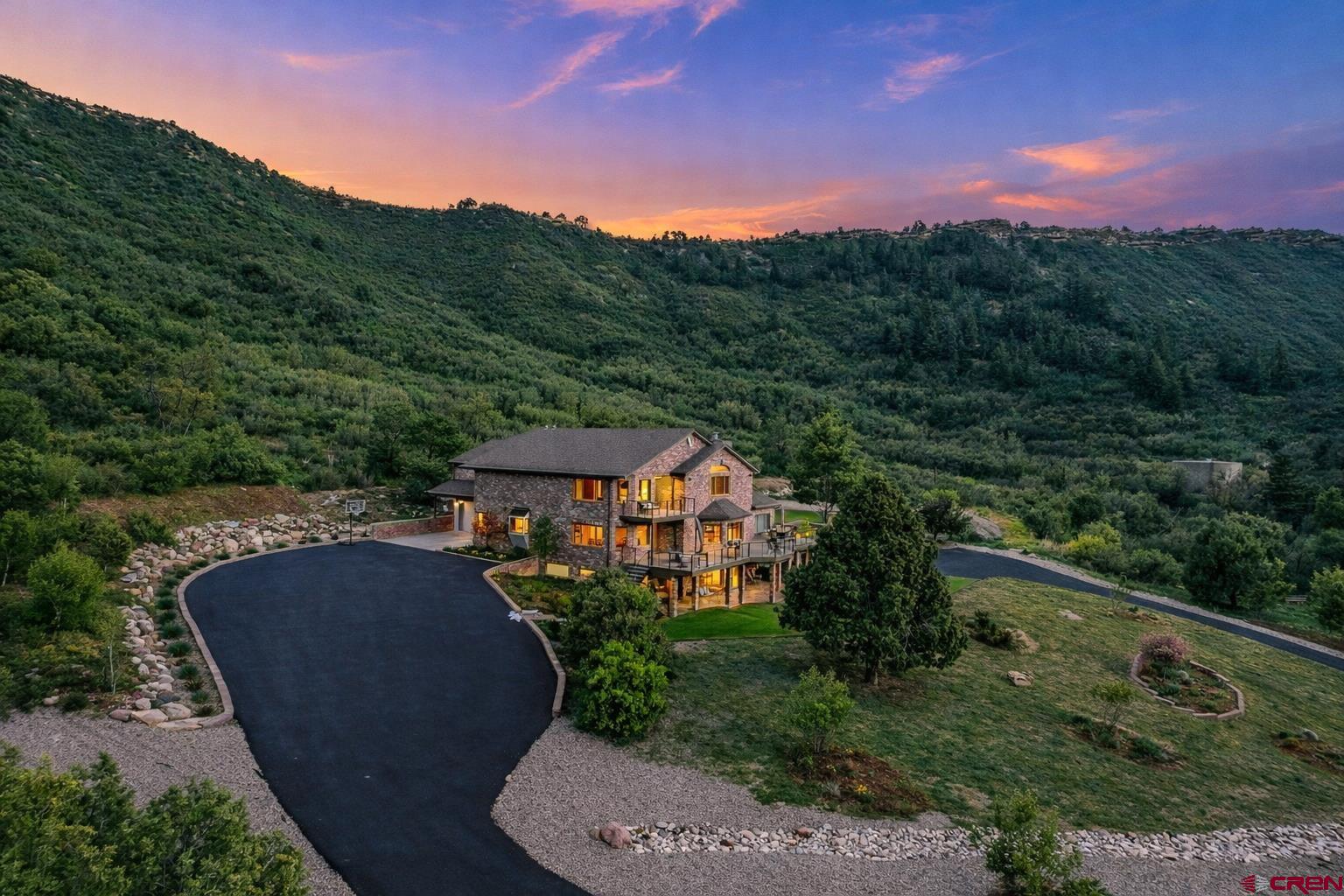 Ridgeline Ranch is a rare 35-acre Durango property offering multiple residences, income potential, development flexibility, and panoramic views of the La Plata Mountains just five minutes from downtown. The property currently generates approximately 120,000 per year in short-term rental income, with the main residence producing approximately 90,000 annually and the 900 SF ADU generating approximately 30,000 annually. The guest home is not currently rented but could potentially generate additional income depending on the buyers plans and use. Preliminary discussions with county planning indicate the potential to subdivide the 35-acre parcel into two parcels (buyer to verify). The concept would allow one single-family residence on each parcel. Set in a peaceful natural bowl with gently rolling meadows, oak-covered hillsides, and expansive mountain views, the property borders over 600 acres of BLM and city trail systems, including access to Raiders Ridge. The setting offers privacy, wildlife, and immediate connection to some of Durangos most sought-after outdoor recreation. The property includes a 6,625 square foot main residence, a 1,440 square feet guest home, and an 900 square feet ADU, along with extensive outbuildings including a large 3,340 square feet RV garage/workshop, horse barn, and fenced pastures. The main residence offers spacious living across three levels with 6 bedrooms and 5.5 bathrooms, vaulted ceilings, expansive windows framing mountain views, and multiple gathering spaces. The home includes a large kitchen with granite countertops and stainless-steel appliances, multiple living areas, and a walk-out lower level with a second kitchen, theater room, recreation space, exercise room, sauna, and hot tub. The guest home at 195 Ute Canyon Road offers two bedrooms and one bathroom, located above the RV garage/workshop with full hookups, extensive storage, and hobby space. The ADU at 192 Ute Canyon Road provides a nice living space with a fireplace, plus one bedroom and one bathroom, private access, and a balcony with scenic views. Additional improvements include a five-stall horse barn with finished loft, fenced pastures, and ample space for equestrian use or additional outdoor amenities. All furnishings are negotiable. This property is not part of any HOA. Ridgeline Ranch offers the rare opportunity to live, recreate, and explore entirely on your own land, horseback ride, mountain bike, snowmobile, cross-country ski, sled, or hike the private trails that wind through meadows and hillsides. This is a rare combination of acreage, multiple residences, existing rental income, and long-term upside potential, all just minutes from downtown Durango.