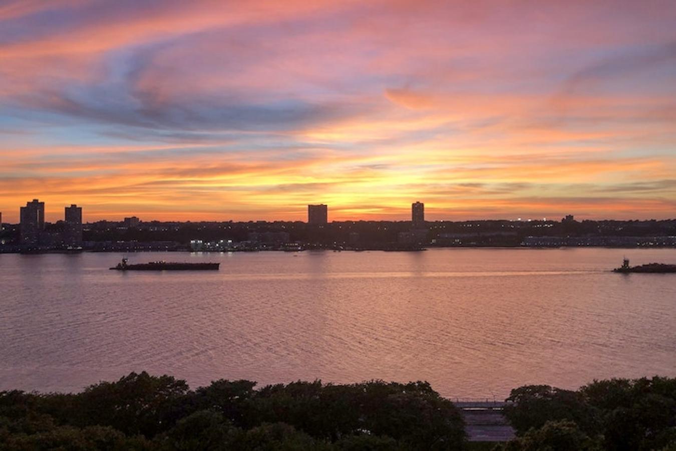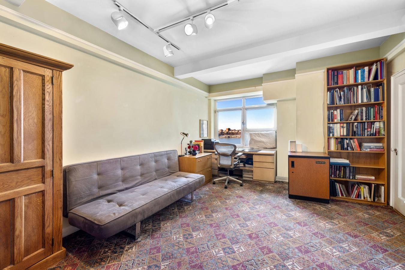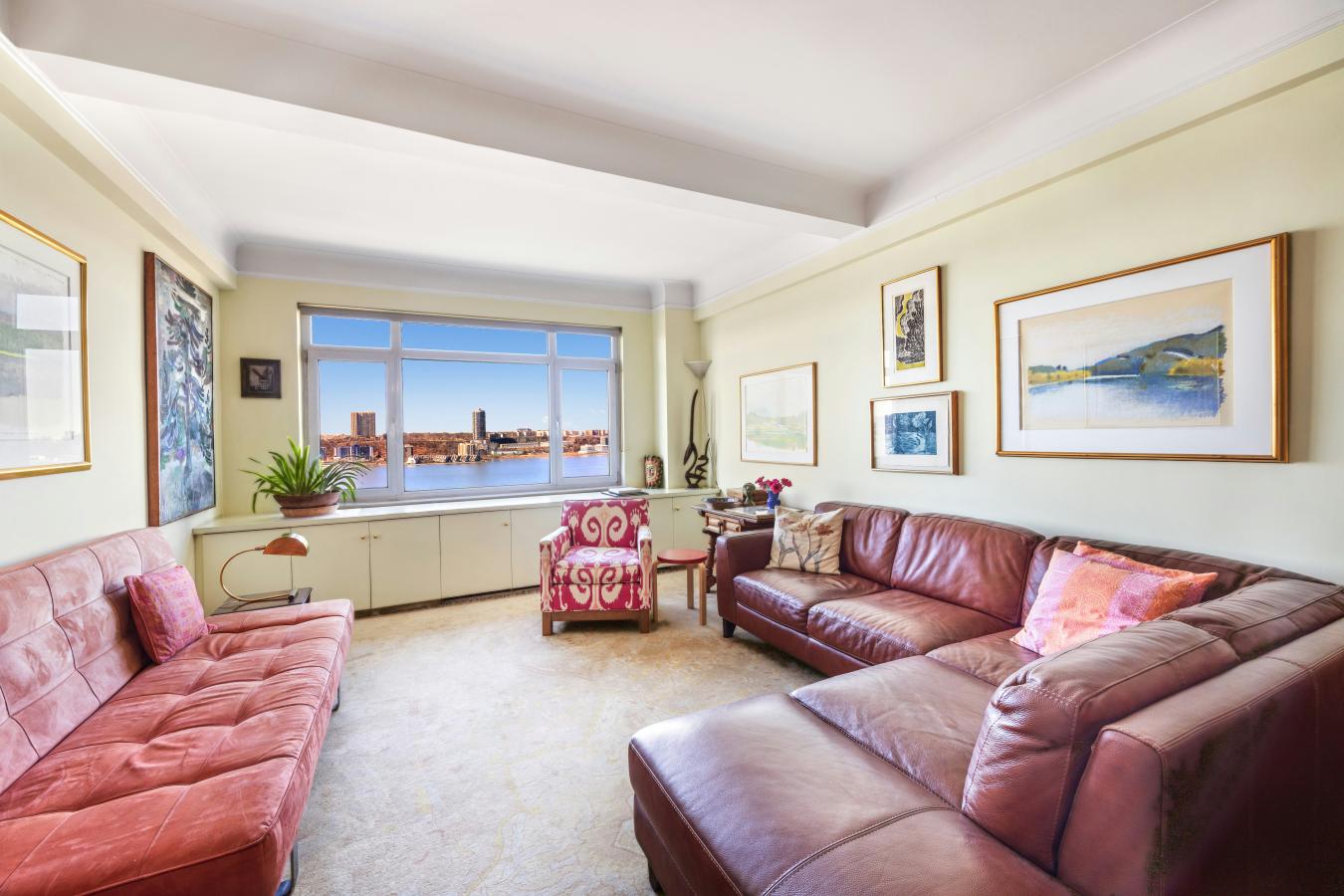 Watch the seasons change and the boats go by from this 10th floor 2 bedroom, 2 bath home, located in the Normandy, an iconic pre-war building built in 1939 by notable architect, Emery Roth. With stunning views of the Hudson River and Riverside Park, this spacious home boasts a fantastic layout with a large living room, winged bedrooms and a sensational curved dining area sure to create a great vibe while entertaining! The gracious living room is well proportioned and measures a generous 13" x 23"-4" and has a wide expanse of windows to take in the view. Both bedrooms are also substantial in size. The primary bedroom has an en-suite renovated, windowed bath with heated floors, a walk-in closet and a gorgeous curved corner window that faces south and west offering a unique vantage point facing the river, the park and Riverside Drive. The second bedroom also faces the river and park and has an adjacent full bath with a great square-shaped original tub. The south-facing windowed kitchen is bright and offers plenty of cabinet and counter space and has an added recess space for additional use. Off the kitchen is the special, curved dining area which has proven to be a conversation piece and has a well located china closet. To top it off, there are herringbone wood floors, incredible closet space throughout the apartment for substantial storage, 9-foot beamed ceilings and a washer/dryer. The apartment benefits from the beautiful exposures that bathes the apartment in light and provides gorgeous sunsets. There are so many aspects of this home to appreciate and that make this apartment a rare find! Located in the heart of the Upper West Side and across the street from the beauty and recreation of Riverside Park, The Normandy is a true New York City classic! The building was designed with two wings, and spans from 86th street through to 87th street, each side with a separate entrance and elevator bank and connected by a grand, windowed center lobby overlooking the front garden. This full-service cooperative offers an attentive staff of full-time doormen, handymen, porters, and a live-in resident manager. The Normandy has every amenity: two new gyms, laundry, childrens playroom, community room, bike storage and storage (wait-list), and a huge furnished, landscaped roof deck with 360-degree views east to Central Park, south to downtown and the World Trade Center, west to the gorgeous Hudson River and beyond, and north to the George Washington Bridge. Pet and pied-a-terre friendly, the building allows 75% financing and co-purchasing.