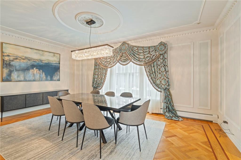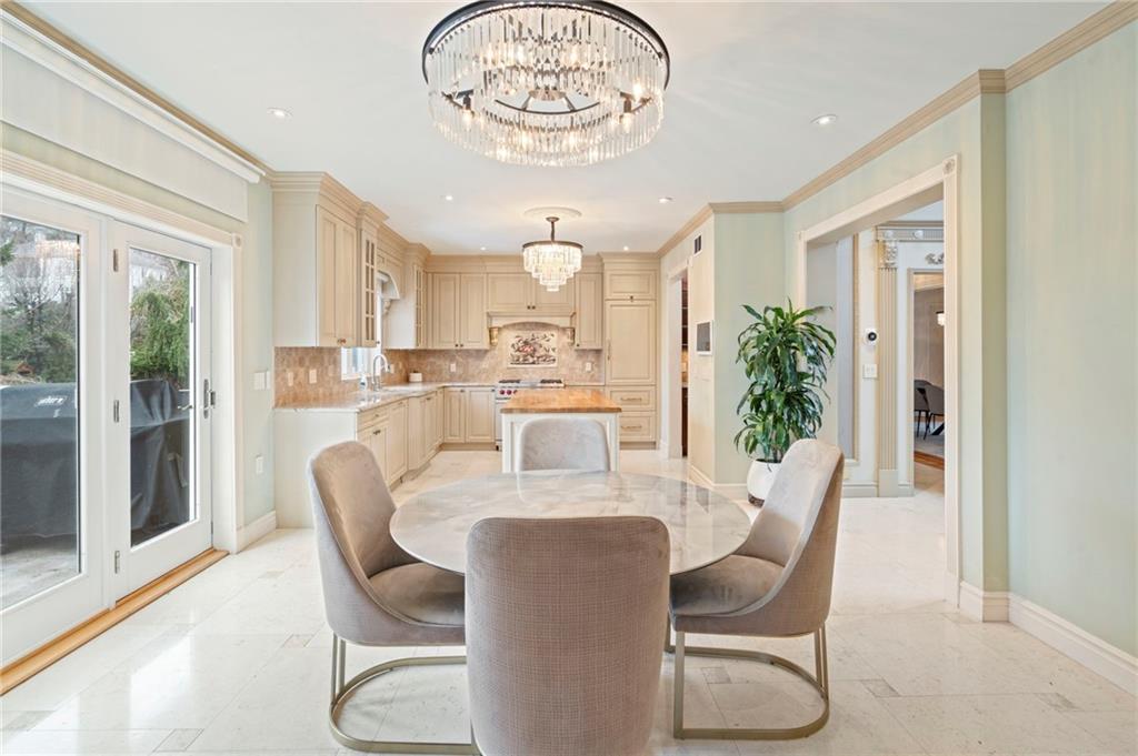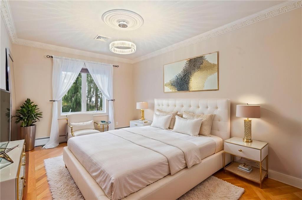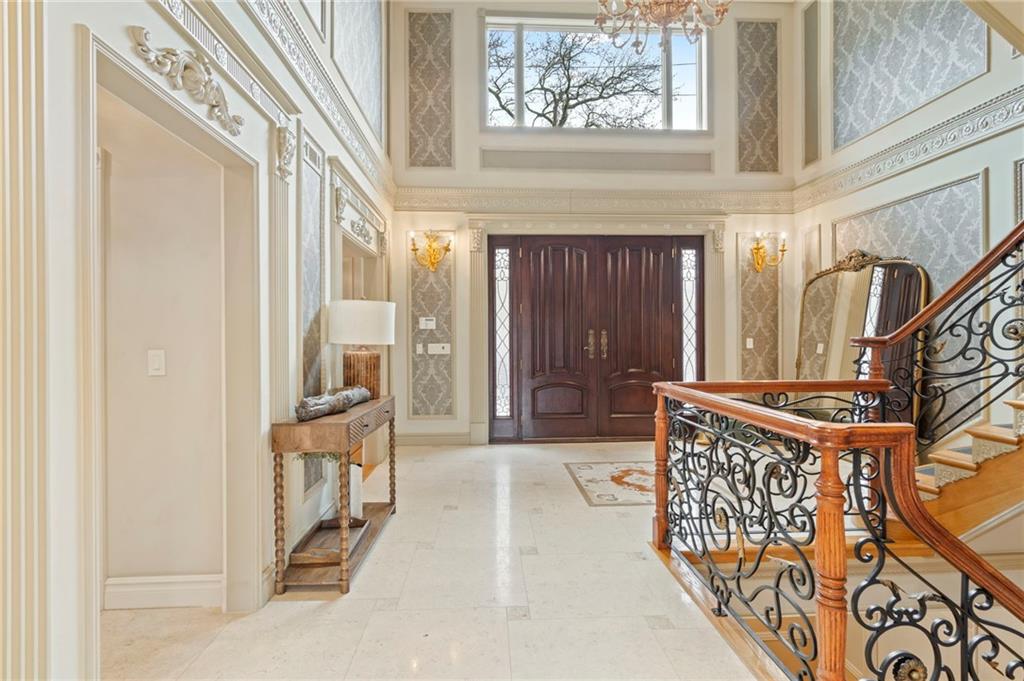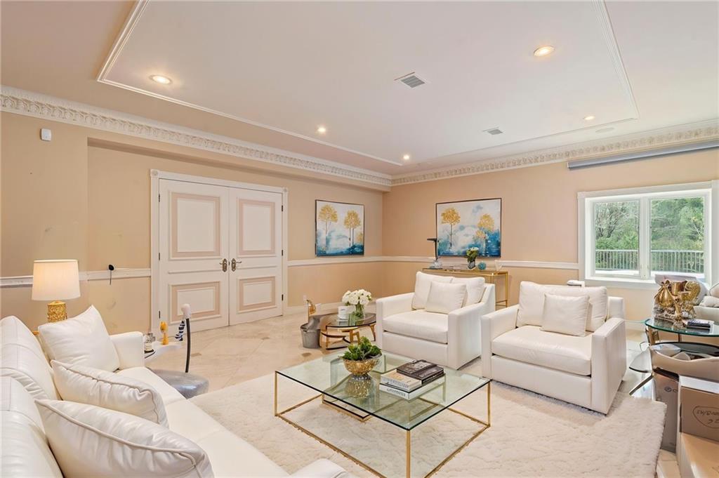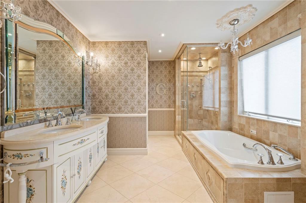 Perched atop Emerson Hill, Staten Islands most prestigious neighborhood, 76 Douglas Rd is an exceptional custom mansion-style residence set on a generous 110x101 ft lot.Elevated high above the city, this colonial revival-inspired suburban estate offers 3 levels with over 5,000 sf of living space designed for comfort, entertaining and everyday luxury.Known for its luxury homes, panoramic views and unparalleled privacy, Emerson Hill is one of New York Citys hidden gems for luxury living.Upon entering, youre welcomed by a dramatic sweeping staircase that rises beneath soaring ceilings creating a breathtaking focal point and setting the tone for the homes timeless design.The expansive living room with a fire place and formal dining area offer an inviting setting for gatherings while the custom chefs kitchen outfitted with premium appliances serves as the heart of the home.Private quarters upstairs provide serene retreats with 4 bedrooms designed for comfort and tranquility. Prepare to be impressed by the primary suite with a spa-like exquisite en-suite bathroom, a sitting area and a private balcony.The lower level extends the homes living potential with a family room, bathroom, cozy fully equipped kitchen, steam room, gym area and access to the backyard. Whether you have overnight guests or hosting an event, this level adapts effortlessly to your needs.76 Douglas Rd is not just a home - its a lifestyle! Every element of this residence from vaulted ceilings, custom wall finishes, intricate crown moldings, impressive crystal chandeliers, abundant custom closets, radiant heat flooring (including garage), 7- zone climate controlwas designed to inspire a life of ease, elegance and style. Built-in garage with parking area that fits 6 cars adds modern convenience without compromising design.Outside, the property offers a sense of privacy and serenity. BONUS:there is a space for a future in-ground pool, with approved blueprints already in place.