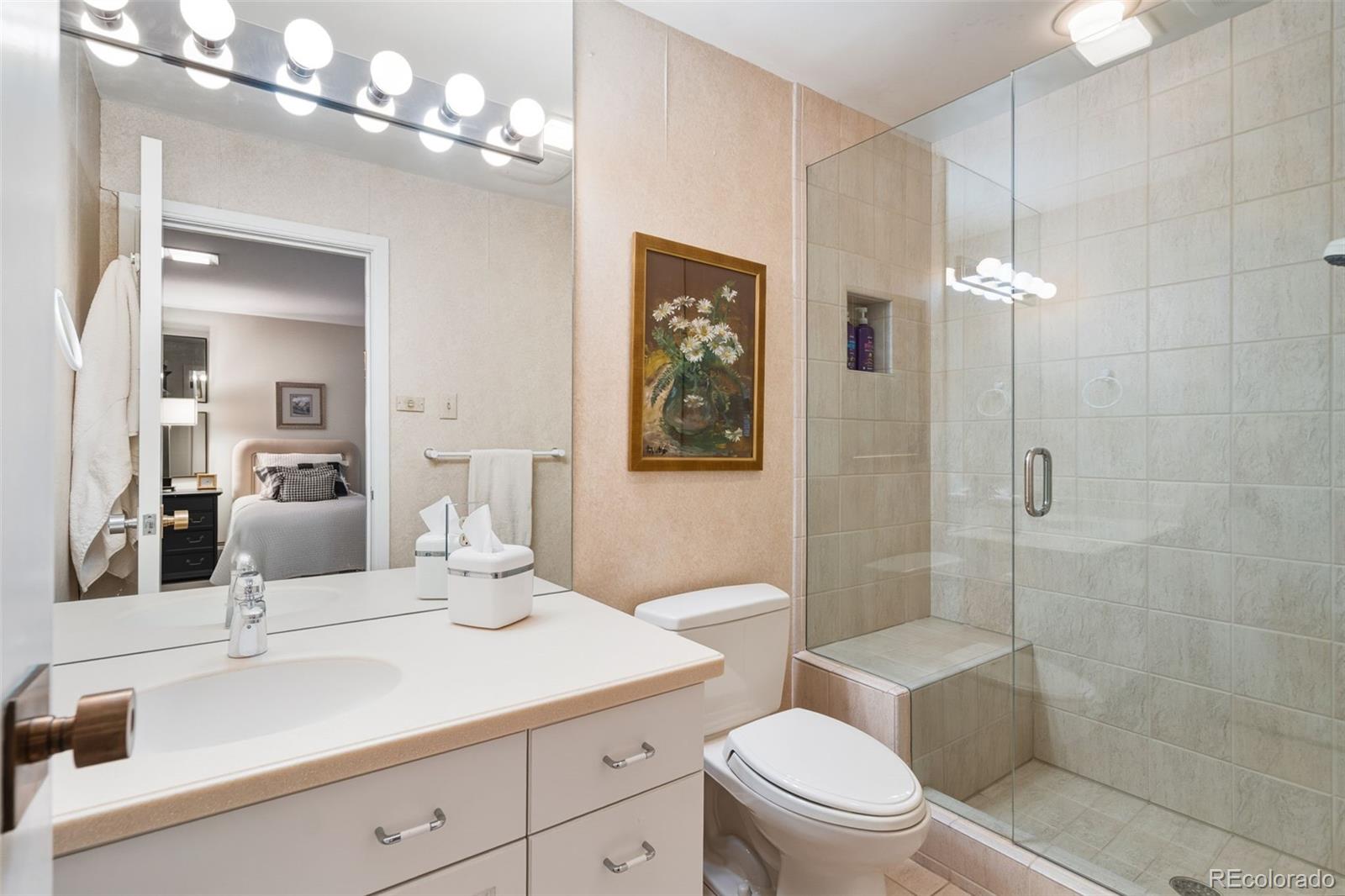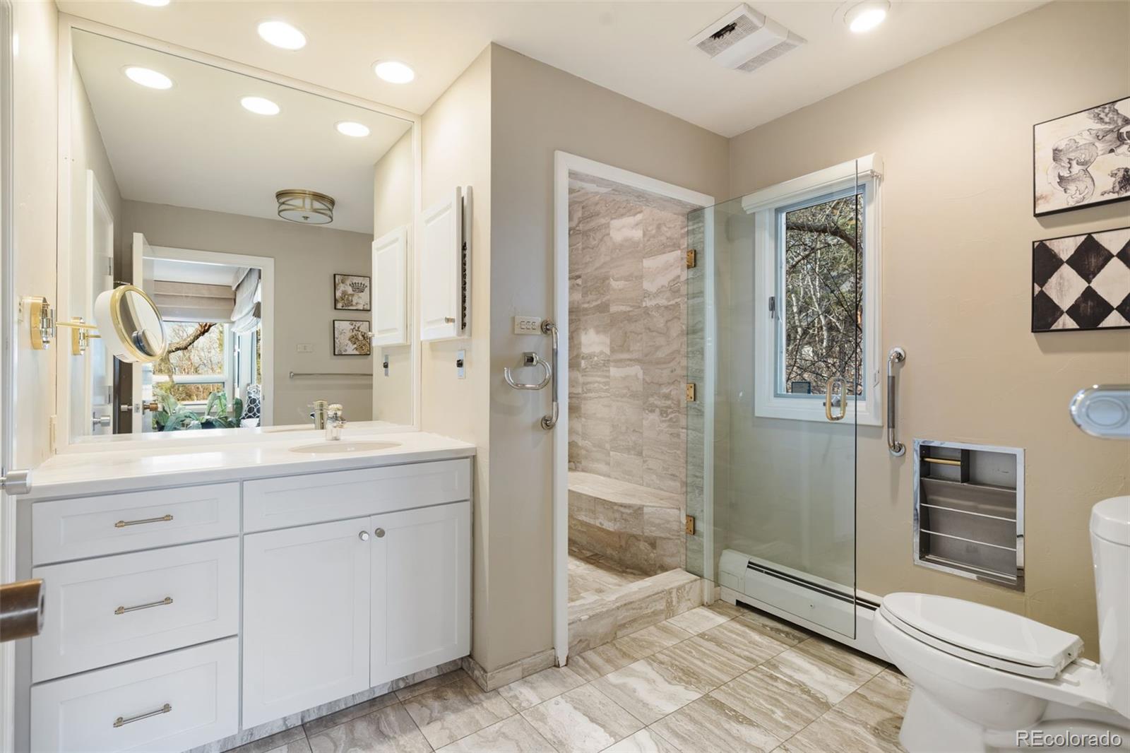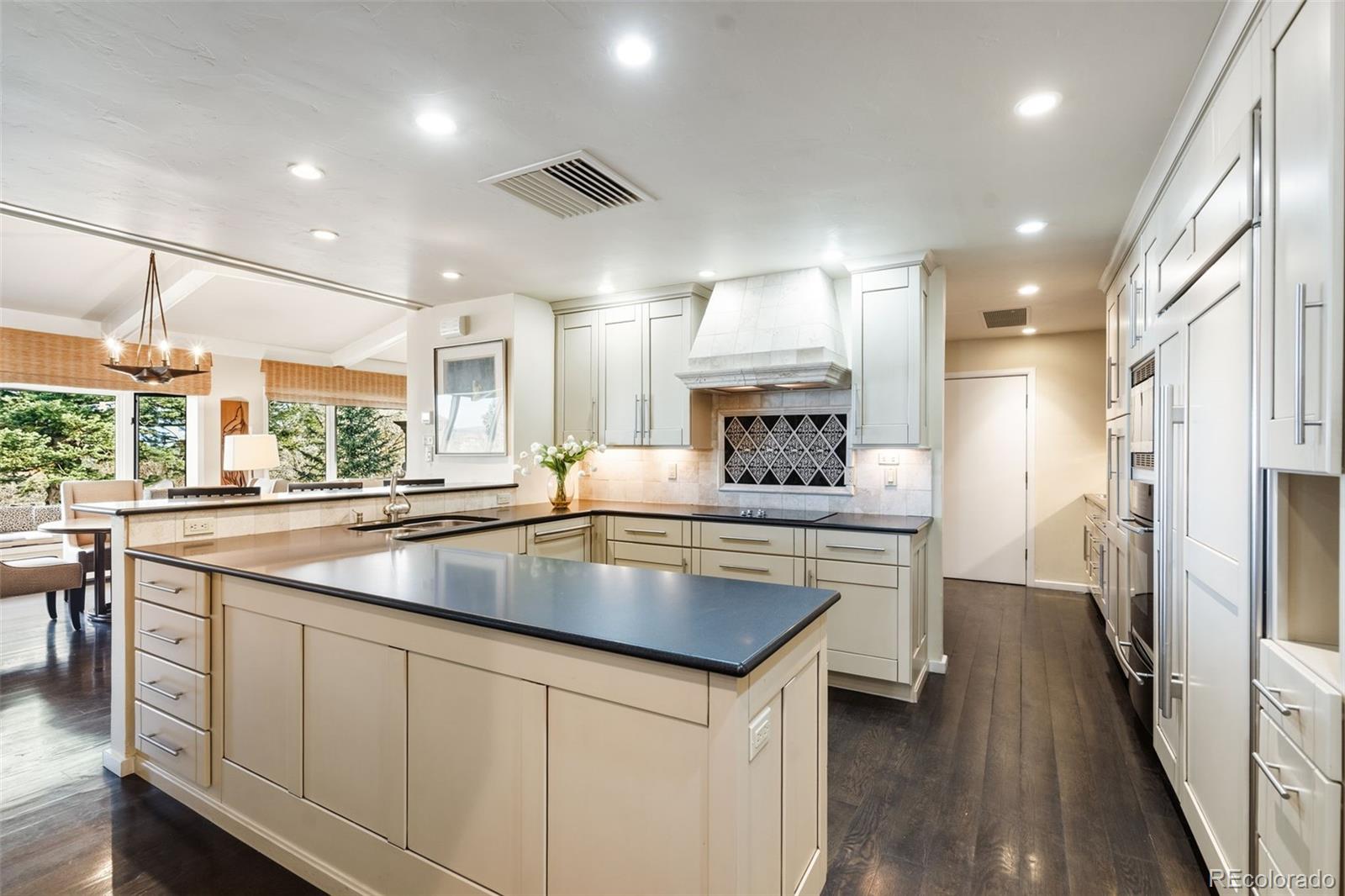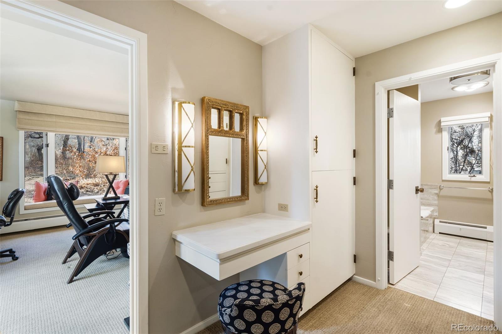 Beautiful mid-century modern ranch backing to the iconic Broadmoor Golf Course. The primary suite, privately situated on the north side of the home, is a true retreat featuring dual primary bathrooms, a spacious study with a gas fireplace, and tranquil courtyard views. The living room offers sweeping golf course vistas, vaulted ceilings, and an architecturally distinctive ambiance.