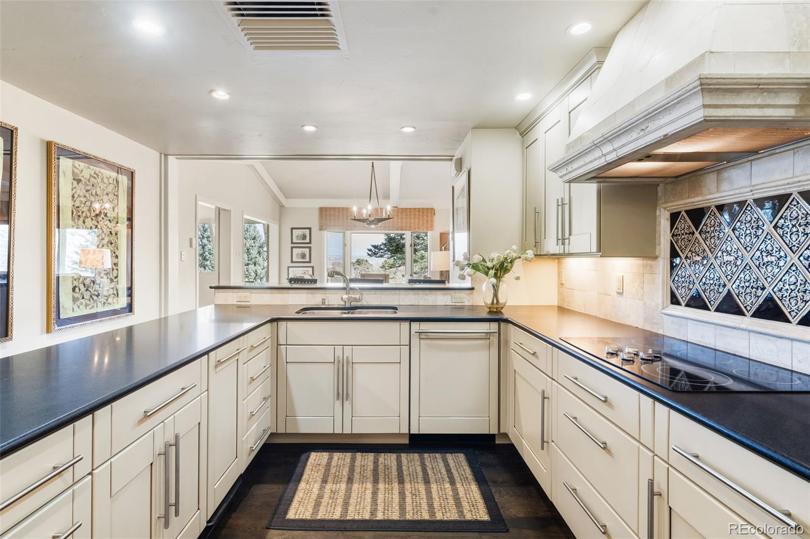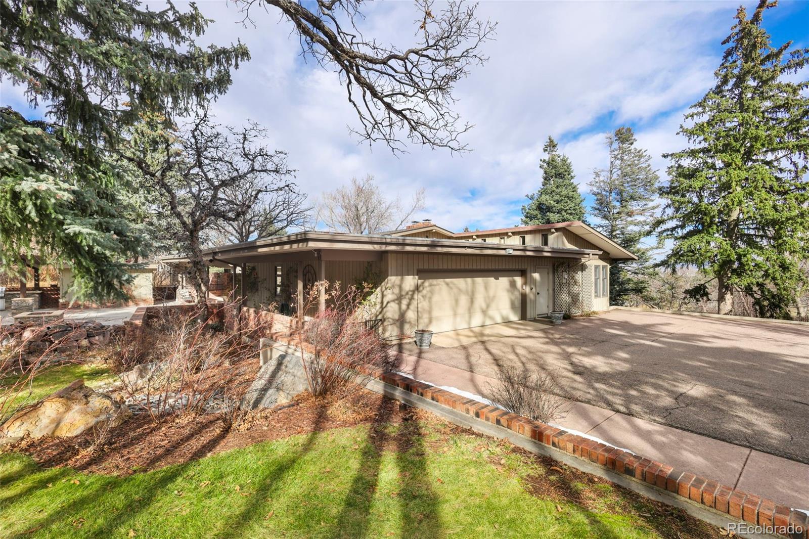 Beautiful mid-century modern ranch backing to the iconic Broadmoor Golf Course. The primary suite, privately situated on the north side of the home, is a true retreat featuring dual primary bathrooms, a spacious study with a gas fireplace, and tranquil courtyard views. The living room offers sweeping golf course vistas, vaulted ceilings, and an architecturally distinctive ambiance. The kitchen is a gourmets delight with granite countertops, custom cabinetry, a wine refrigerator, and a charming bar area that warmly welcomes you into the space. Just off the kitchen is a quaint dining nook and cozy sitting area with a limestone-encased fireplace. The sunroom captures stunning golf course views, while the formal dining room provides an elegant setting for special gatherings. Tucked away on the south side of the home is an additional private retreat with its own sitting area and en-suite bathroom. A third bedroom option is also available on the main level. A large laundry room with generous cabinetry and storage adds everyday convenience. The basement serves as a relaxing hideaway with a fourth bedroom and a comfortable lounging area. The lot is truly one of a kind, offering mountain views to the west and golf course views to the east. Outdoor living is exceptional with an expansive concrete patio centered around a fire pitperfect for entertaining or quiet evenings. Additional features include a privacy wall and gated driveway, a charming courtyard off the primary suite, air conditioning, and much more. What an opportunity to have main level living, access to hiking and biking trails and a leisurely stroll to the Broadmoor Hotel!