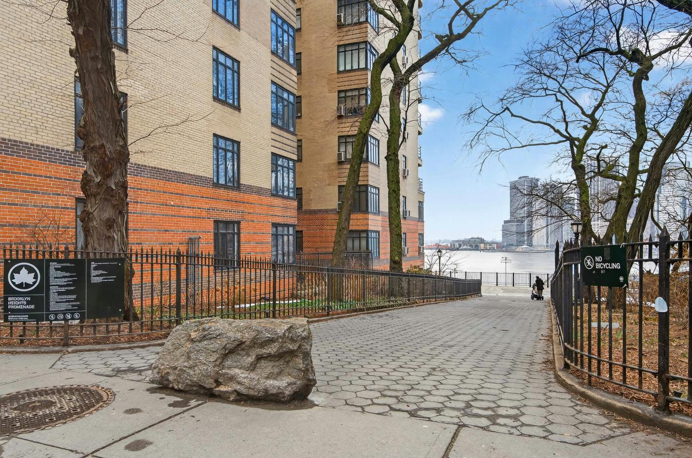 Located on Columbia Heights, directly opposite the walkway down to the iconic Brooklyn Heights Promenade, this charming six-story Beaux-Arts co-op building offers a peaceful and quintessential Brooklyn Heights setting. This true three-bedroom, two-bathroom apartment faces Columbia Heights, with treetop views toward the Promenade and the East River. A long entry hallway leads into the open kitchen, which features a built-in corner breakfast banquette, plentiful custom cabinetry, Carrara marble countertops, a striking large Aga stove, and modern stainless-steel appliances. The spacious living room flows into a windowed library with three walls of custom bookshelves and storage cabinets-an ideal place to read, play board games, or listen to music. Tucked just off the library is the large primary bedroom, complete with built-in closets and its own ensuite bathroom with a fully tiled walk-in shower. The second and third bedrooms are located off the main hallway, offering excellent separation from the primary suite. Both comfortably accommodate a queen-size bed and include built-in storage. A second full bathroom is conveniently located between these bedrooms in the hallway, making it easily accessible for guests as well. This elevator building is pet-friendly and offers a live-in superintendent, bike storage, storage cages for rent, and two laundry rooms-one conveniently located on the third floor, very close to the apartment. Just across the street is the Promenade, renowned for its sweeping views of Lower Manhattan, the harbor, and the Brooklyn Bridge. Brooklyn Bridge Park is also easily accessed via Columbia Heights. The neighborhood is filled with excellent cafés and restaurants, and transportation is exceptionally convenient, with multiple subway lines and the ferry nearby. This lovely apartment offers the opportunity to live in a neighborhood rich in history and beauty while enjoying all the conveniences of modern living. Contact me to schedule your private viewing.
