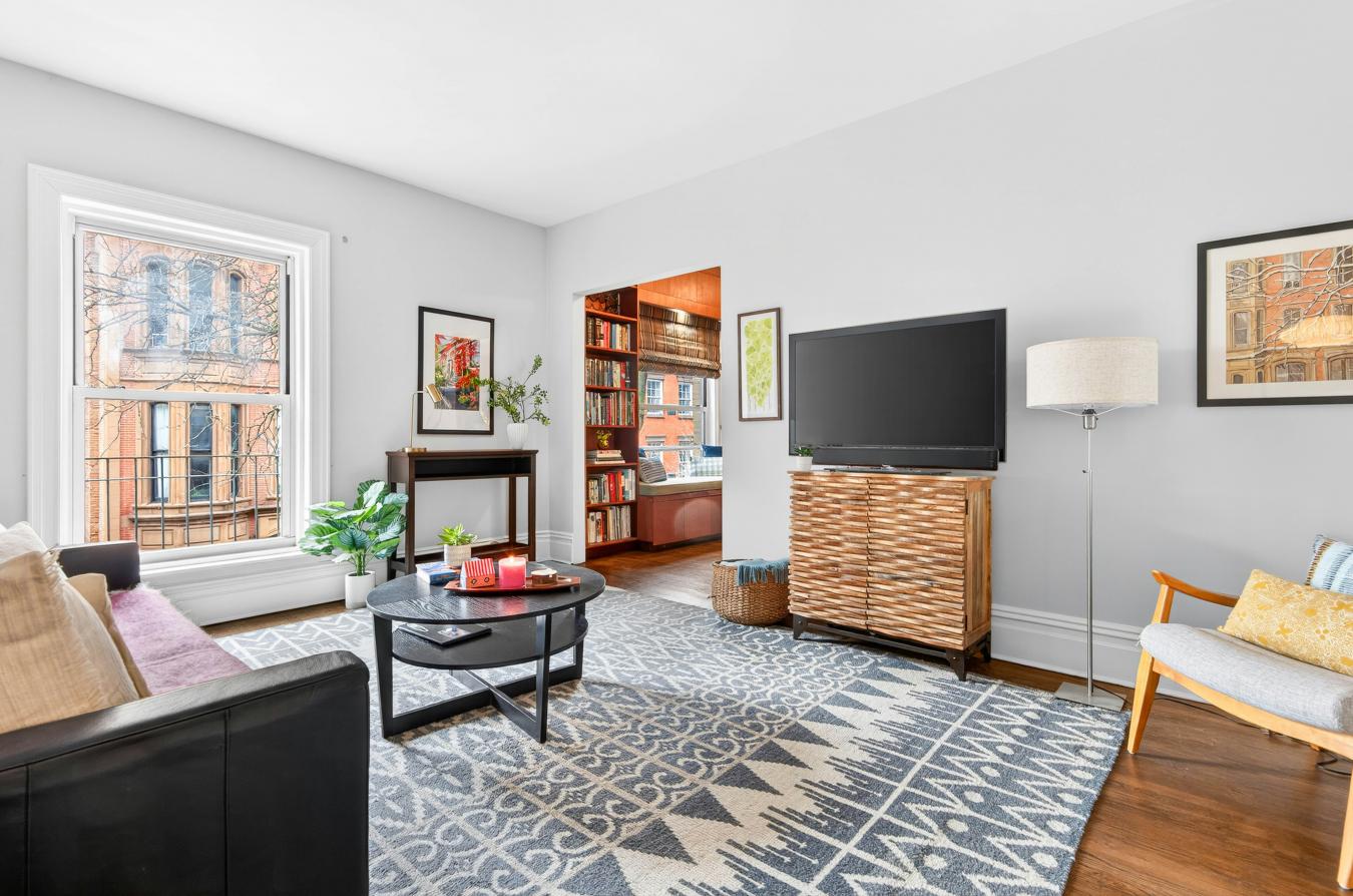 Located on Columbia Heights, directly opposite the walkway down to the iconic Brooklyn Heights Promenade, this charming six-story Beaux-Arts co-op building offers a peaceful and quintessential Brooklyn Heights setting. This true three-bedroom, two-bathroom apartment faces Columbia Heights, with treetop views toward the Promenade and the East River.