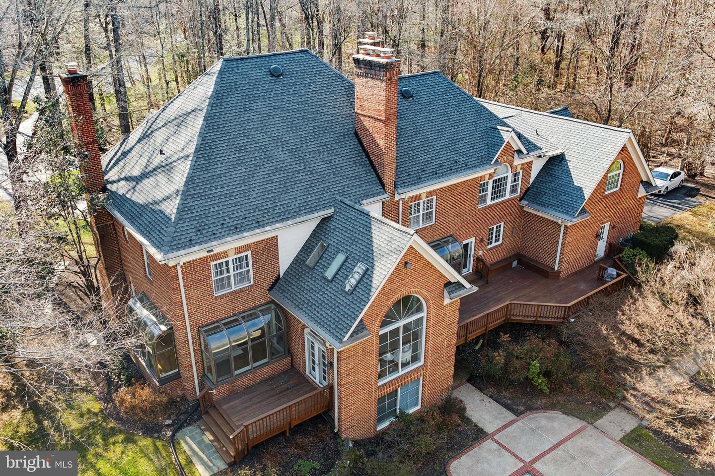 Welcome to this beautiful all-brick detached single-family home offering over 7,000 square feet of living space on a private 5-acre lot. A long driveway welcomes you and circles around the front entrance, continuing to the three side-load garages. Enter into a two-level open foyer featuring an elegant curved wood staircase. The main level offers formal living and dining rooms along with a dramatic two-level family room with a stone-accented fireplace. Hardwood floors run throughout the entire home. The recently remodeled gourmet kitchen features white custom cabinets, granite countertops, backsplash, and stainless steel appliances. The kitchen opens to a large deck overlooking beautiful views and a private heated swimming pool with a built-in hot tub. The upper level offers four spacious bedrooms and three full bathrooms. The primary suite features tray ceilings and a luxury full bathroom with heated tile floors, a spa-like soaking tub, separate standing shower, and huge walk-in closets. The upper level also offers a Jack and Jill bathroom for two of the bedrooms and a private full bathroom for the fourth bedroom. The fully finished basement offers a large recreation room, storage room, a full bedroom, and a full bathroom. The basement is a walk-out level leading to a patio and views of the backyard. The swimming pool will be filled and cleaned for the new buyers. Roof 2025, Washer/Dryer 2024, Upstairs water heater 2025, Basement water heater 2024