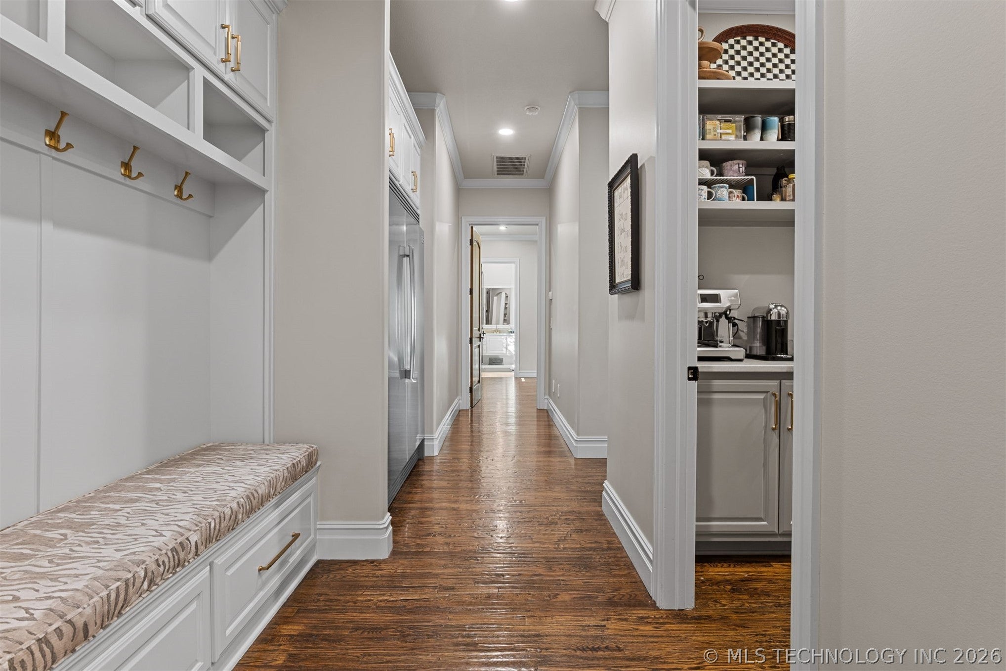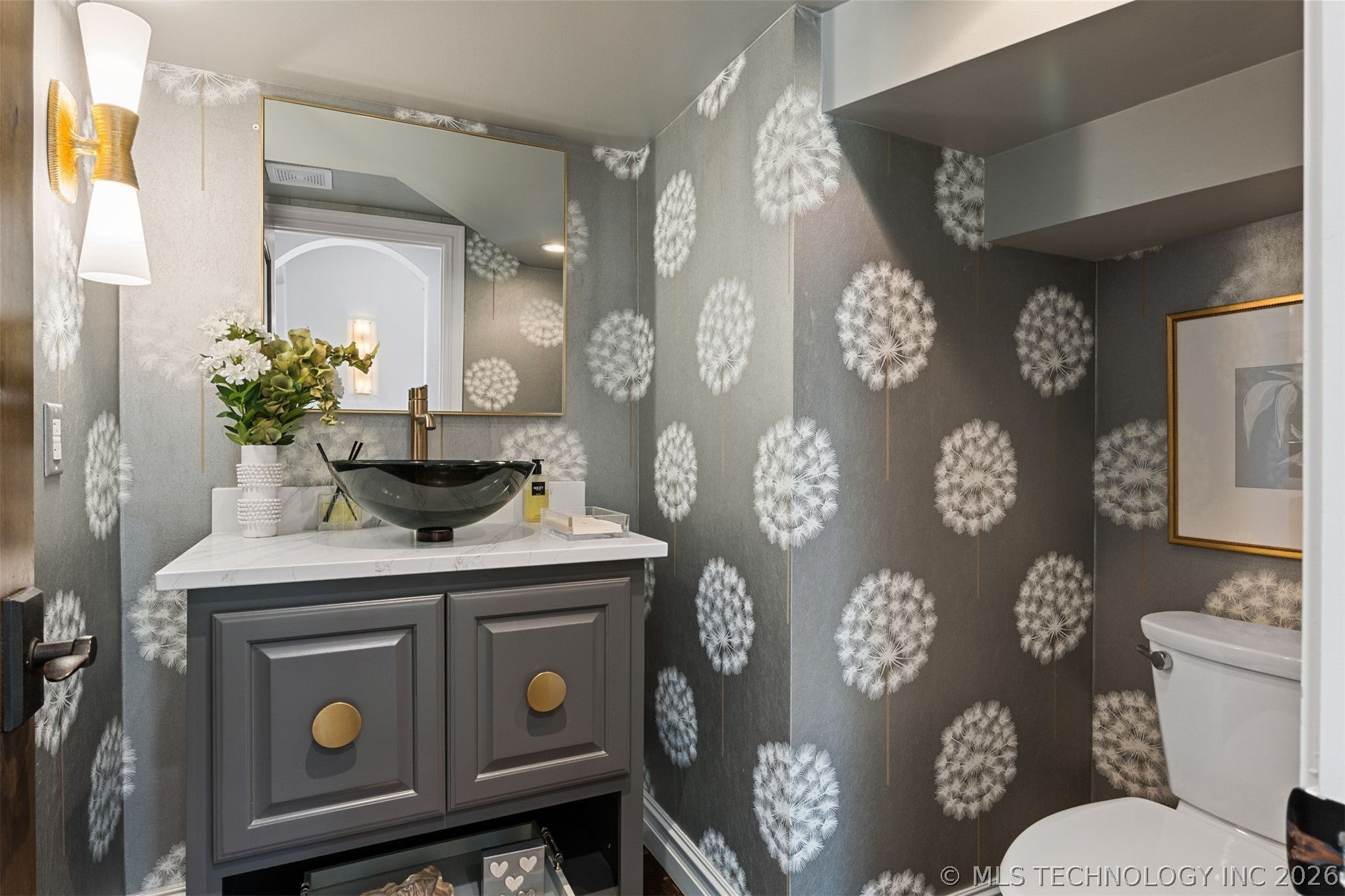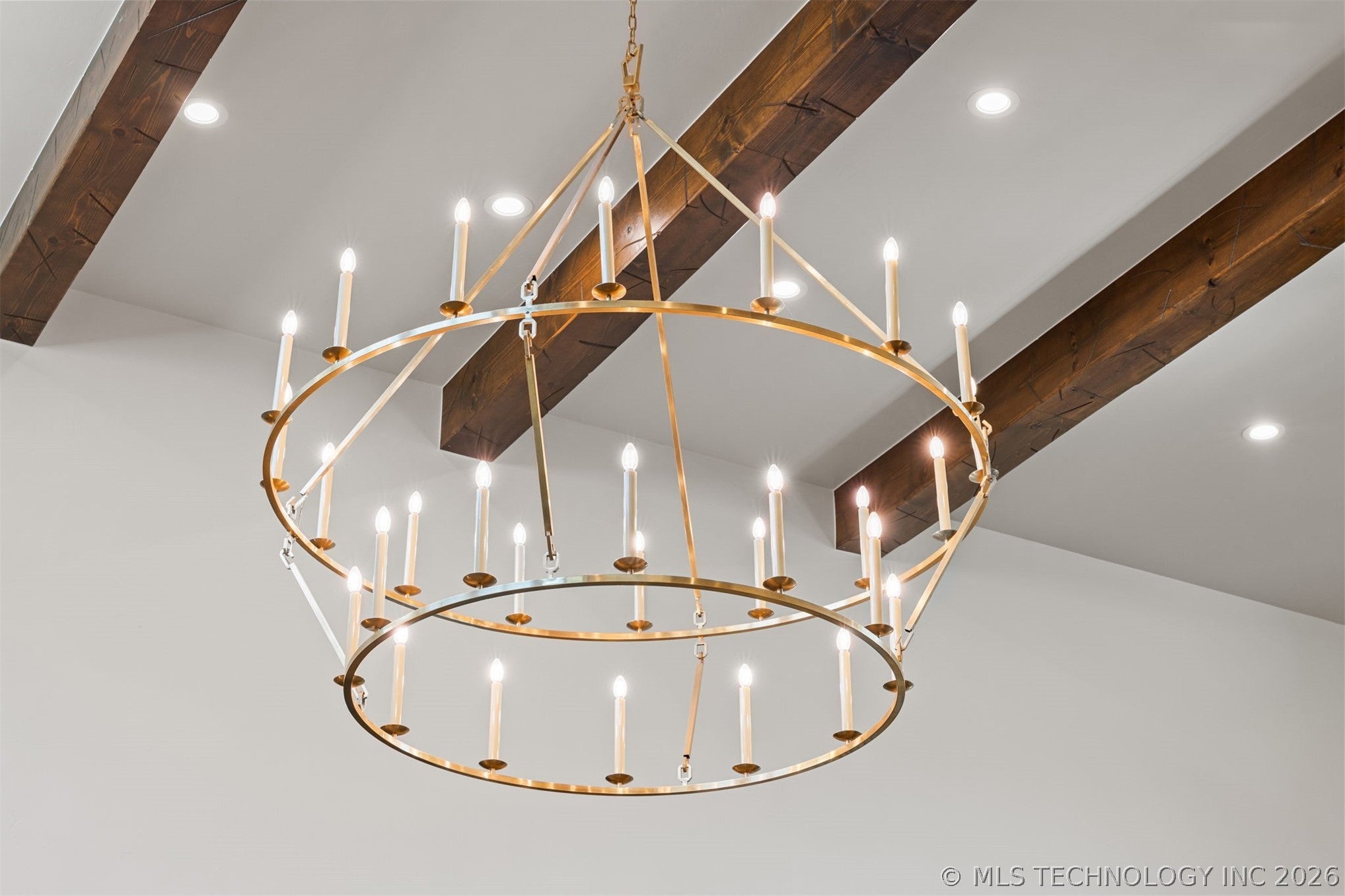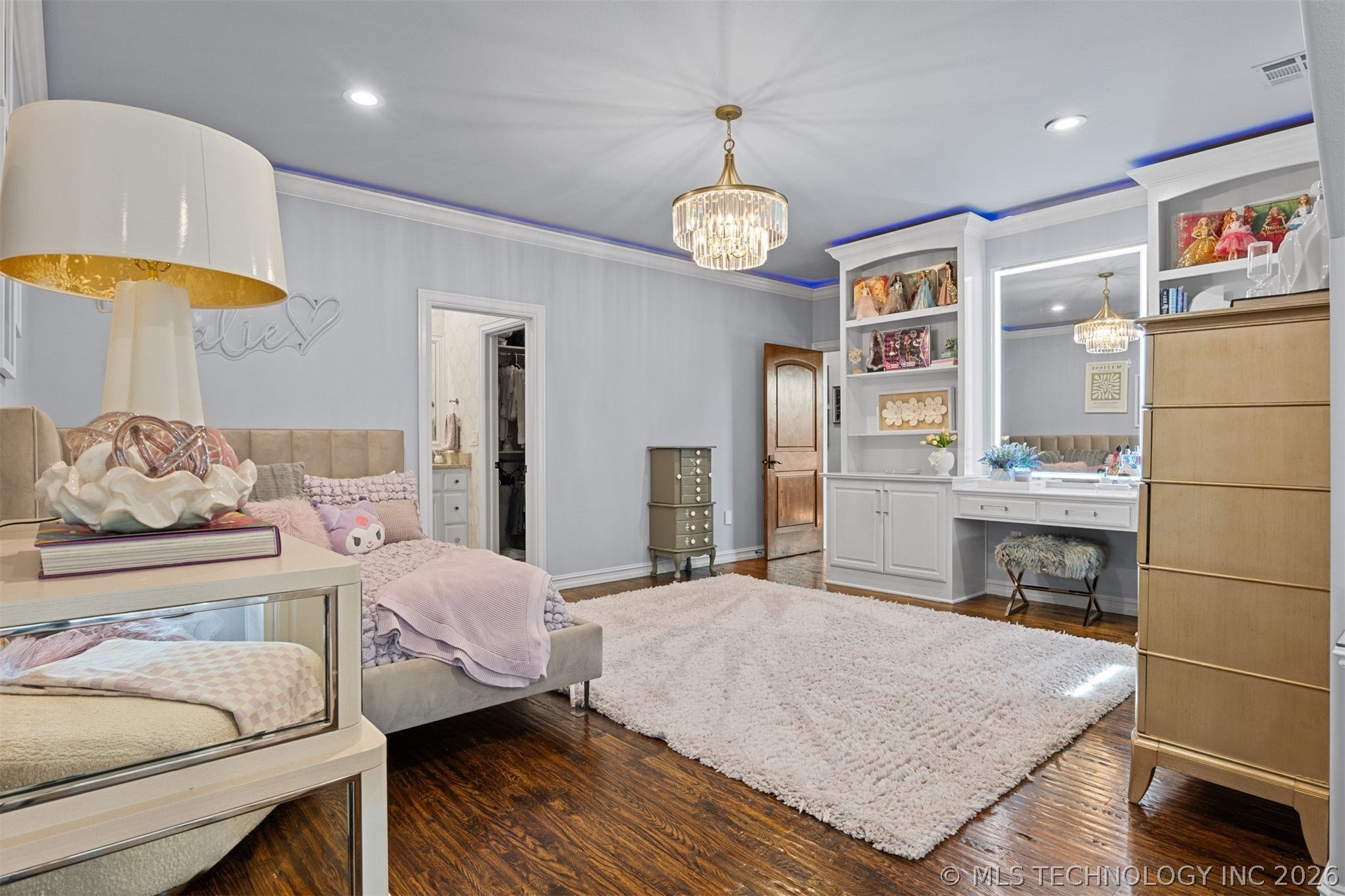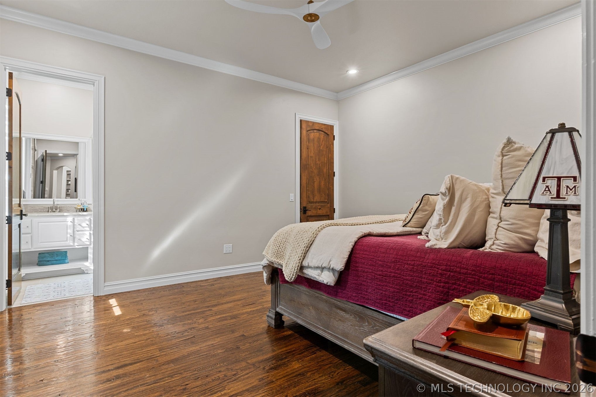 Situated on five elevated and beautifully manicured acres within the exclusive gated Featherstone community in the highly sought-after Jenks School District, this exceptional estate offers a rare blend of luxury, privacy, and resort-style living just minutes from Tulsa. This luxury home features five bedrooms, six full bathrooms, one half bath, and multiple living spaces designed for both everyday comfort and entertaining. The fully remodeled chefs kitchen showcases Taj Mahal quartz countertops, designer backsplash, updated fixtures and hardware, prep sink, dual built-in refrigerators, dual dishwashers, ice machine, wine refrigerator, and an expansive pantry with additional prep space. A striking wine cellar with wrought iron door and stacked stone sits just off the breakfast nook, creating an elegant focal point. The home offers four living areas including the main living room, a dedicated theater room with built-in wet bar, microwave, and refrigerator, a downstairs game room that opens to the outdoor living spaces (could be 6th bedroom) and a third-level exercise or flex space. The luxurious primary suite features a private exterior entrance with pool views, spa-style bath, large bathtub & shower enclosure, double sinks, built-in vanity, and spacious his-and-her closets. Hand scraped hardwood floors run throughout with carpet only in the theater, complemented by updated paint, fixtures, hardware and designer lighting. Outdoor living is unmatched with five separate spaces, four exterior fireplaces, a gunite pool with tanning ledge and bubbler, eight-person spa, pool bath, and a fully equipped outdoor kitchen with two grills, EVO cooktop, burners, sink, and refrigerator. A five-hole putting green with sand trap enhances the entertainment. The four-car garage includes epoxy floors and an in-ground safe room. Tankless hot water and a new roof complete this extraordinary offering.