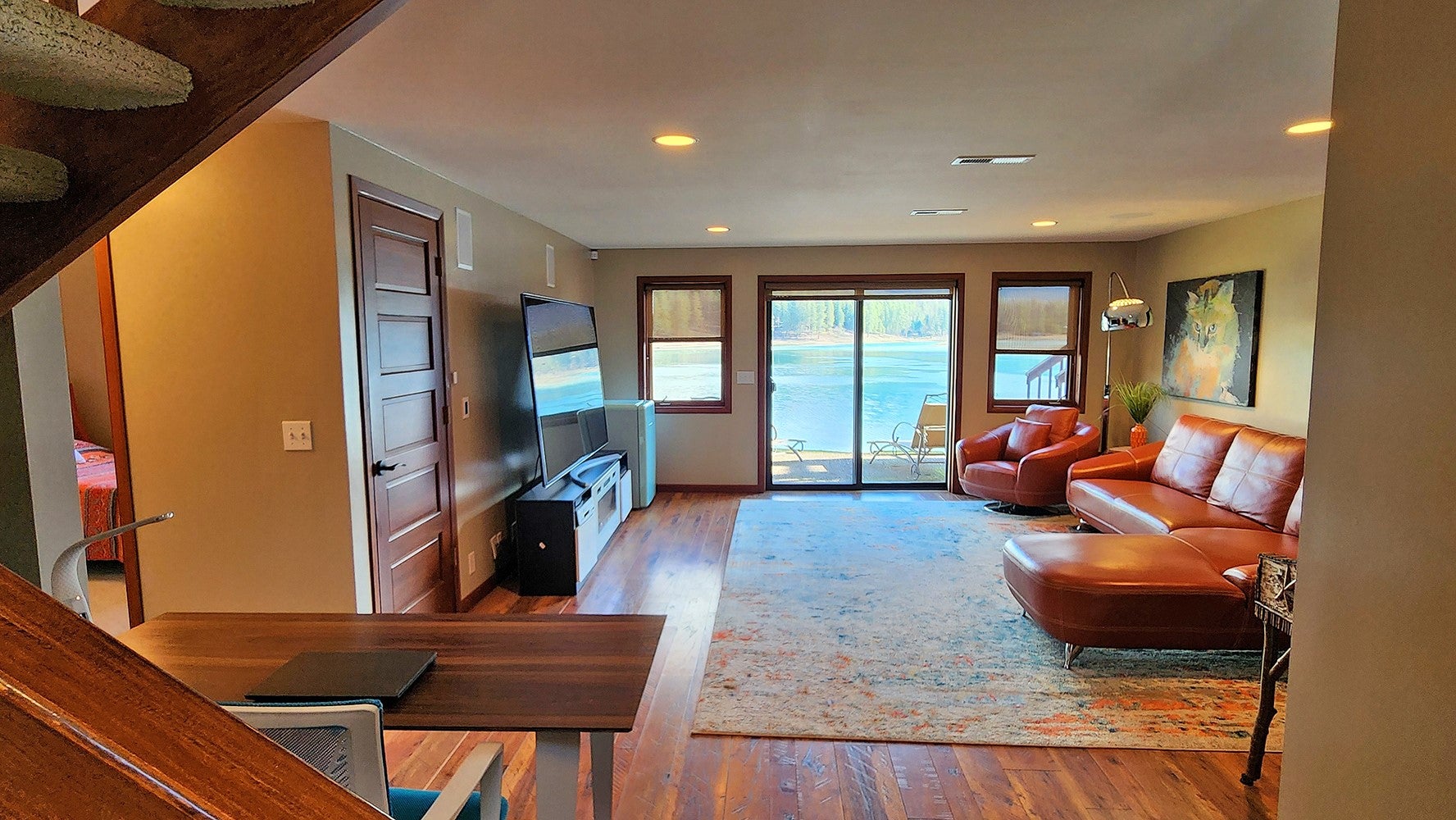 Lake of the Woods is an absolute hidden gem with just a handful of owners having property on this pristine, non-motorized lake (no public access). This home sits on the SW shore giving it outstanding, layered mountain views of the Swans over the lake. Take off on your SUP or kayak from the 240 ft frontage to paddle in this quiet setting. Enter this furnished home on the ground floor where theres an ample Family Room, two guest rooms, full bath, and lg utility/storage closet off the triple garage. Upstairs is the main living area with open concept Living Room, Dining and Kitchen (with attached pantry & laundry), all with large windows to take in the idyllic views. Off the kitchen is a heated, elevated porch you can use year-round. A main deck will be a central spot in the summer for grilling and relaxing while enjoying the amazing scenery. Finishing the upper level is the large primary en suite with walk-in closet (the size of a small bedroom!) 11 acres (see notes) This is a must see!