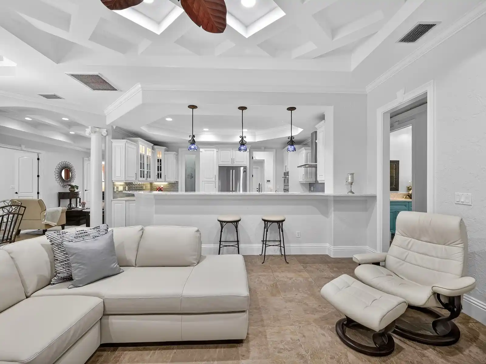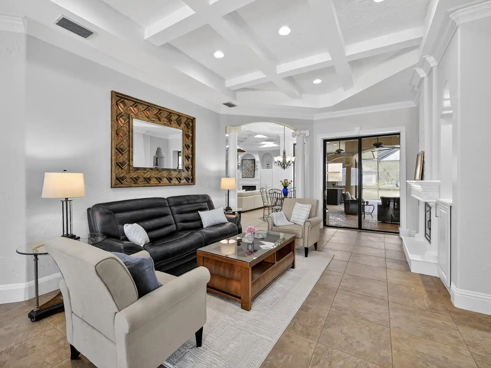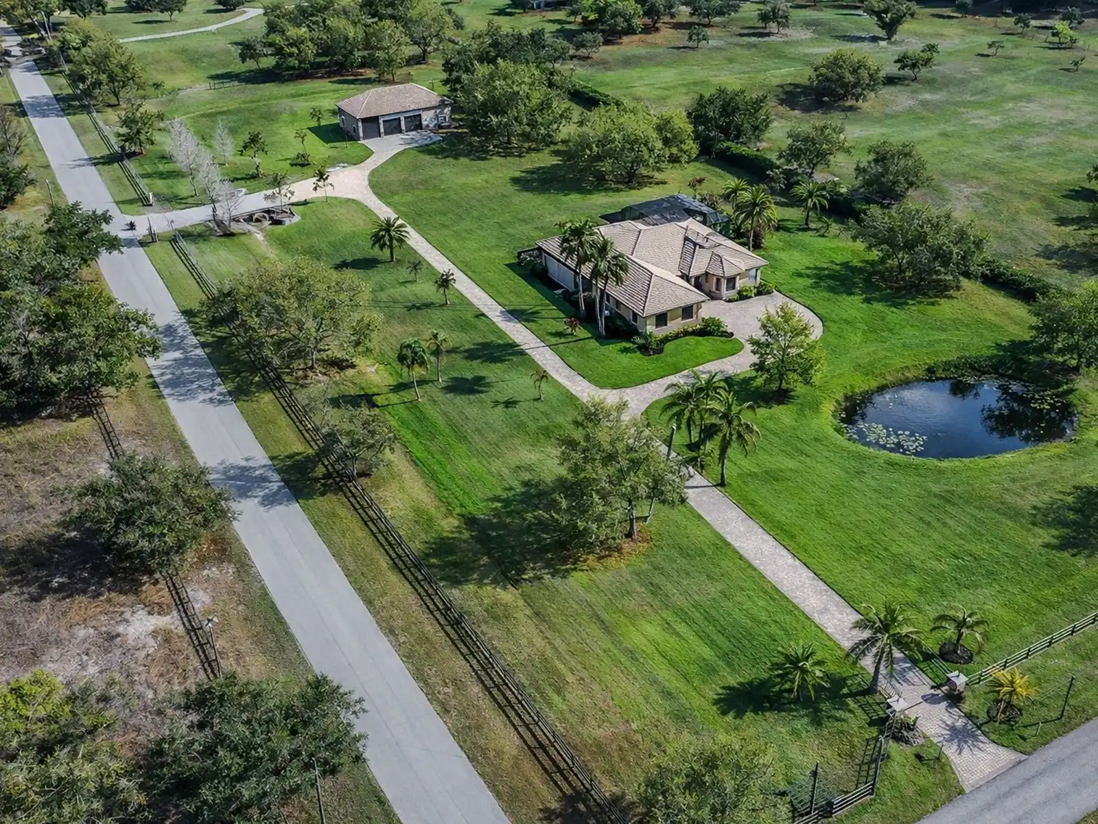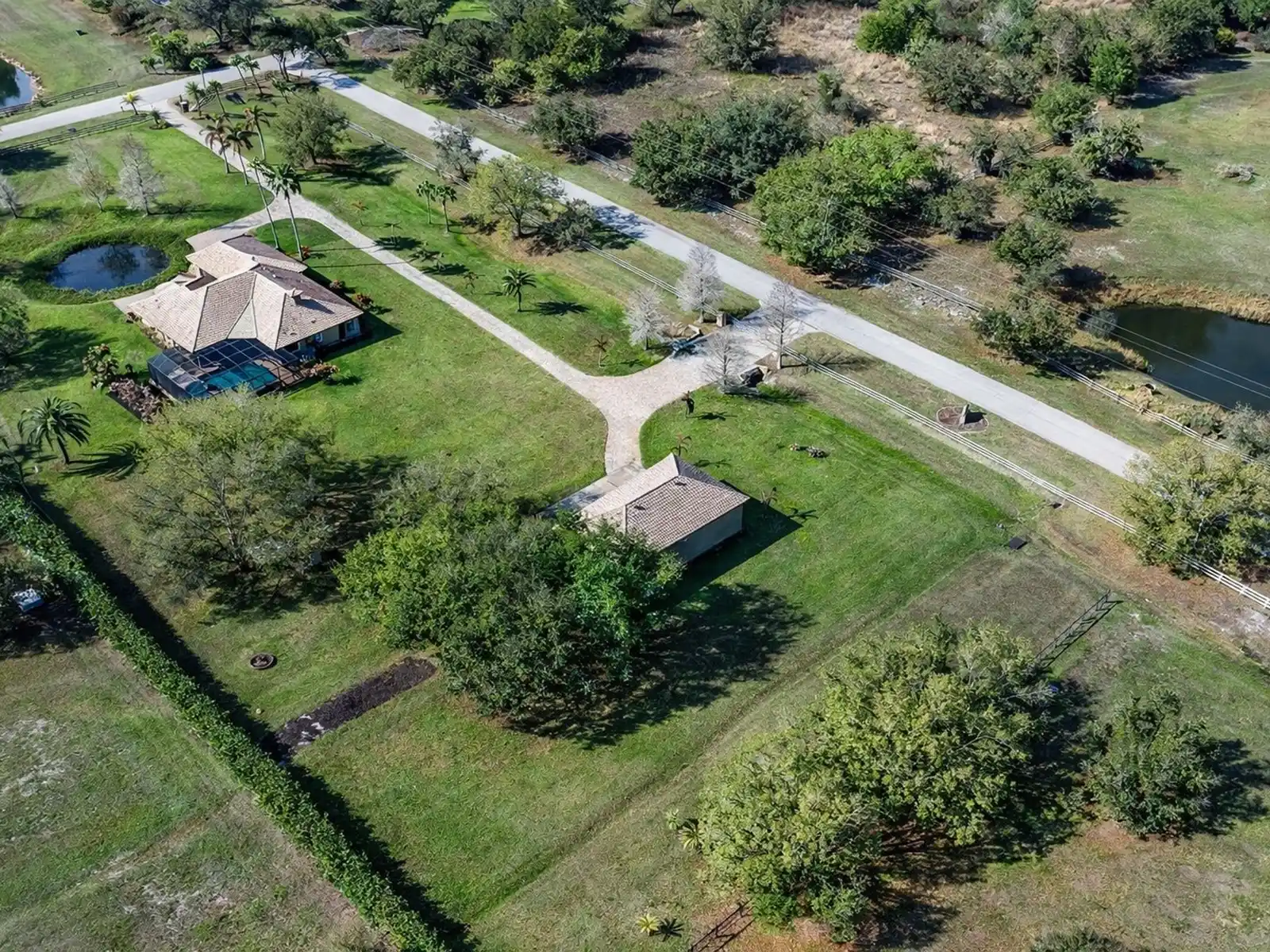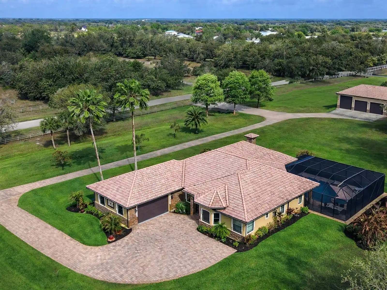 Welcome to an extraordinary, gated estate in Sarasota, FL, where nearly 5 private acres create the perfect backdrop for luxury living. This one-of-a-kind property boasts 3 gates for security & convenience. Behind board fencing, the estate ensures privacy, a long paver-brick drive, & curated landscaping. A serene pond enhances the beauty, making this an ideal retreat for those seeking space & premier amenities. A standout is the expansive detached bldg (approx. 2,100 sq. ft.), perfect for RVs, car collectors, or boaters. It offers parking for up to potentially 8 cars via tandem bays, an RV-height bay, & space for a boat or rec vehicles, accommodating up to a 34-ft boat or RV. There's a reinforced attic for storage, plus a beautifully finished guest studio apt. Ideal for multigenerational living or as an income-producing rental, this space features tile floors, crown molding, barn door, kitchenette w/ pantry, white cabinets, full bath, & independent climate control. The main residence presents a Mediterranean-style tile roof, welcoming porch w/ custom tile inset, arched dbl doors, & side-entry 2-car garage w/ resurfaced floor. Inside are 4 BRs, 3 baths, & a versatile den/study—providing flexible space for work or relaxation. Detailed ceilings, textured walls, designer/recessed lighting, ceramic tile, & wood floors add sophistication & warmth. A grand foyer w/ illuminated art niches, elegant columns, & a coffered ceiling welcomes you. Entertain in a formal dining/living area w/ stately columns, fireplace, & direct lanai access. The gourmet kitchen features white cabinets, subway-tile backsplash, lighted display cabs, premium appliances, breakfast bar, walk-in pantry, coffee bar, quartz counters, & butler’s pantry upgrade. Enjoy a breakfast nook w/ aquarium glass windows overlooking the pool, lanai, & acreage. Retreat to a warm family rm w/ coffered ceiling & fireplace or unwind in a luxurious primary suite w/ dbl doors, wood floors, triple sliders to the pool, dual walk-in closets, & spa-like bath. One add'l BR has walk-in closet, all have crown molding, & access to a beautiful guest bath w/ quartz. The separate studio apt provides a 4th bath, affording privacy & convenience for guests or extended stays. Functional spaces include laundry/craft rm (safe rm). Experience the FL lifestyle w/ an expansive covered lanai featuring a summer kitchen, granite bar, & a heated saltwater pool & spa w/ Pebble Tec finish and a new micro-mesh pool cage—ideal for entertaining or relaxing in total privacy. This outdoor oasis also grants convenient access to a pool bath w/ quartz. Deer Hammock luxury estate offers an exceptional blend of space, elegance, & security, conveniently located just east of I-75 in Sarasota County near local amenities. For added peace of mind, the estate has impact windows, hurricane shutters, a whole-house generator & 30 days propane storage, ensuring continuous comfort regardless of weather or outages. Picture cozy evenings by the fire pit under a starlit sky, w/ the excitement of bringing your horses to explore this beautiful setting. It's the perfect canvas for a dream equestrian estate! This home provides an impressive range of amenities that can't all be detailed here, making it ideal for those seeking a spacious country getaway and representing a remarkable opportunity, enhanced by deed restrictions that ensure the neighborhood’s visual appeal & protect property values.