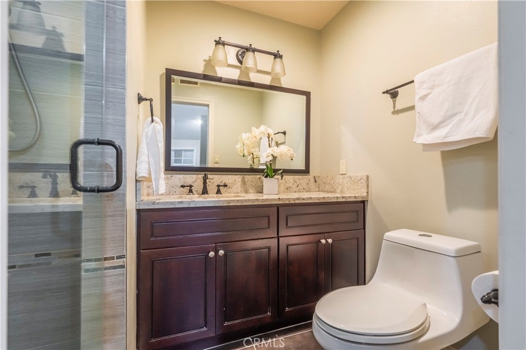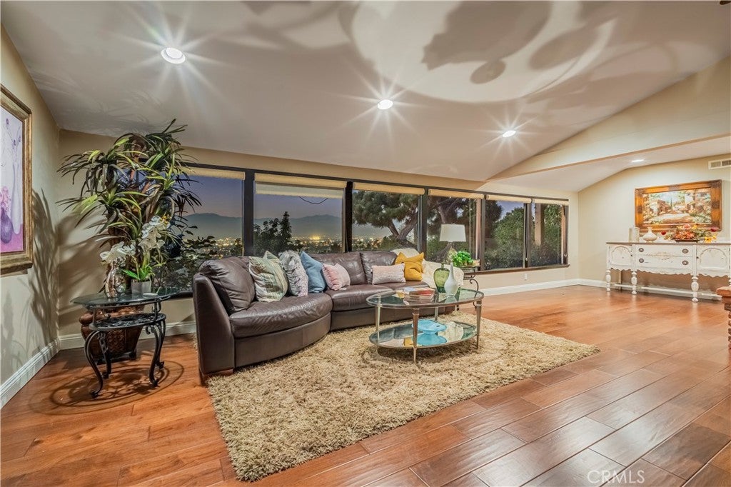 VIEW VIEW VIEW!! This private gated home offers ONE OF THE BEST VIEWS in the neighborhood. It has 180 Degrees of Panoramic city light & mountains view that extends beyond the Los Angeles skyline. It features 4BR/ 3BA (master suite in downstairs) plus huge bonus room and large wet bar. Very bright and open living room w/ fireplace. Fully remodeled kitchen and all the bathrooms.