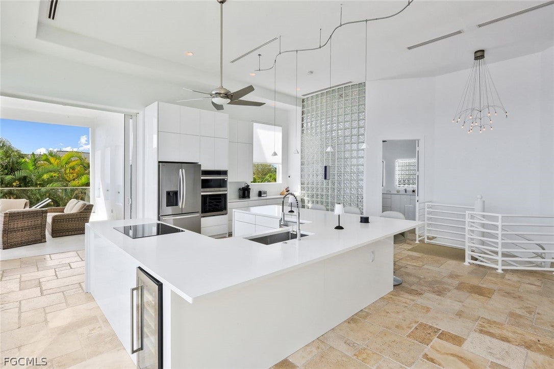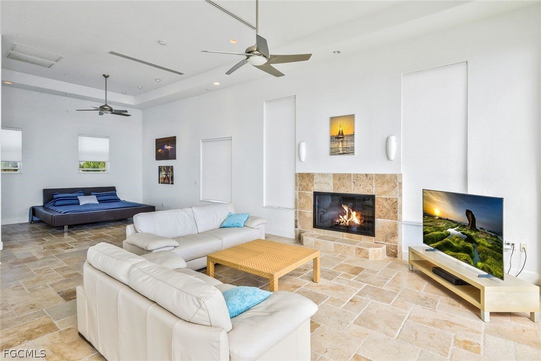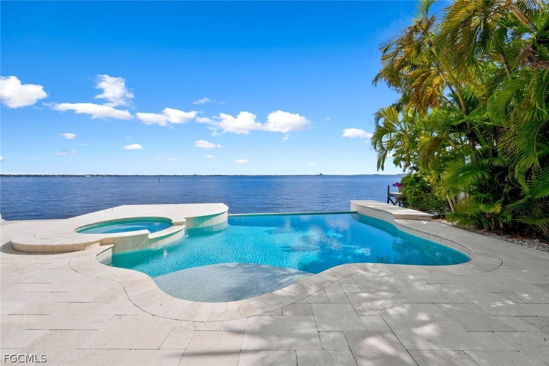 Enjoy to live directly on the River without fearing any hurricanes in this 2-story mansion. The owner put a lot of money and love in this house renovating and updating it to the highest standards with the finest and exclusive materials in 2025 new impact windows and impact sliding doors, new beautiful Italian travertine on the expansive covered lanai, new kitchen and new master bath in second floor, 2 new ACs, all outside walls new plastered and painted, all inside walls got also new paint. New surface/paint on the large concrete dock area. New roof above second floor (2023), new pool heater (2022), new metal roof above first floor (2020), pool and spa resurfaced (2020).Imagine to wake up in your master suite with outstanding views to the River or relax on the large balcony with gorgeous water views. Prepare your meals in the gourmet kitchen and watch the BIG Waters in front of you.This 4 bedrooms, 3 baths, 2 car garage home is one of the most spectacular and unique waterfront homes in Cape Coral with direct Gulf Access, located in the desirable Gold Coast Estates on an oversized lot. A spiral stair is leading to the super spacious second floor with amazingly high ceilings. The chefs kitchen opens to the living area with stunning views to the Caloosahatchee River.The home was never flooded during hurricane Ian (high elevation).Heated pool with vanishing edge and jacuzzi/spa.Fire place in second floor and awesome southern water views are offered by an extraordinary 10 by 35 long window front.This slick and modern building comes TURNKEY, nicely and tastefully furnished, all assessments (city water, sewer, irrigation) are in and paid in full.There are many more items we should mention, but you have to explore this beautiful mansion by yourself.Dont miss out this incredible opportunity to live directly on the water and schedule your private showing asap.