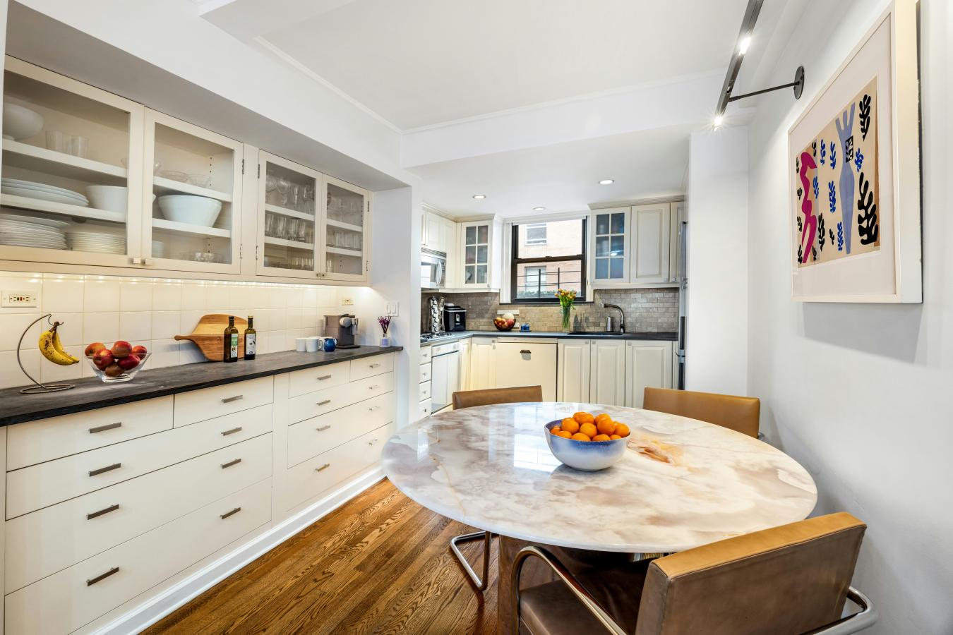 Finally, an apartment that checks all the boxes. Beautiful pre-war classic six on a high floor with TWO fireplaces, a washer/dryer, and even a terrace! The meticulously maintained south-facing home has a large eat-in kitchen, beautiful crown moldings, restored hardwood floors, new through-wall A/Cs, and two en-suite baths, plus a new powder room. Two generously sized bedrooms easily accommodate king beds. One features a south-facing terrace exposure, while the primary has a wood-burning fireplace, multiple closets, and a private office with a washer and dryer. Located in the historic Bing and Bing buildings, 73rd Street is a quiet, tree-lined block coveted for its community feel and holiday lights. Close to the Second Avenue subway, 220 East 73rd offers a 24-hour doorman, concierge service, a fitness room, individual storage (for a fee), a common garden, laundry, pets, and pieds--terre allowed.
