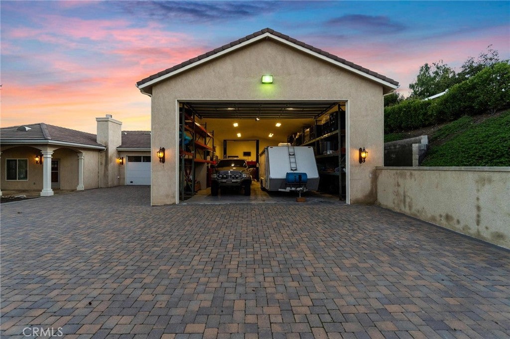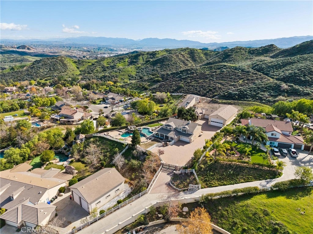 You could search for years before finding a property like this - a gated home on almost an acre with a 3,000 square foot workshop AND permitted Guest House! Perched high above the Hasley Hills with spectacular views and privacy sits a home truly like no other. With so much land to work with, the owner created a gated compound with features rarely found anywhere. An 800 sqft single story guest house with kitchen, living room and high ceilings. Completely detached from the main house. Next to the guest house is a double workshop/garage (75 by 35 and 35 by 30) with 16 foot tall doors and capable of housing virtually any RV, boat, or classic car collection. There is literally room for up to 14 cars and its built right with R30 insulation, plenty of lighting, 220 electrical and easy access in and out. Truly well done! As soon as you pass through the gates onto the massive stone driveway that leads from the front all the way to the back of the property where the workshop is, you know this property is special. The guest house has 10 foot ceilings, 3 foot wide doors, kitchen, fireplace and walk-in closet with good storage throughout. Perfect for parents or guests, as there are no stairs and access is seamless. The huge pebble tech pool and sunken BBQ cook station with Viking appliances means parties for 200 arent a problem and the firepit and fireplace offer separate conversation areas, all with amazing views as the home sits high above the downslope neighbors. The main house is plenty big with an expanded family room in lieu of the 3-car tandem garage (you dont need it with the massive workshop!) full bedroom with private bath downstairs, 4 more bedrooms up and another 3 full baths. 4.5 baths in the main house and a full bath in the guest house so lots of living flexibility. No Mello Roos or high HOA fees in this well maintained, planned community. An amazing setting with views forever and incredible property to go with it. What a home!!