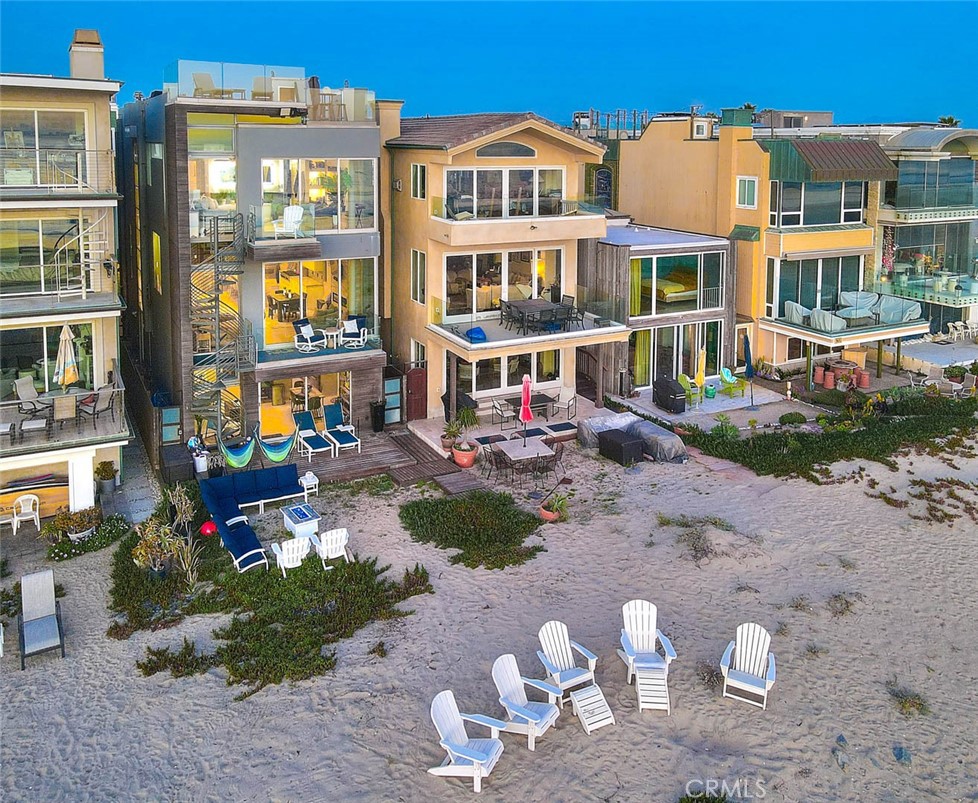Imagine stepping directly from your home onto a pristine, sun-kissed beach—this is beachfront living at its finest. Located in the coveted Surfside community, this multi-level oceanfront estate offers 3,306 square feet of thoughtfully upgraded living space, blending refined design with the comfort of a private coastal retreat. The home is offered fully furnished, with all furniture included in the sale for a seamless turnkey experience. The second-level main living area showcases an open floor plan with sweeping panoramic ocean views, a beautifully crafted fireplace, and direct access to a balcony ideal for morning coffee or sunset relaxation. An adjoining great room/media space features full surround sound, creating the perfect setting for entertaining or intimate gatherings. The chef's kitchen is both elegant and functional, equipped with Viking appliances, a large stone-topped island, custom cabinetry, and a wine refrigerator—ideal for hosting beachfront dinners.The third-floor primary suite is a true sanctuary, featuring a private ocean-view balcony, a spa-inspired bath with a jetted tub overlooking the water, a walk-in shower, an imported Murano chandelier, upgraded plumbing, custom mirrors, and enhanced electrical. The first level functions as a private guest retreat with its own kitchen, bedroom, and direct beach access—well-suited for guests or extended stays. Additional bathrooms throughout the home have been upgraded with premium finishes. Outdoor living is exceptional, featuring a private beach deck, outdoor shower, and an expansive rooftop deck designed for relaxation and entertaining. Enjoy a hot tub, upgraded barbecue (2025), newly furnished seating, ambient lighting, curated sunset views, and glass balustrades for unobstructed ocean panoramas. Recent improvements include new air conditioning units, which are also treated with rust inhibitor paint (2024), furnace replaced (2025), a whole-house water filtration system with a warranty, upgraded primary bath electrical, a new breaker box, a re-sealed and waterproofed roof with improved drainage, a treated spiral staircase, a hidden bookshelf feature in foyer, and a two-car garage with an upgraded EV charger. Additional highlights include designer rooftop furnishings, spa installed in 2024, and new beach lighting (2025). This exceptional Surfside estate offers timeless luxury, direct oceanfront access, and an unparalleled coastal lifestyle.