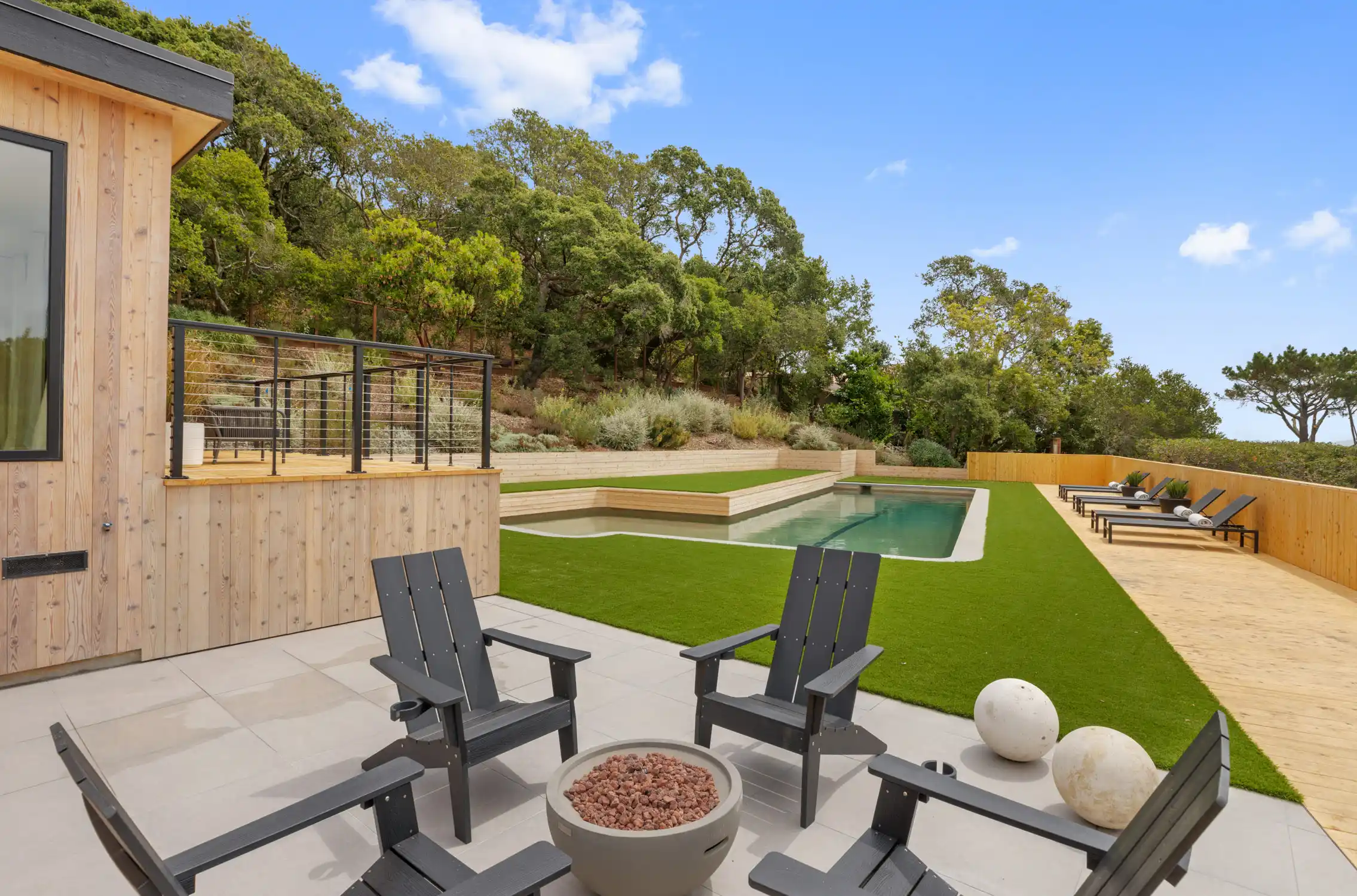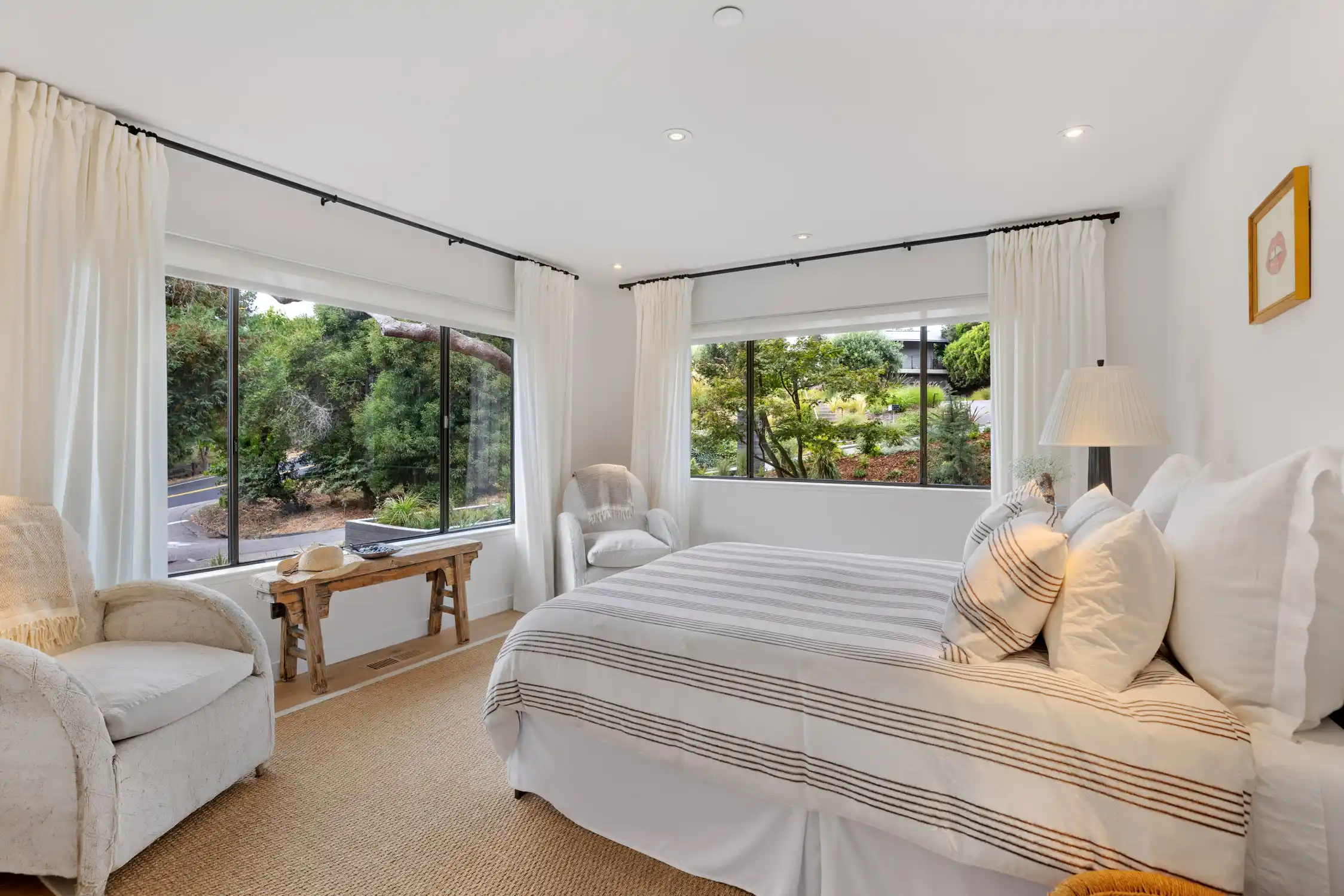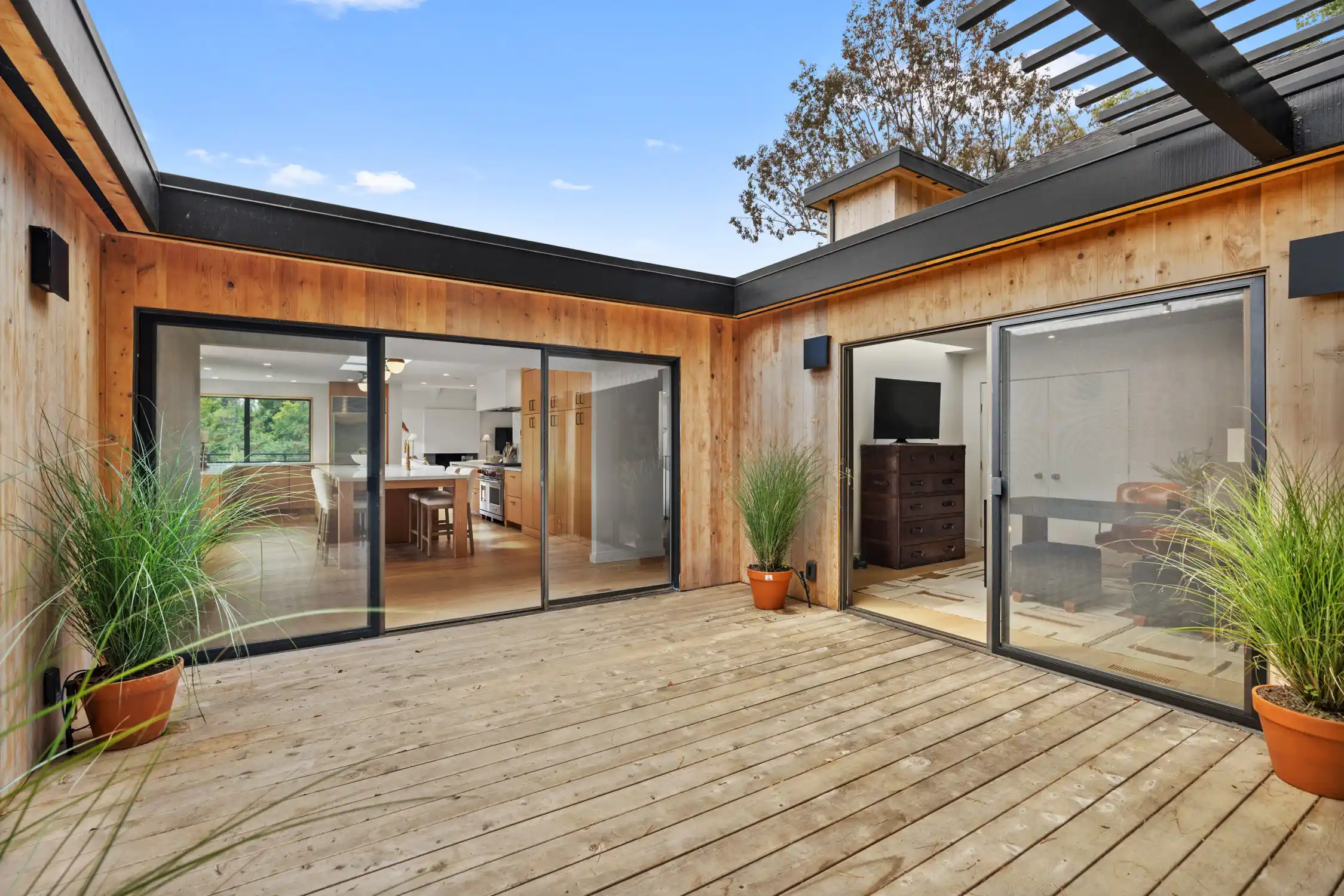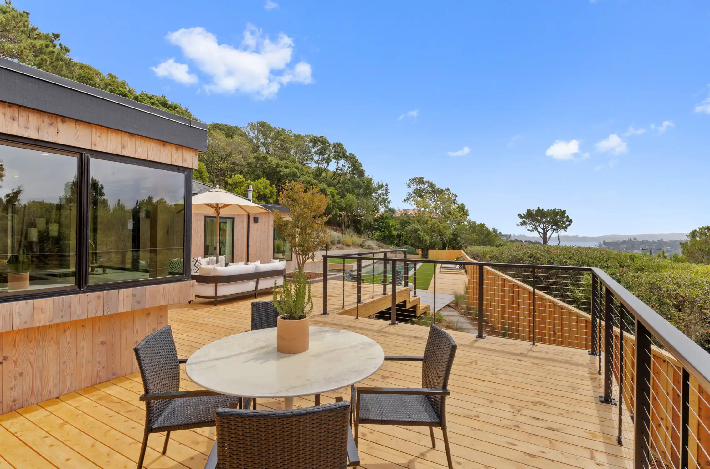 Enriched by a seamless blend of contemporary style and rustic flair, this exceptional renovation epitomizes the pinnacle of luxury living, where breathtaking architectural design and superior finishes merge effortlessly to elevate it to a league of its own.Significantly renovated and completed in 2024, this impressive residence exemplifies meticulous attention to detail and the highest level of craftsmanship, boasting state-of-the-art finishes and an elevated design aesthetic.This extraordinary home is an entertainer's dream, offering unrivaled amenities and seamlessly connected indoor/outdoor living spaces that elevate your lifestyle to unparalleled levels of luxury and relaxation. The expansive private grounds evoke a resort-like ambiance, featuring a stunning pool, a pool deck perfect for lounging and soaking up the sun, a sprawling turf lawn, an expansive entertainment deck, manicured landscaping, patios, and picturesque views of the San Francisco skyline, the Bay, and Belvedere Island.The main level of the residence unfolds with a series of open and light-filled rooms, creating an ideal setting for both everyday living and grand-scale entertaining.The expansive great room showcases the remarkable architectural elements and high-quality craftsmanship found throughout the residence, featuring a soaring open-beam ceiling with a central skylight, a gas-start fireplace, and large windows framing breathtaking views.One of the most breathtaking kitchens on the Tiburon Peninsula, this culinary haven elevates the art of entertaining with its sleek aesthetic, defined by clean lines, custom wood cabinetry with brass hardware, and an impeccable design that seamlessly integrates indoor and outdoor living spaces, harmonizing effortlessly with the natural landscape of this private residence.The state-of-the-art chef's kitchen features quartz countertops, an expansive center island with counter seating, skylights, two sinks, extensive cabinetry offering ample storage, windows that frame stunning views of the city skyline, and high-end stainless steel appliances, including a Sub-Zero refrigerator and wine fridge, two Thermador dishwashers, a wall-mounted pot filler, a Zephyr range hood, and a Wolf 6-burner gas range with griddle, oven, and convection oven.An inviting breakfast area opens directly to the entertainment deck, perfect for indoor-outdoor dining.The magazine-worthy primary suite is a luxurious sanctuary of unparalleled comfort, boasting a gas-start fireplace, oversized windows, a walk-in closet with a custom wardrobe system, an additional closet with an LG washer/dryer and steam closet, and sliding glass doors that open to a deck with views of the beautiful grounds, the Golden Gate Bridge towers, and Belvedere Island.Indulge in a spa-like retreat within the lavish primary bathroom, featuring stone floors, dual vanities with quartz countertops and wood cabinetry, and timeless Waterworks fixtures. The partially enclosed shower and soaking tub wet room is a true centerpiece, with glass walls framing a Badeloft tub and an expansive rain shower. The shower is equipped with a built-in bench, highlighted by a recessed niche with soft lighting, while skylights above fill the space with natural light, beautifully illuminating the room's elegant stone walls.Three comfortable bedrooms, a full bathroom, and a chic powder room complete the main level of the residence.Tucked away on the third floor, an incredible ADU boasts its own exterior entrance, vaulted ceilings, hardwood floors, and a stylish full bathroom with a stall shower. The well-appointed kitchenette features a sink, U-line mini fridge, two-burner electric cooktop, built-in cabinetry, and floating shelves.The fifth bedroom, or ideal guest suite, is located on the entry-level and features a walk-in closet, an en-suite bathroom with a stall shower, and sliding glass doors that open to a private patio.A wine cellar and laundry are located on the entry-level.Two car attached garage with Tesla charger.