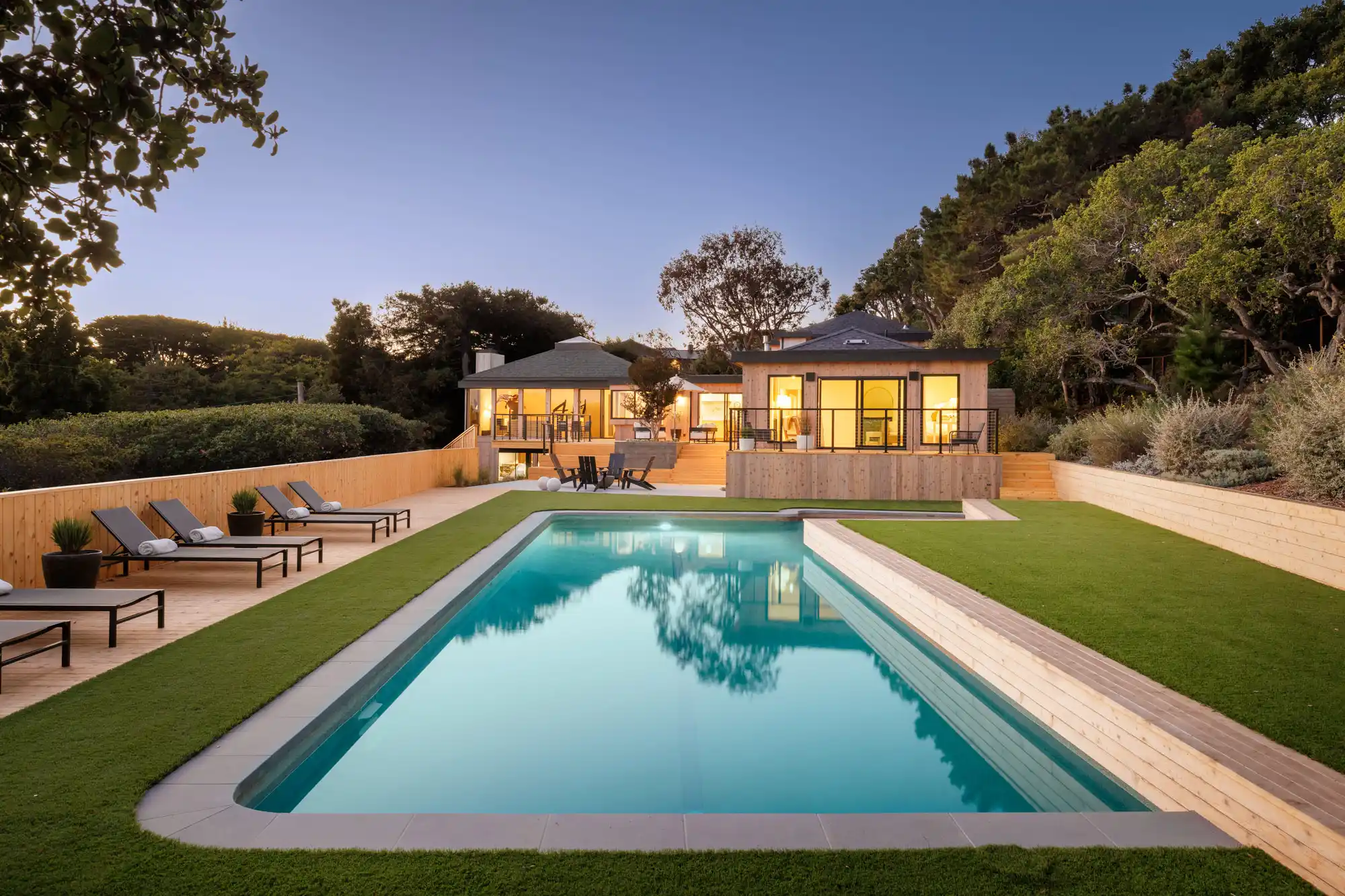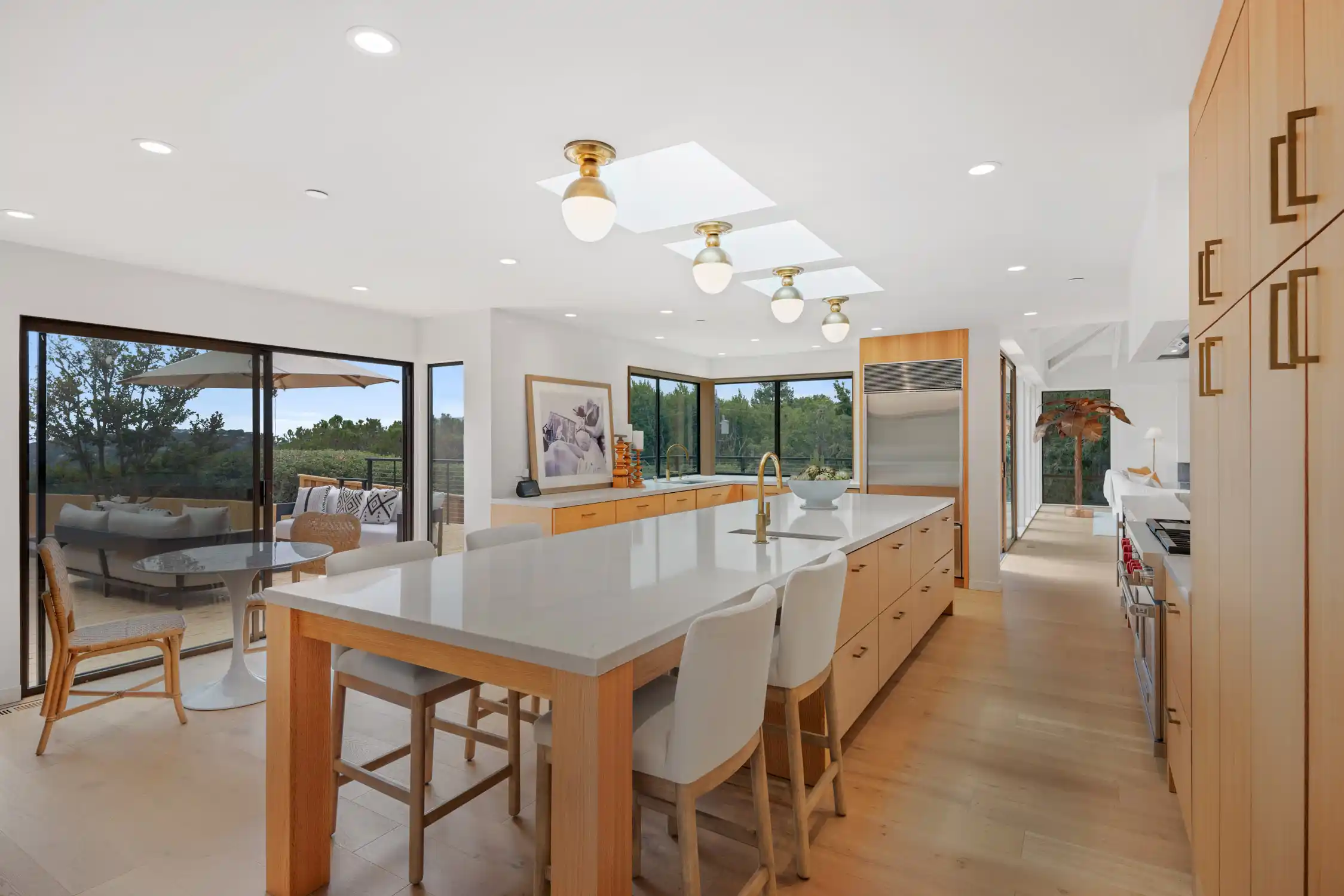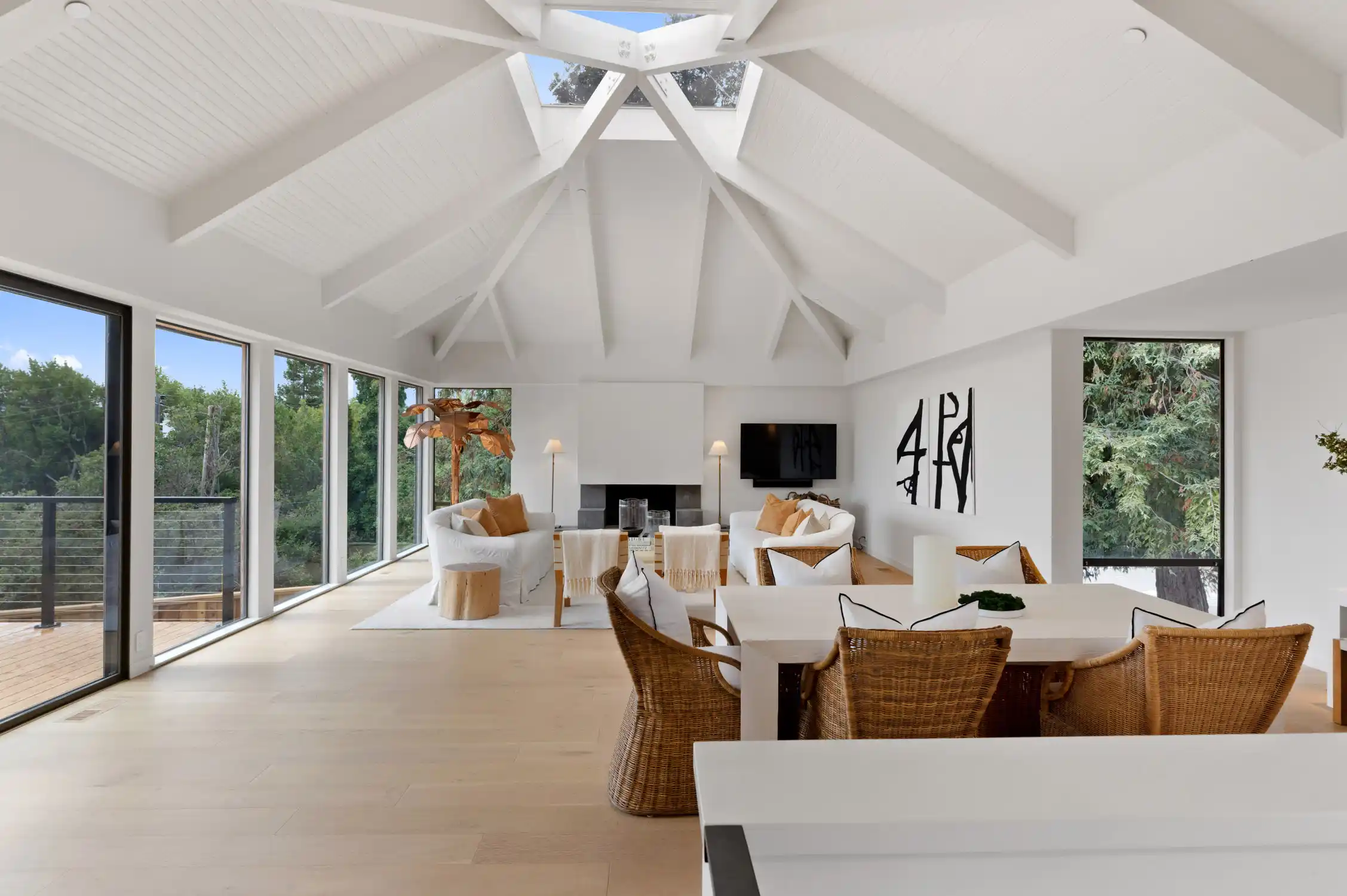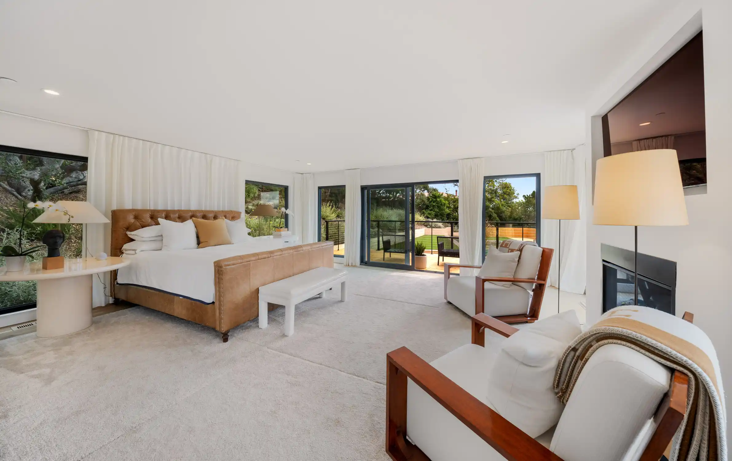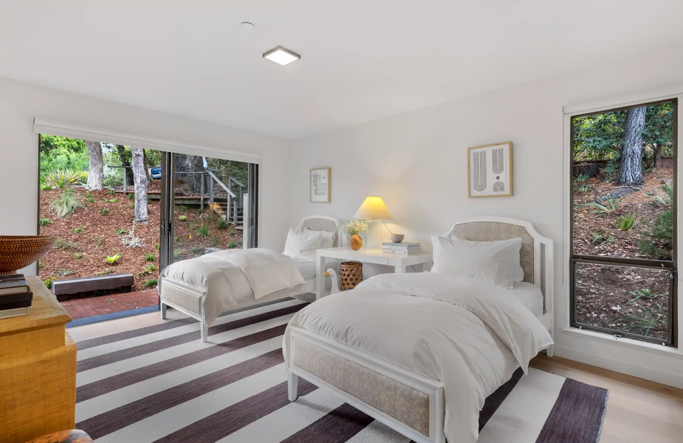 Enriched by a seamless blend of contemporary style and rustic flair, this exceptional renovation epitomizes the pinnacle of luxury living, where breathtaking architectural design and superior finishes merge effortlessly to elevate it to a league of its own.Significantly renovated and completed in 2024, this impressive residence exemplifies meticulous attention to detail and the highest level of craftsmanship, boasting state-of-the-art finishes and an elevated design aesthetic.This extraordinary home is an entertainer's dream, offering unrivaled amenities and seamlessly connected indoor/outdoor living spaces that elevate your lifestyle to unparalleled levels of luxury and relaxation. The expansive private grounds evoke a resort-like ambiance, featuring a stunning pool, a pool deck perfect for lounging and soaking up the sun, a sprawling turf lawn, an expansive entertainment deck, manicured landscaping, patios, and picturesque views of the San Francisco skyline, the Bay, and Belvedere Island.The main level of the residence unfolds with a series of open and light-filled rooms, creating an ideal setting for both everyday living and grand-scale entertaining.The expansive great room showcases the remarkable architectural elements and high-quality craftsmanship found throughout the residence, featuring a soaring open-beam ceiling with a central skylight, a gas-start fireplace, and large windows framing breathtaking views.One of the most breathtaking kitchens on the Tiburon Peninsula, this culinary haven elevates the art of entertaining with its sleek aesthetic, defined by clean lines, custom wood cabinetry with brass hardware, and an impeccable design that seamlessly integrates indoor and outdoor living spaces, harmonizing effortlessly with the natural landscape of this private residence.The state-of-the-art chef's kitchen features quartz countertops, an expansive center island with counter seating, skylights, two sinks, extensive cabinetry offering ample storage, windows that frame stunning views of the city skyline, and high-end stainless steel appliances, including a Sub-Zero refrigerator and wine fridge, two Thermador dishwashers, a wall-mounted pot filler, a Zephyr range hood, and a Wolf 6-burner gas range with griddle, oven, and convection oven.An inviting breakfast area opens directly to the entertainment deck, perfect for indoor-outdoor dining.The magazine-worthy primary suite is a luxurious sanctuary of unparalleled comfort, boasting a gas-start fireplace, oversized windows, a walk-in closet with a custom wardrobe system, an additional closet with an LG washer/dryer and steam closet, and sliding glass doors that open to a deck with views of the beautiful grounds, the Golden Gate Bridge towers, and Belvedere Island.Indulge in a spa-like retreat within the lavish primary bathroom, featuring stone floors, dual vanities with quartz countertops and wood cabinetry, and timeless Waterworks fixtures. The partially enclosed shower and soaking tub wet room is a true centerpiece, with glass walls framing a Badeloft tub and an expansive rain shower. The shower is equipped with a built-in bench, highlighted by a recessed niche with soft lighting, while skylights above fill the space with natural light, beautifully illuminating the room's elegant stone walls.Three comfortable bedrooms, a full bathroom, and a chic powder room complete the main level of the residence.Tucked away on the third floor, an incredible ADU boasts its own exterior entrance, vaulted ceilings, hardwood floors, and a stylish full bathroom with a stall shower. The well-appointed kitchenette features a sink, U-line mini fridge, two-burner electric cooktop, built-in cabinetry, and floating shelves.The fifth bedroom, or ideal guest suite, is located on the entry-level and features a walk-in closet, an en-suite bathroom with a stall shower, and sliding glass doors that open to a private patio.A wine cellar and laundry are located on the entry-level.Two car attached garage with Tesla charger.